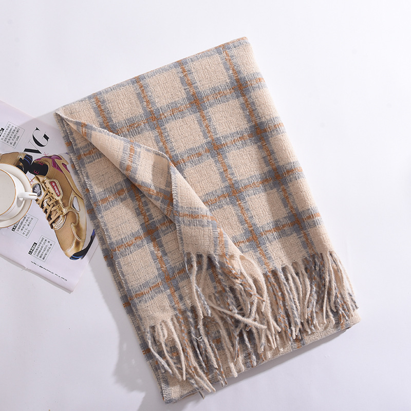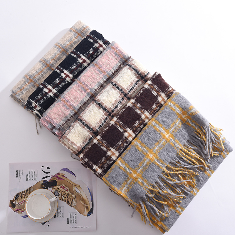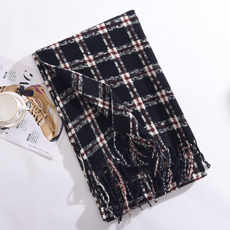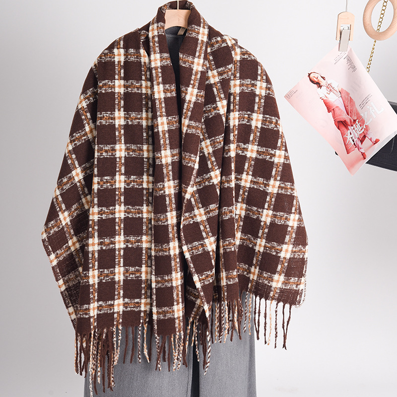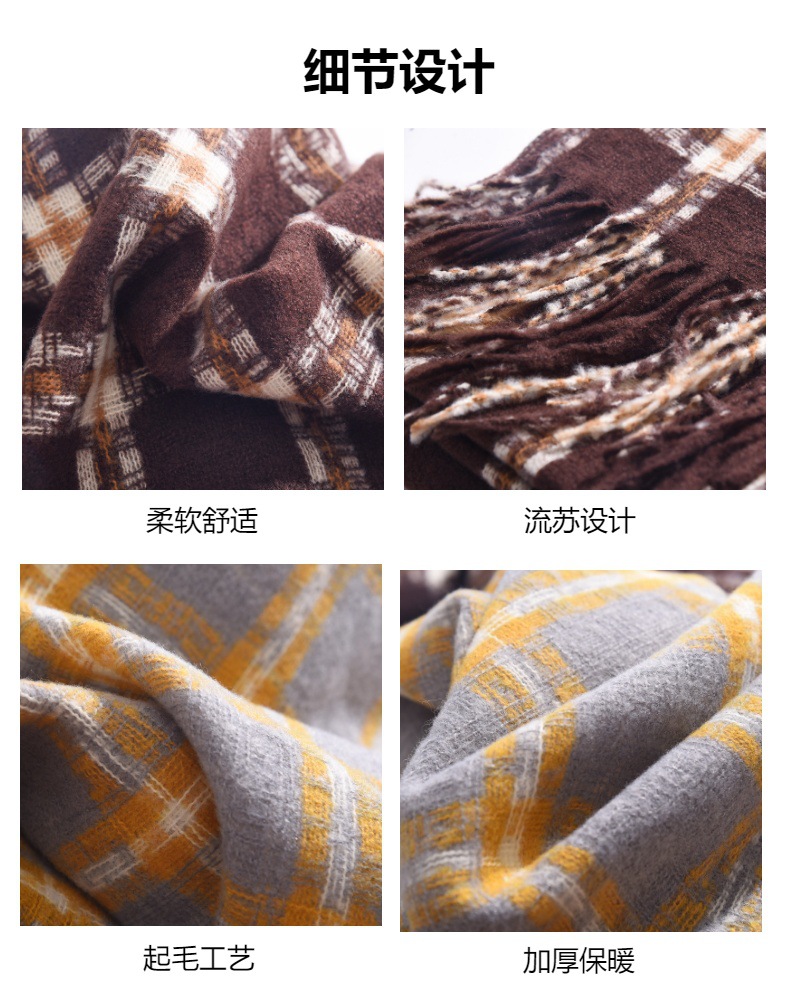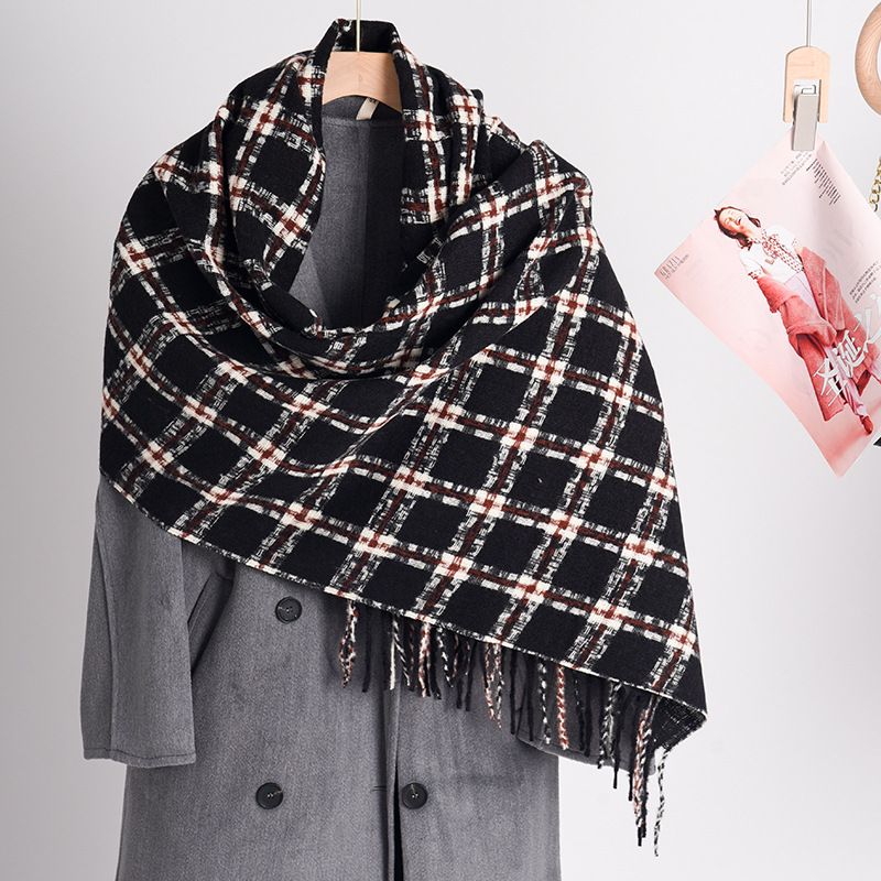 2023冬季新款千鸟格围巾女高级感百搭加厚保暖披肩围脖围巾 格子