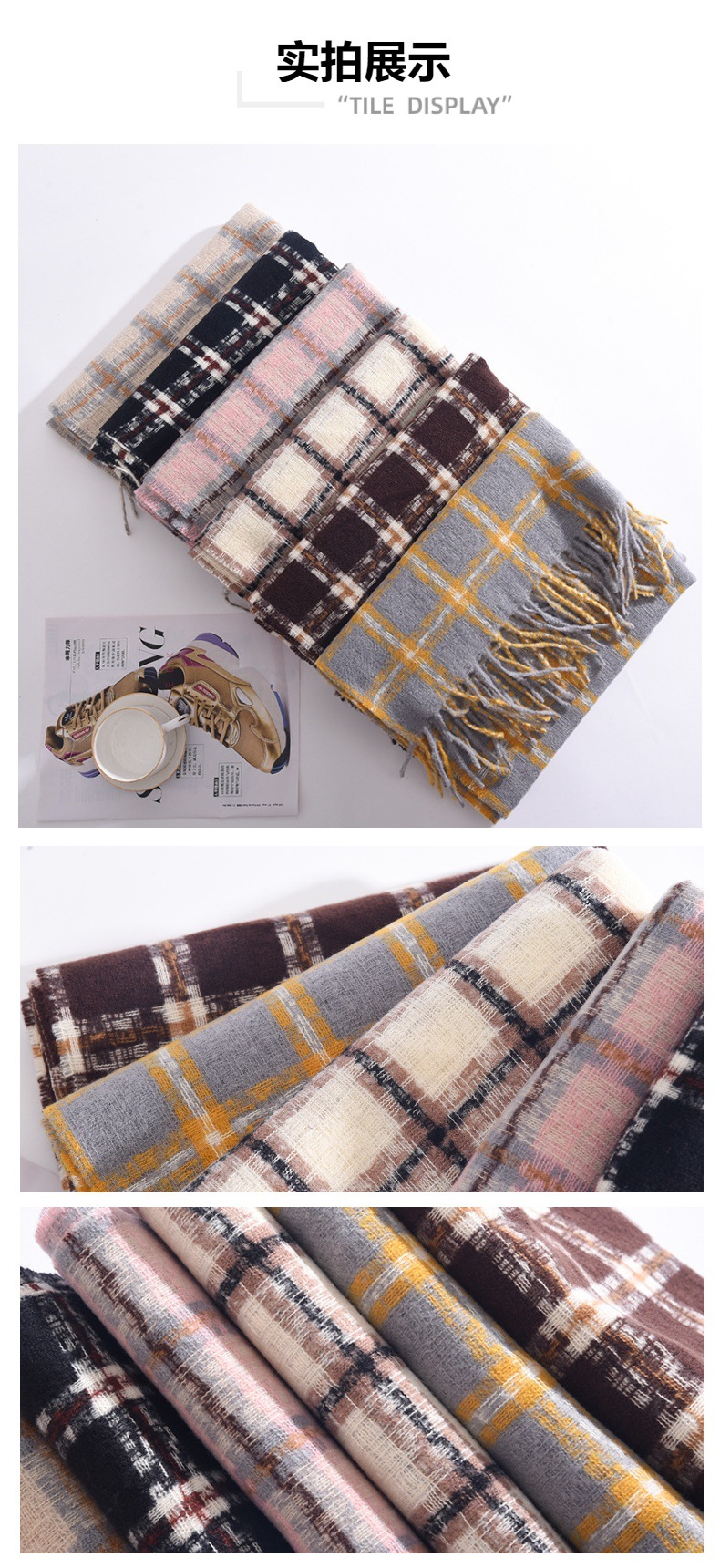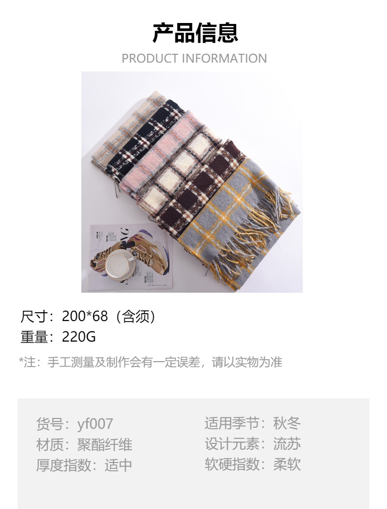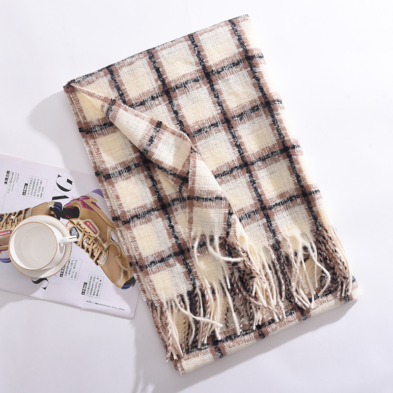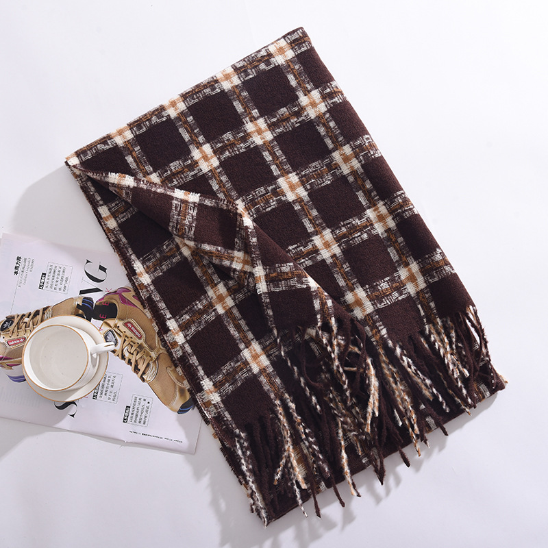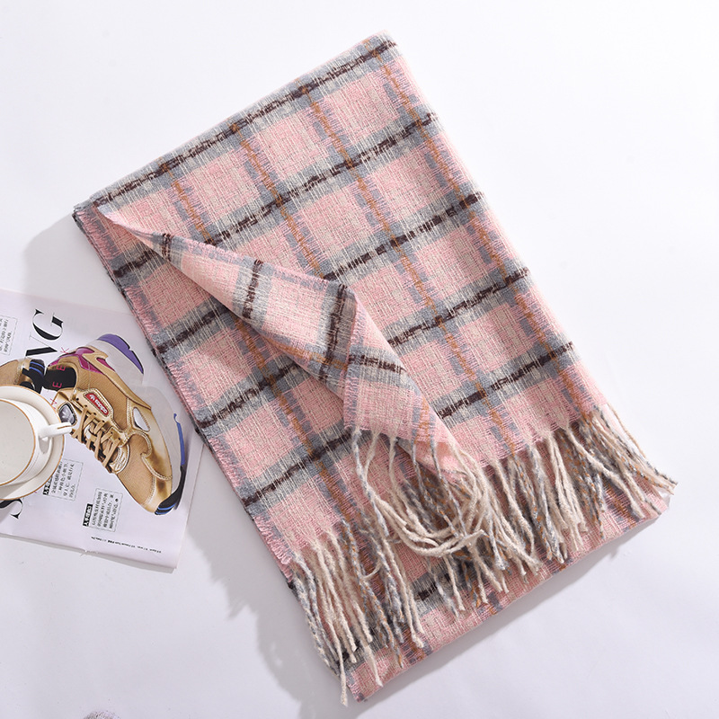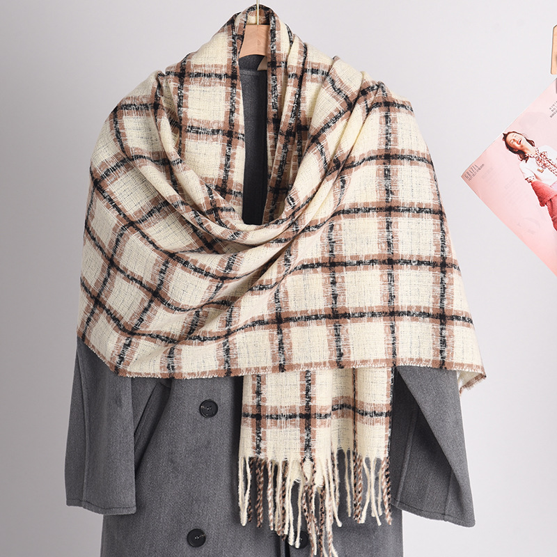 2023冬季新款千鸟格围巾女高级感百搭加厚保暖披肩围脖围巾 格子