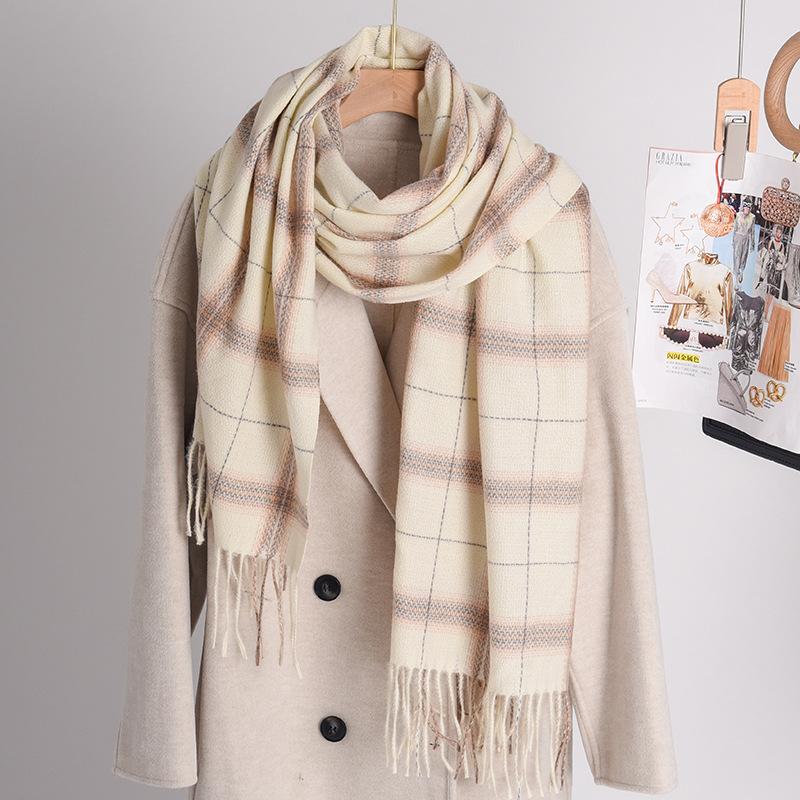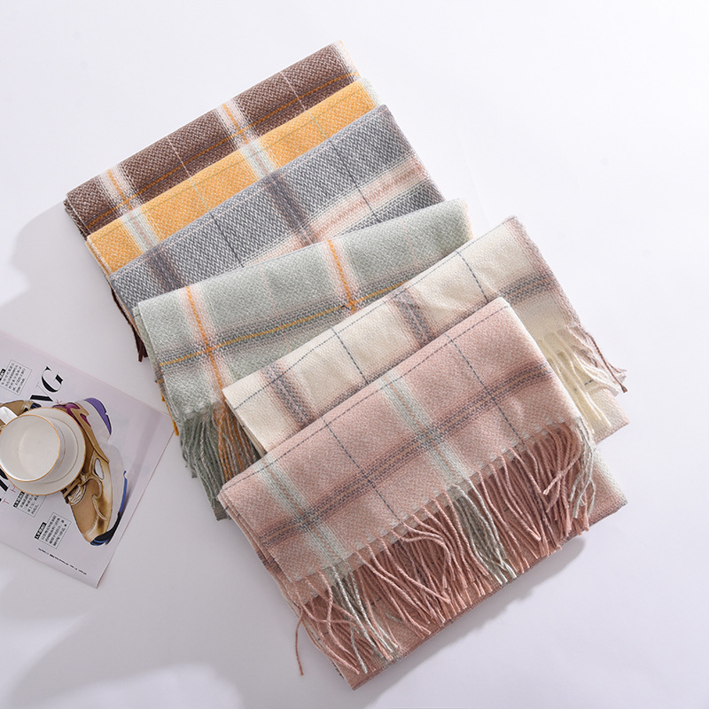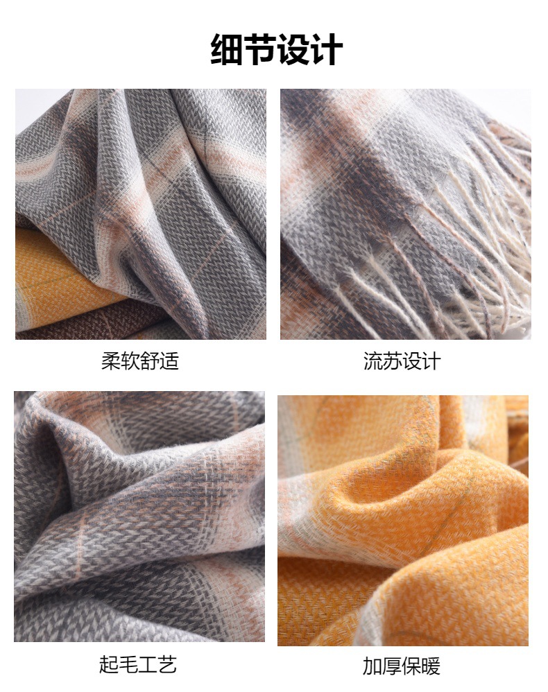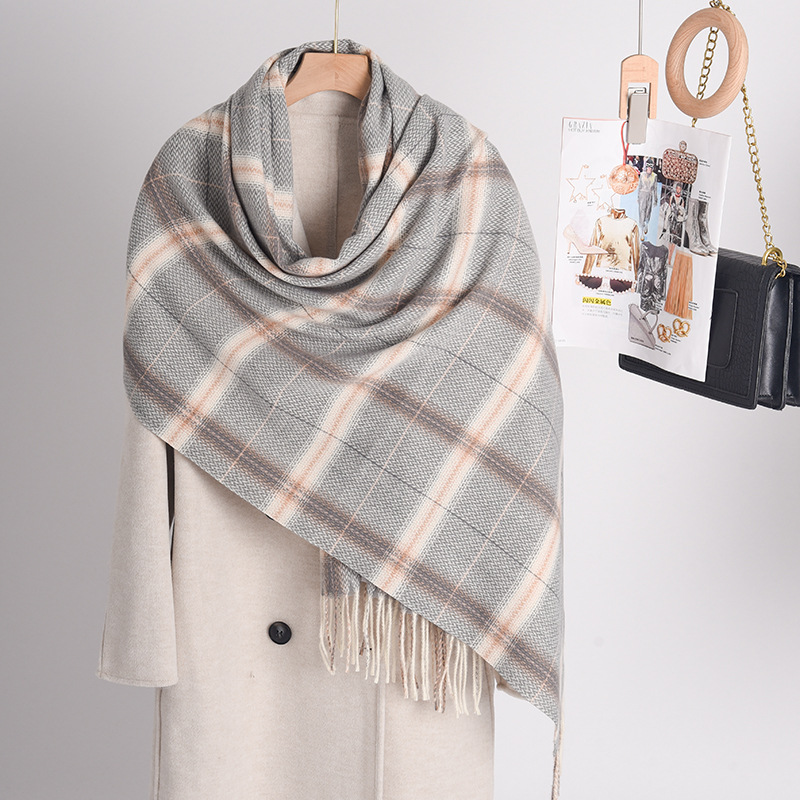 新款仿羊绒围巾女高级感围脖披肩冬季围巾 格子时尚保暖秋冬围巾