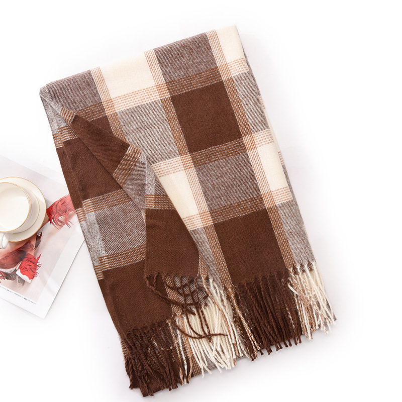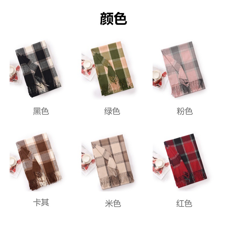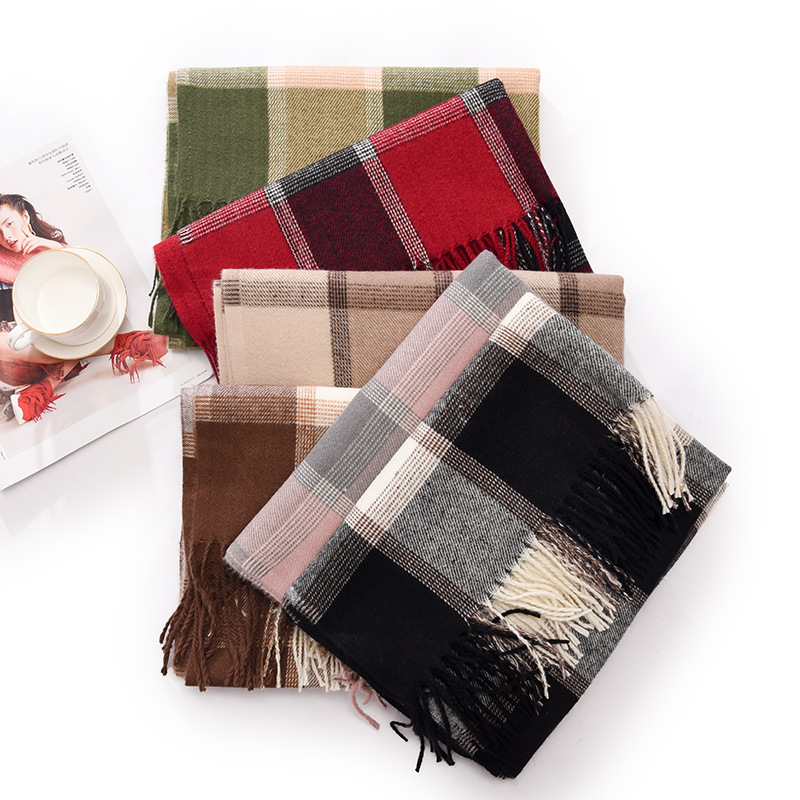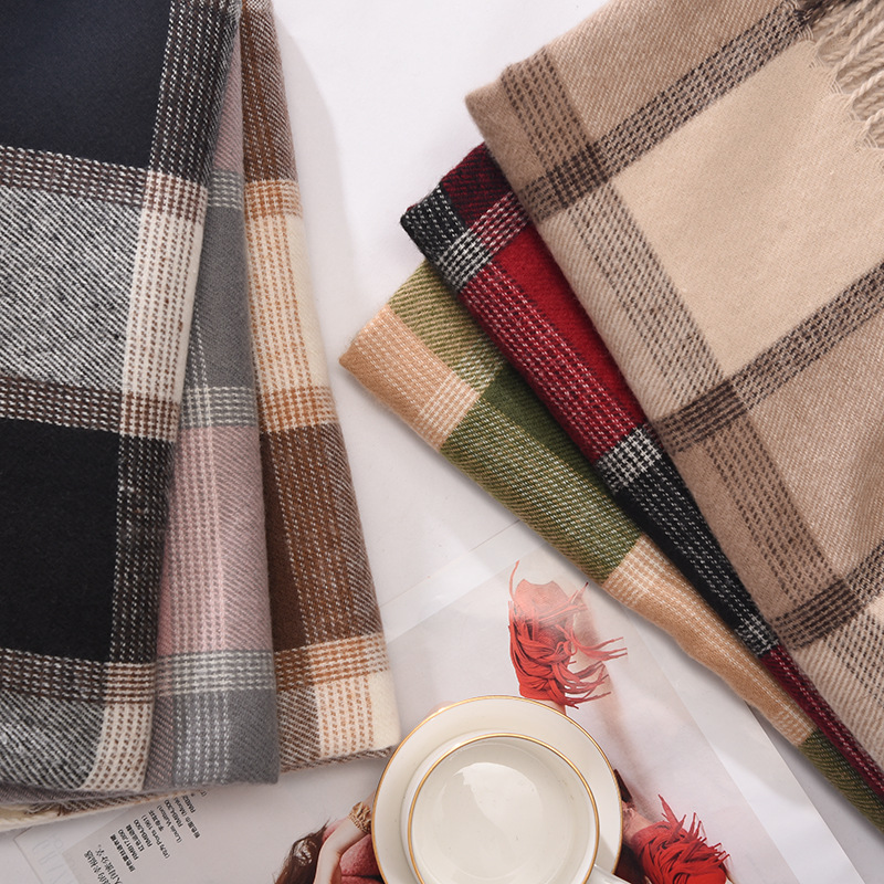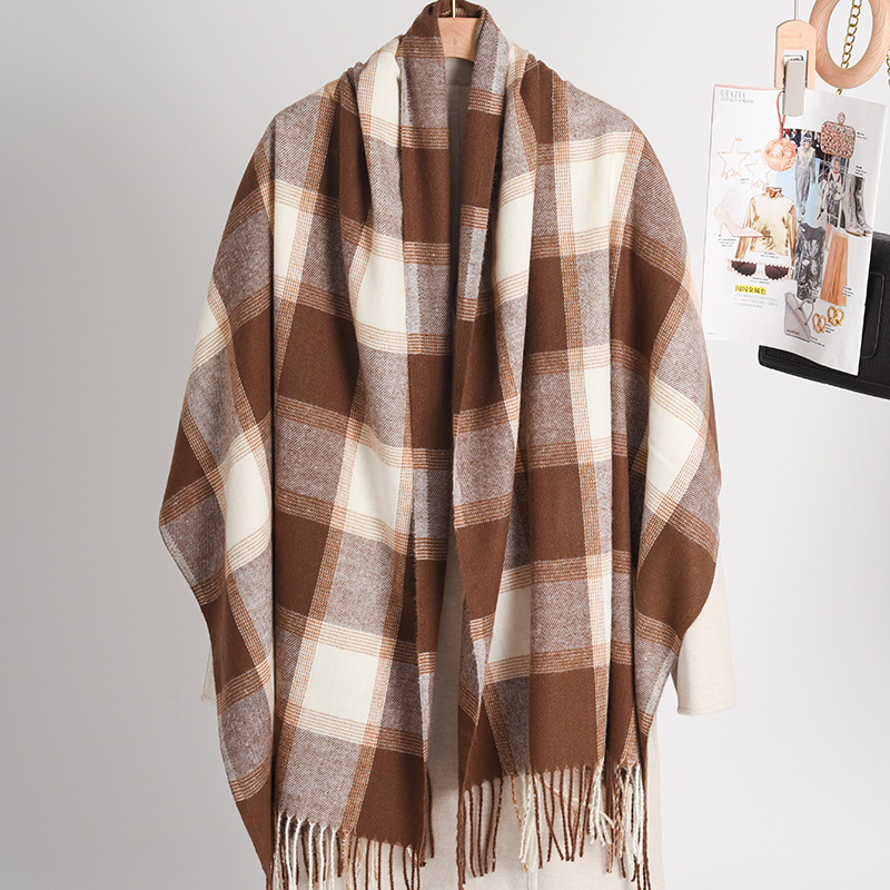 冬季新款仿羊绒围巾女高级感秋冬加厚围巾冬天爆款流苏格子披肩
