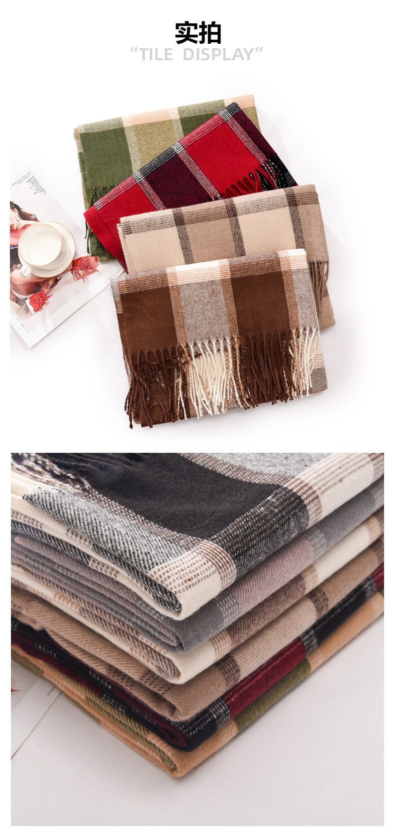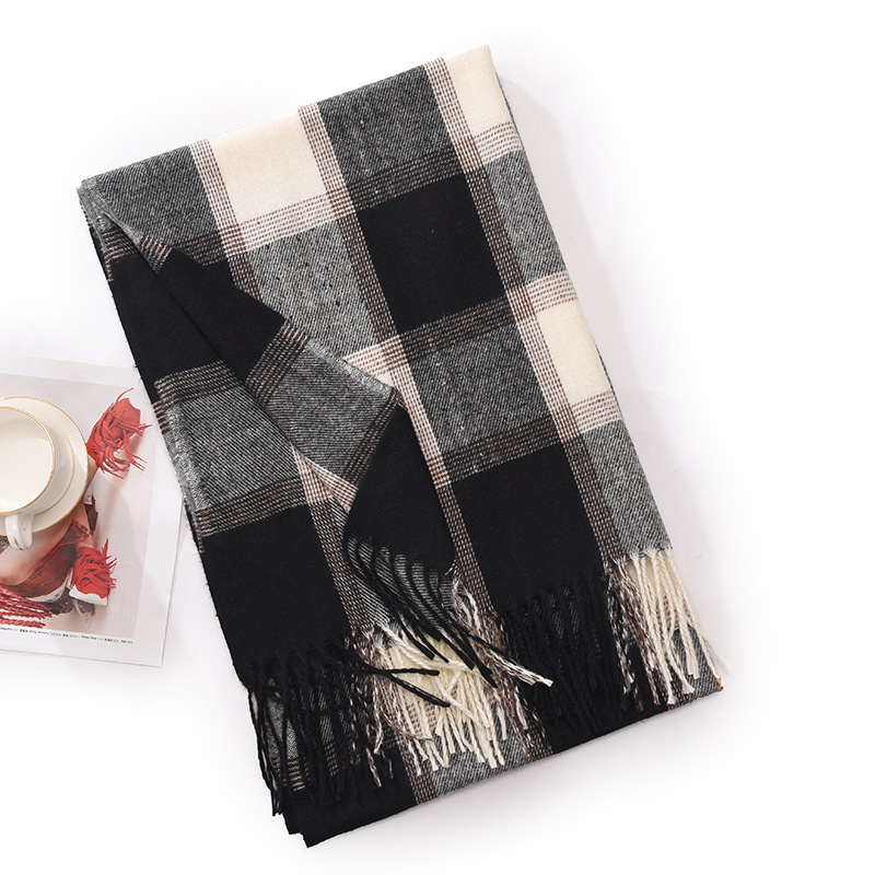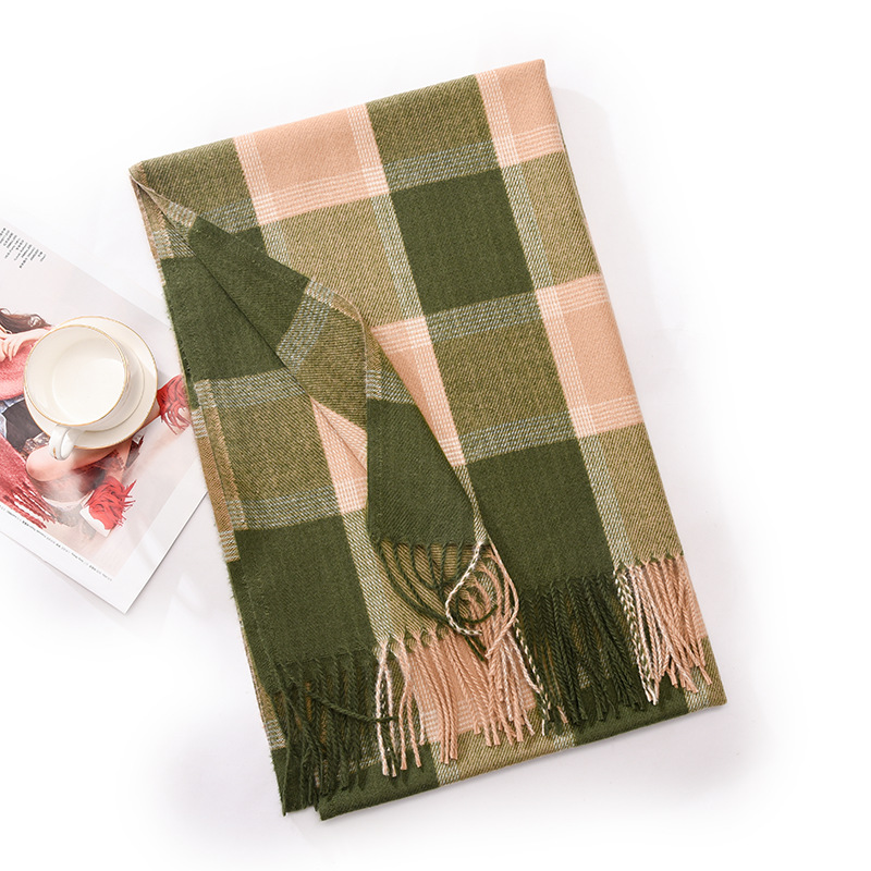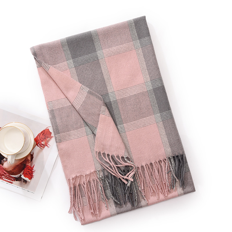 冬季新款仿羊绒围巾女高级感秋冬加厚围巾冬天爆款流苏格子披肩