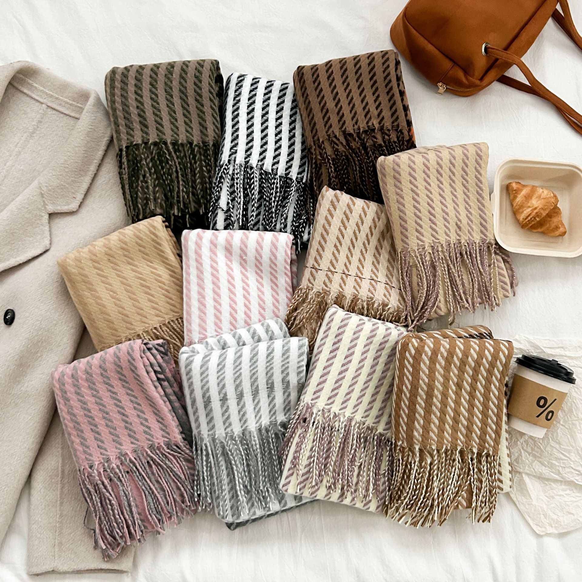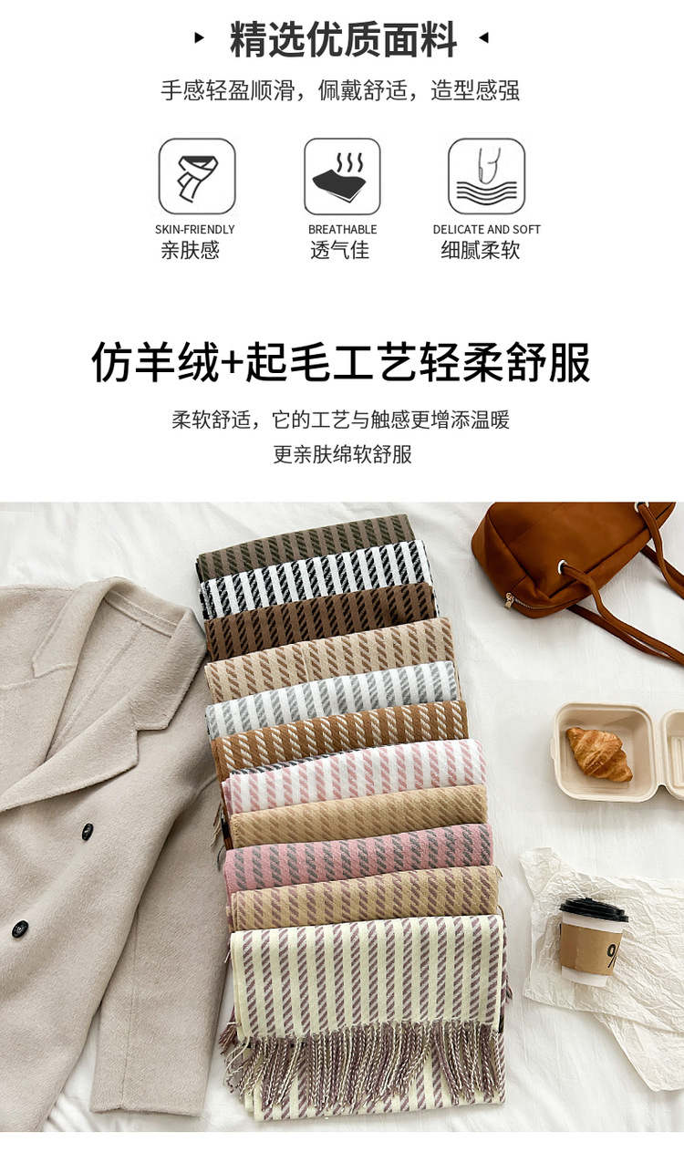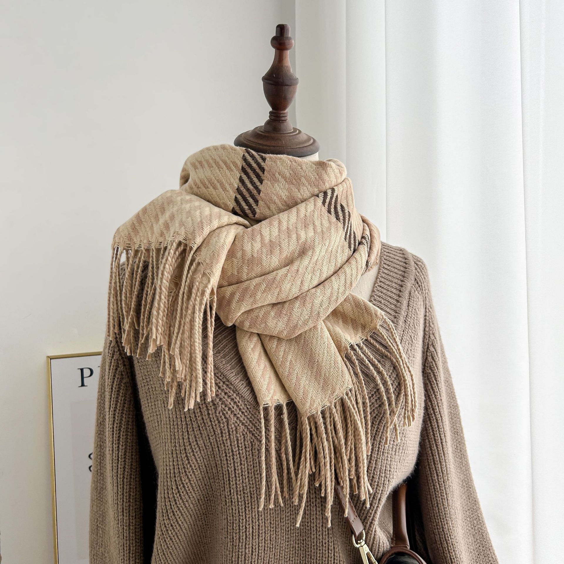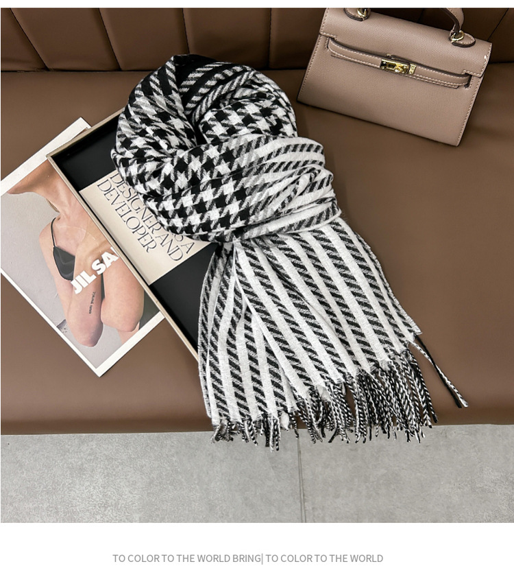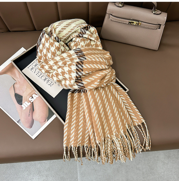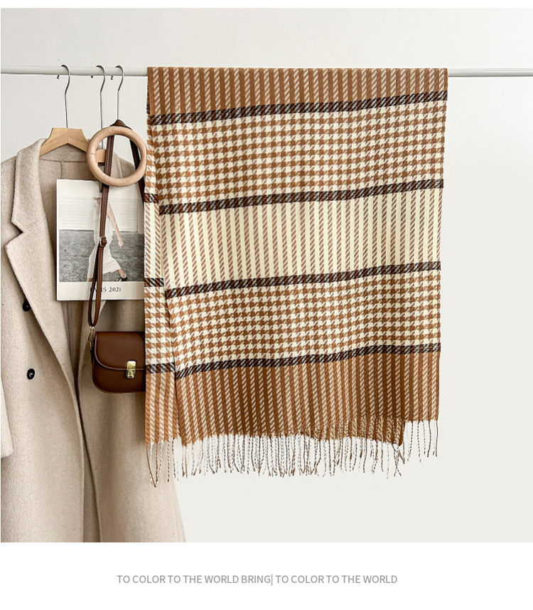 新款千鸟格仿羊绒围巾欧美街头流苏格子围巾女秋冬保暖时尚百搭