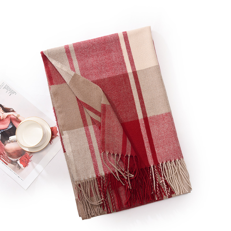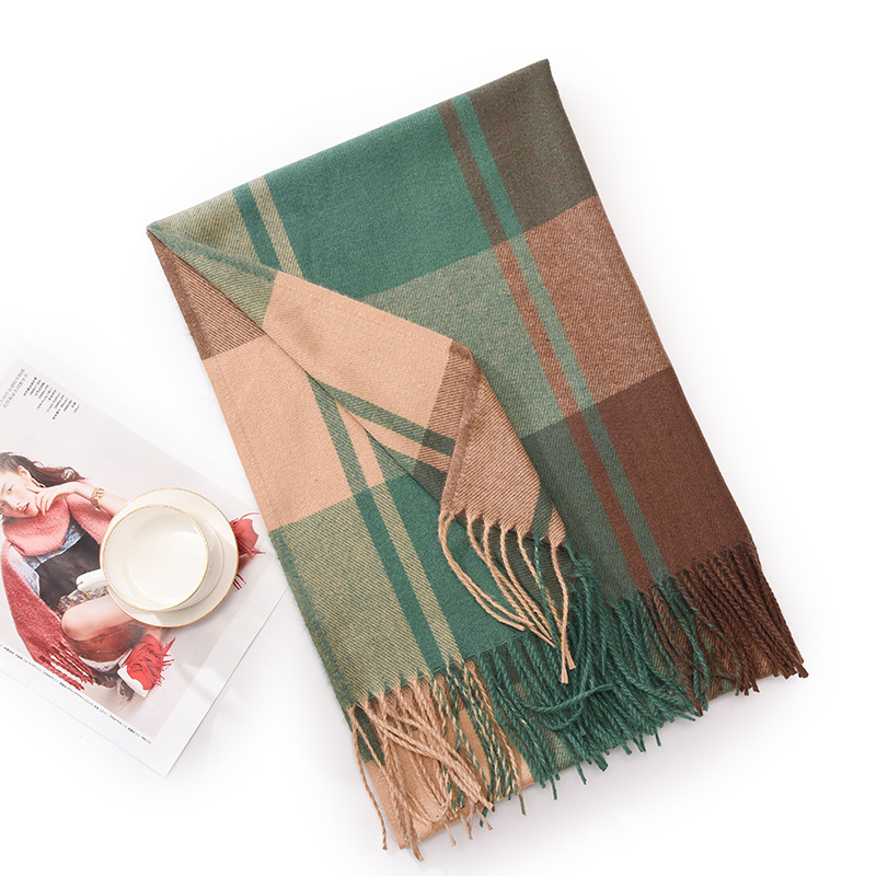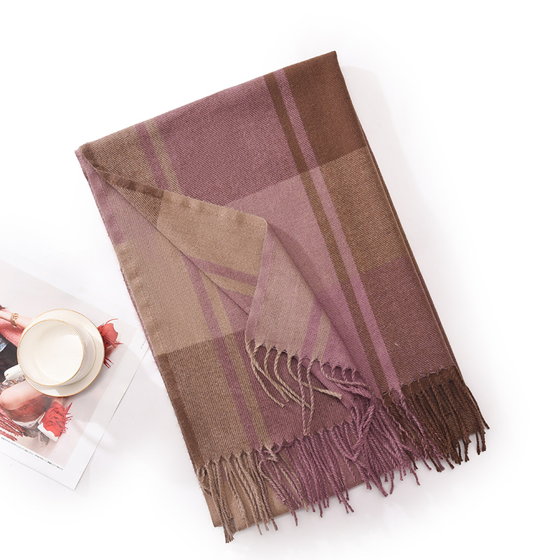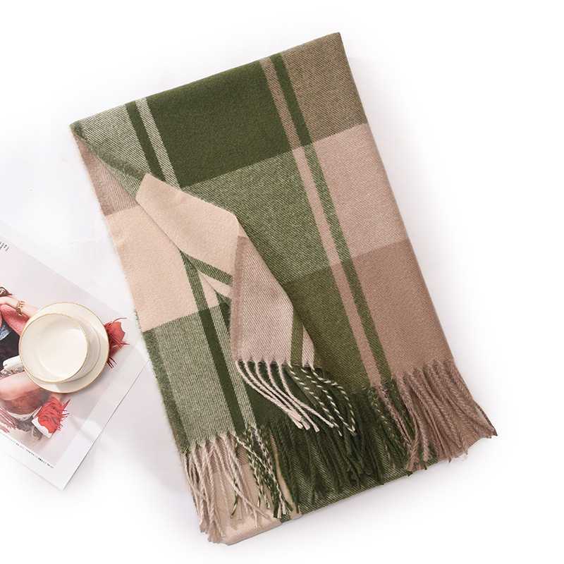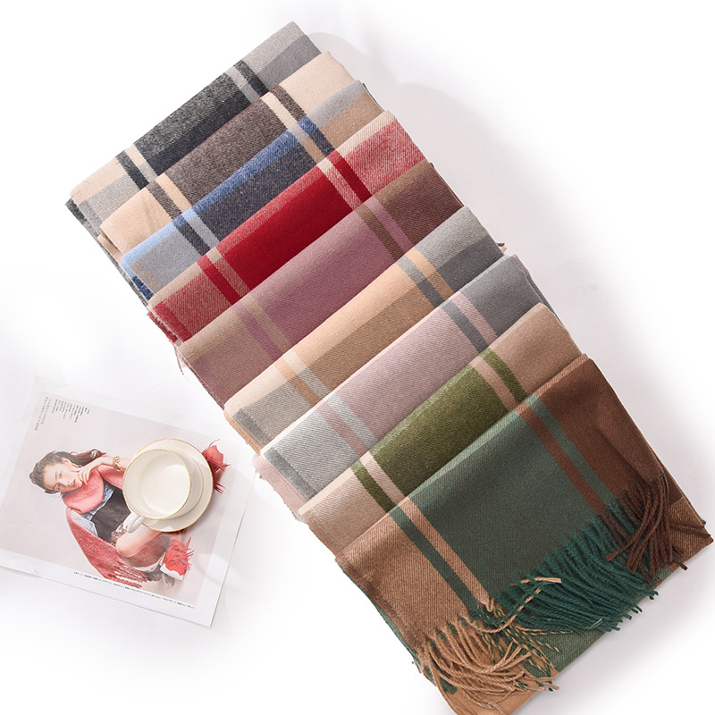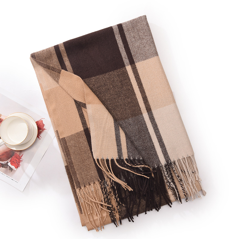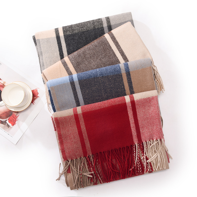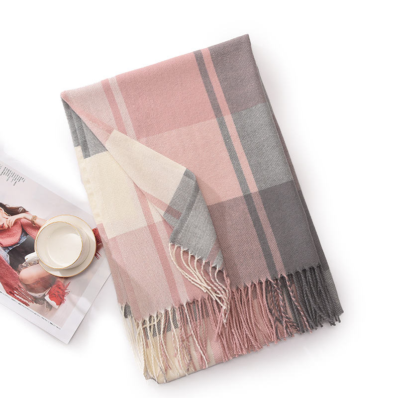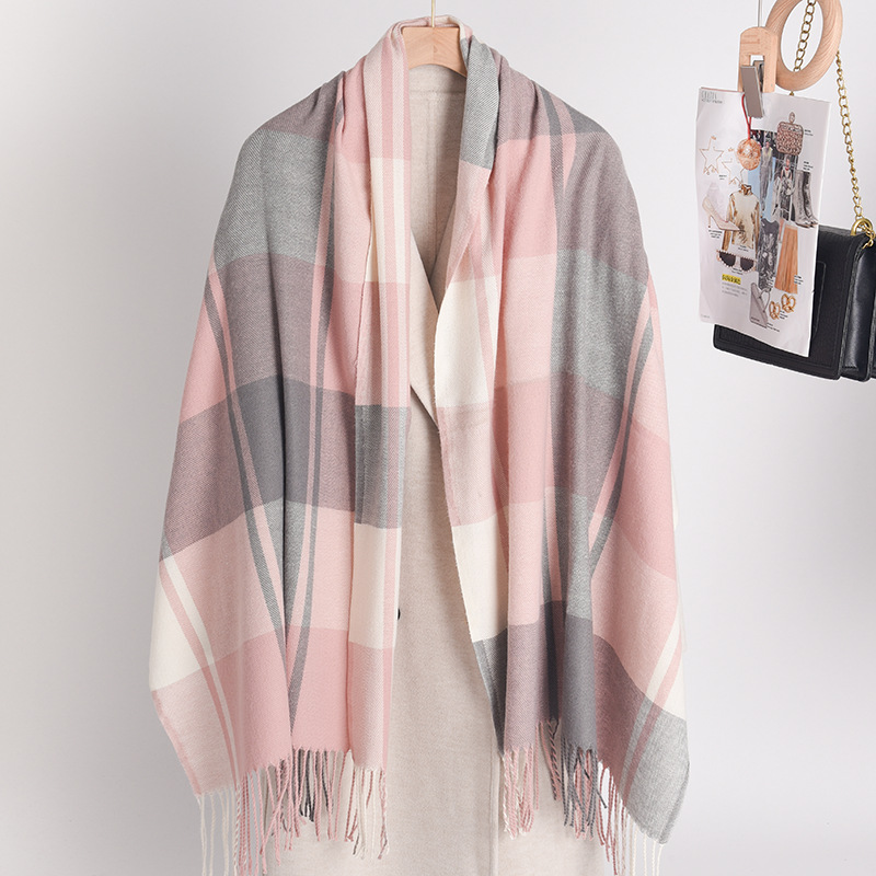 仿羊绒围巾女高级感披肩新款保暖围巾冬天爆款格子围巾围脖流苏