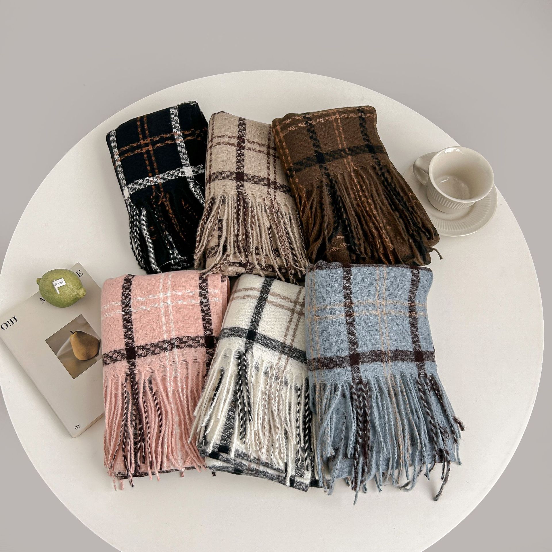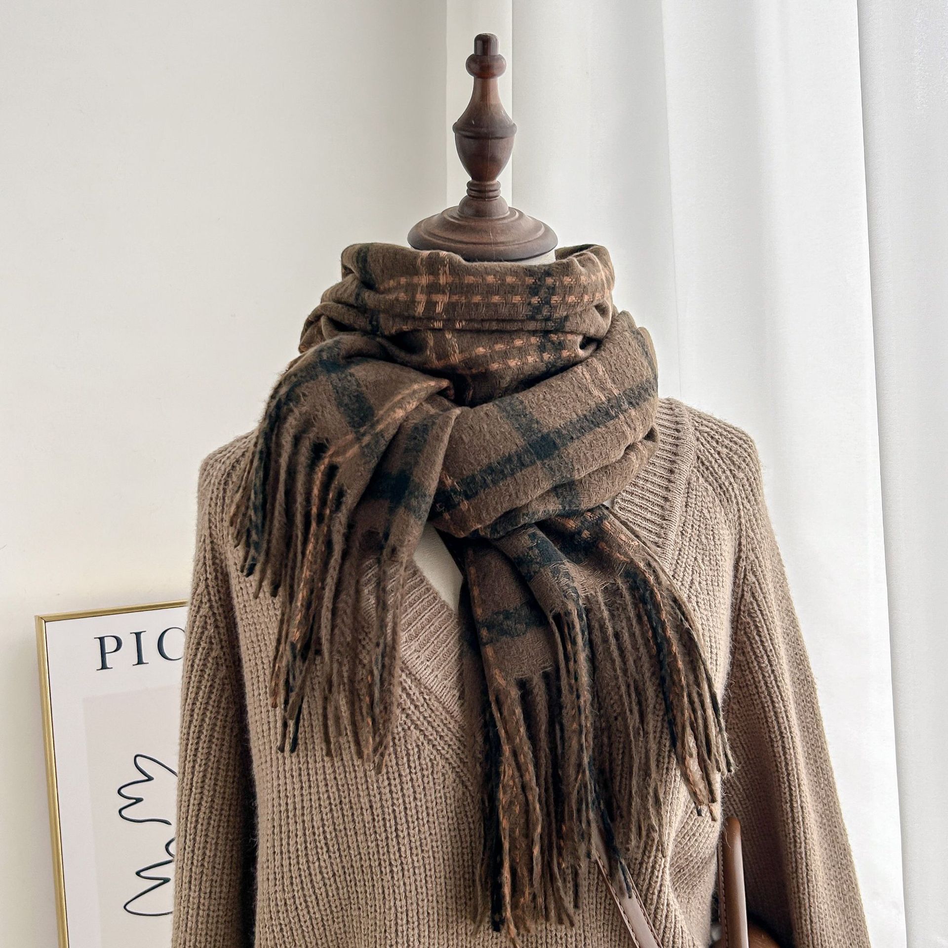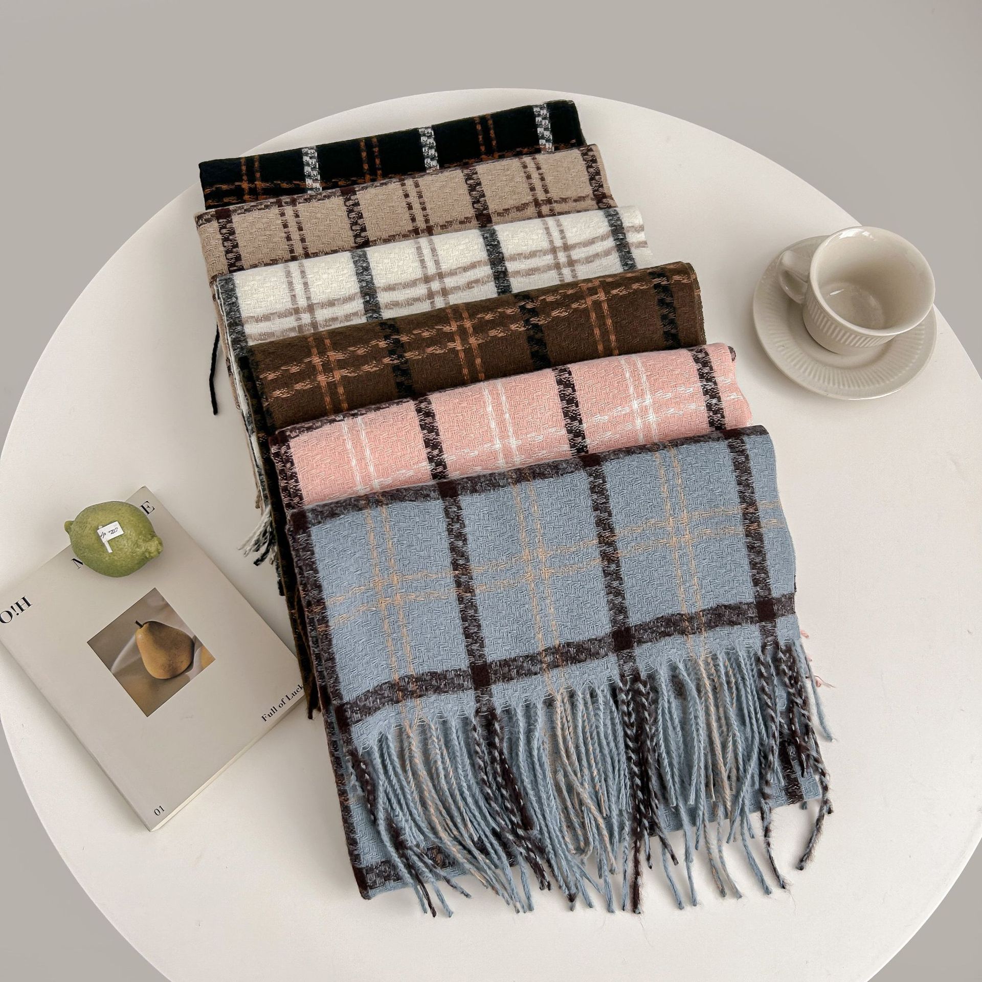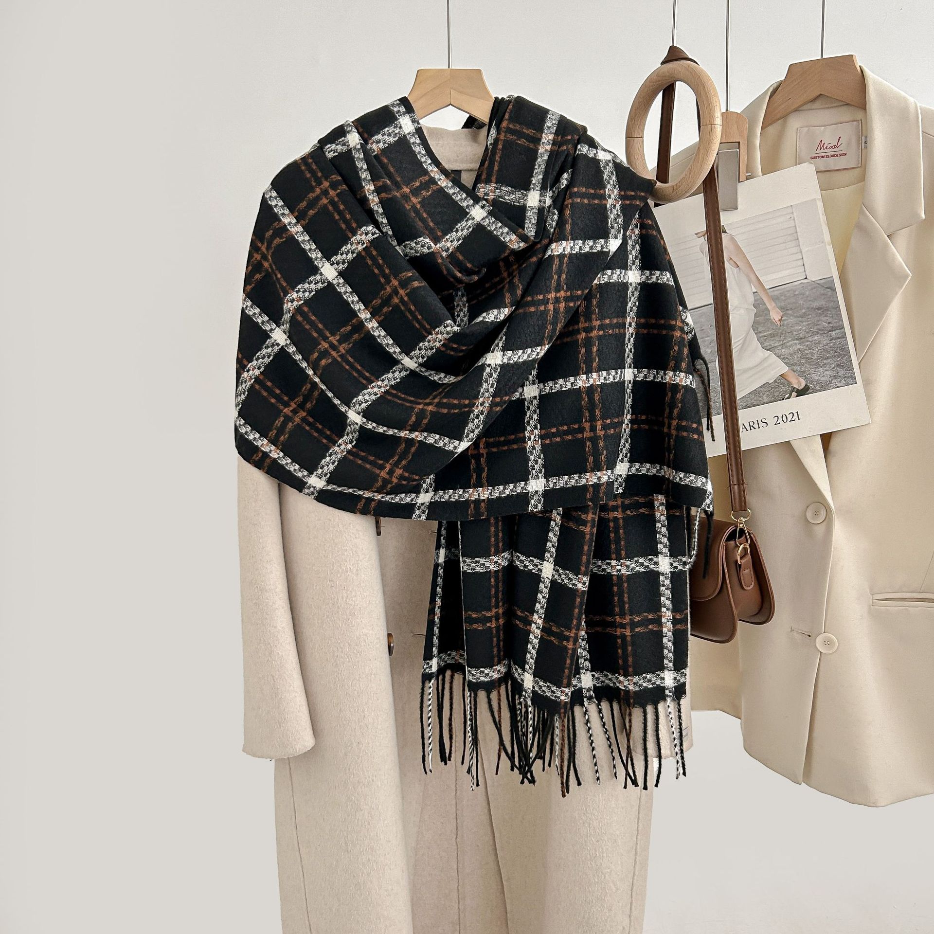 新款日系复古格子仿羊绒围巾学生情侣冬季加厚保暖围巾高级感披肩