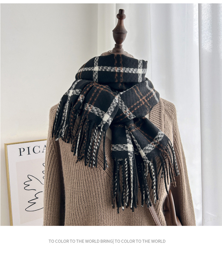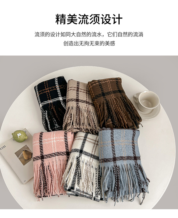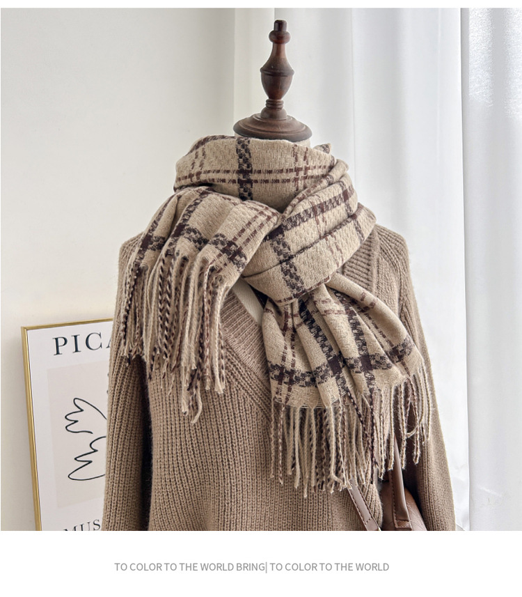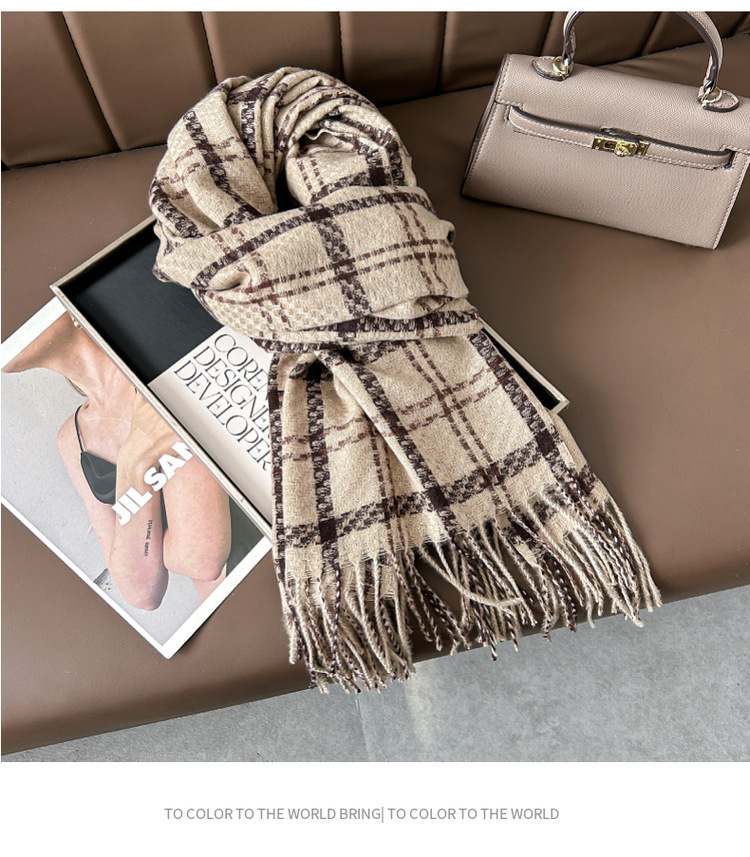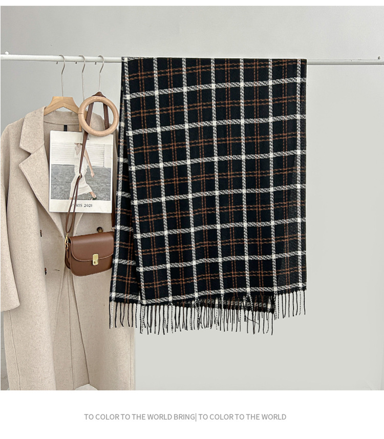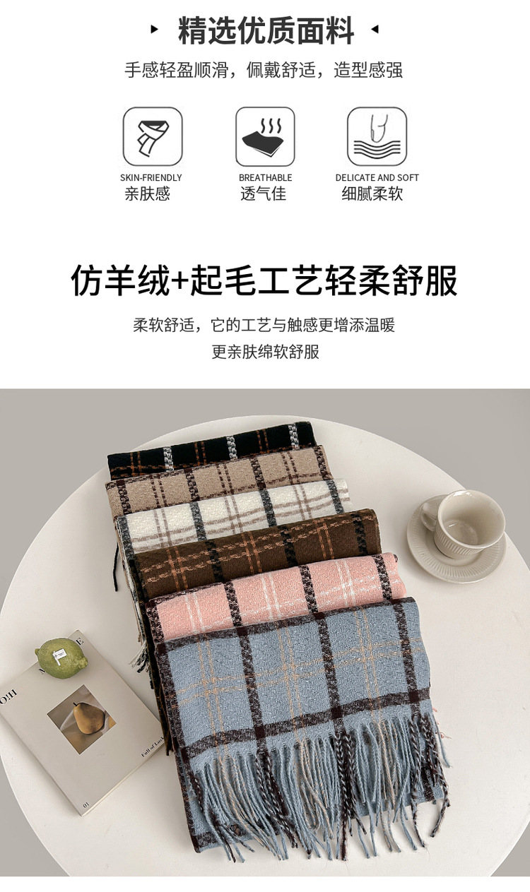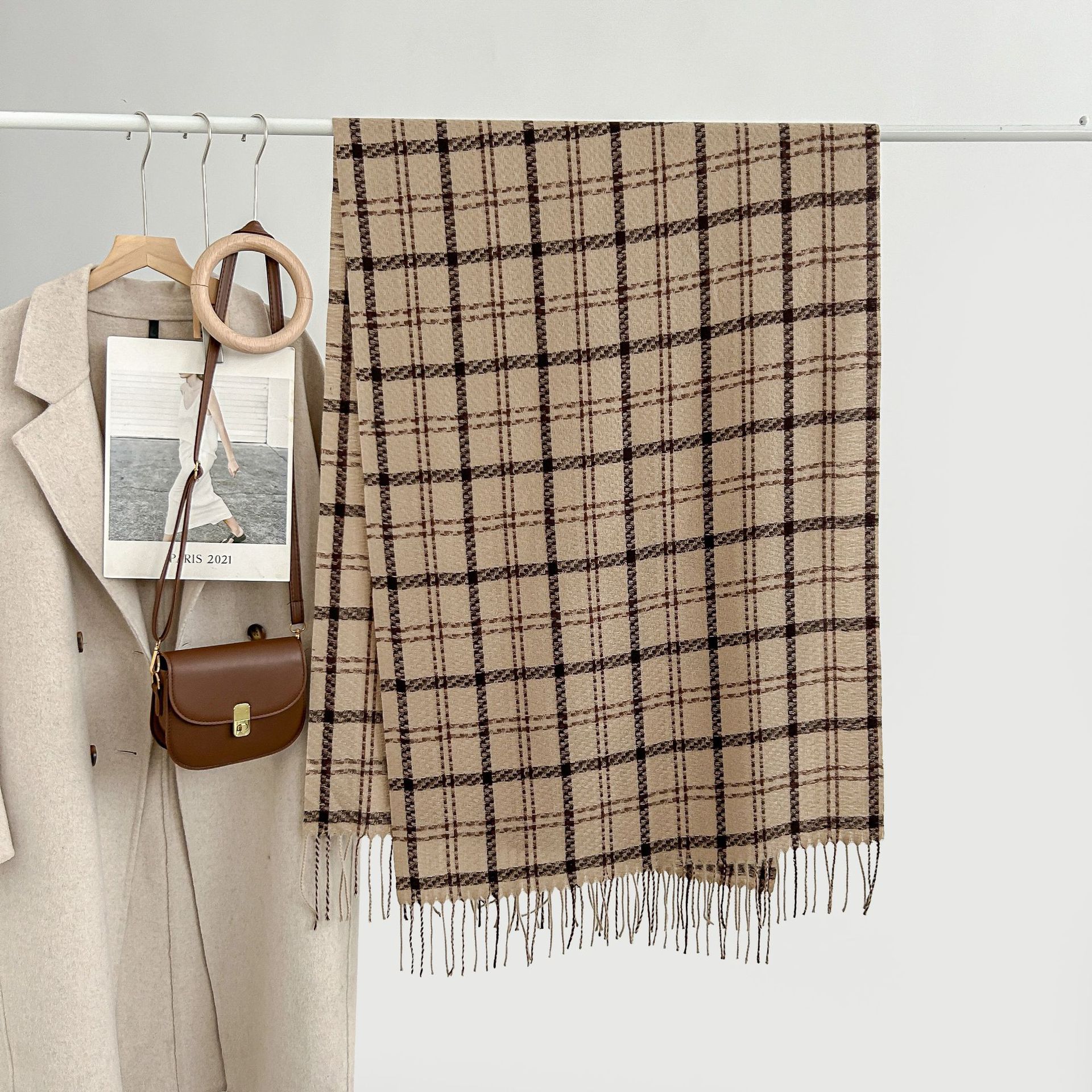 新款日系复古格子仿羊绒围巾学生情侣冬季加厚保暖围巾高级感披肩
