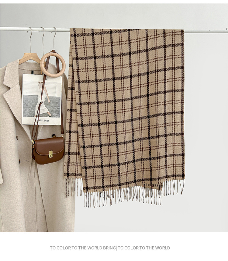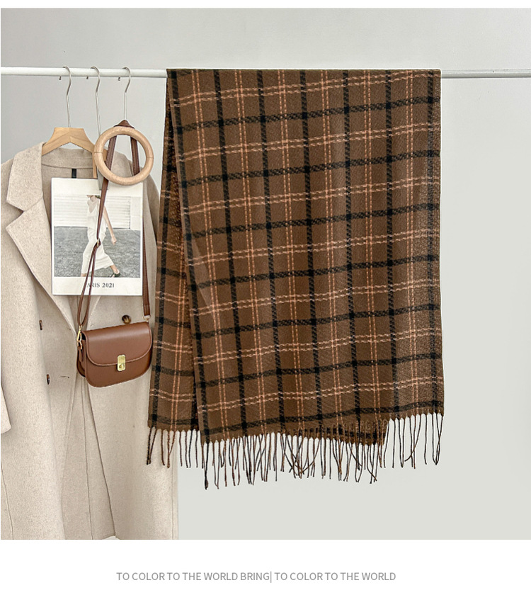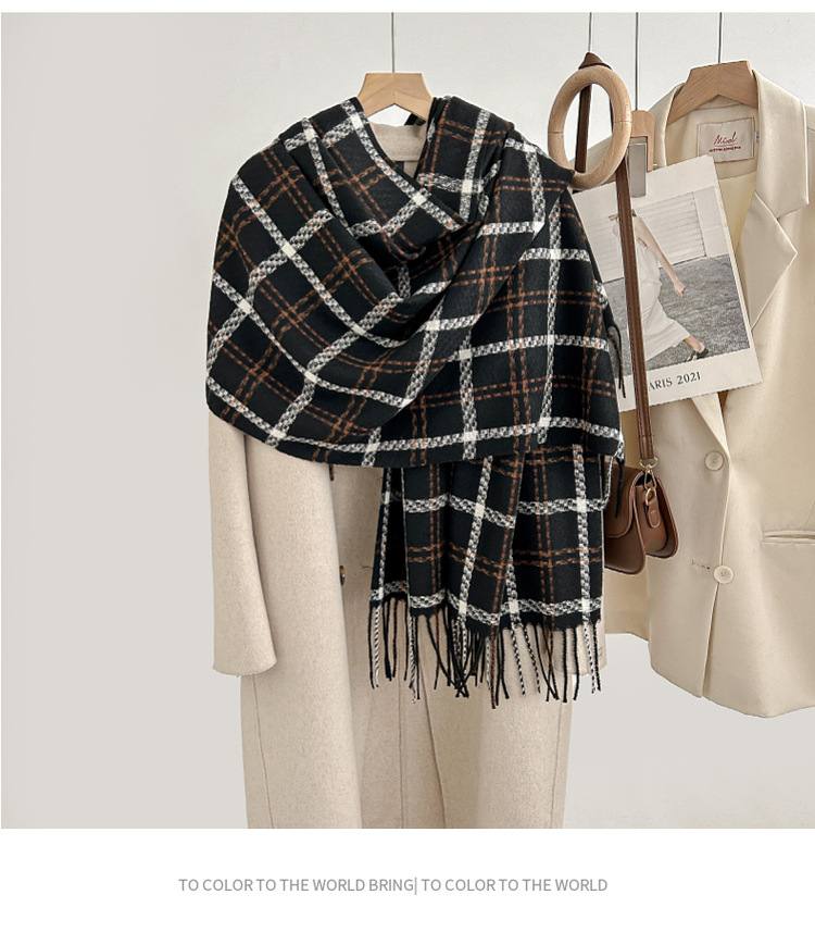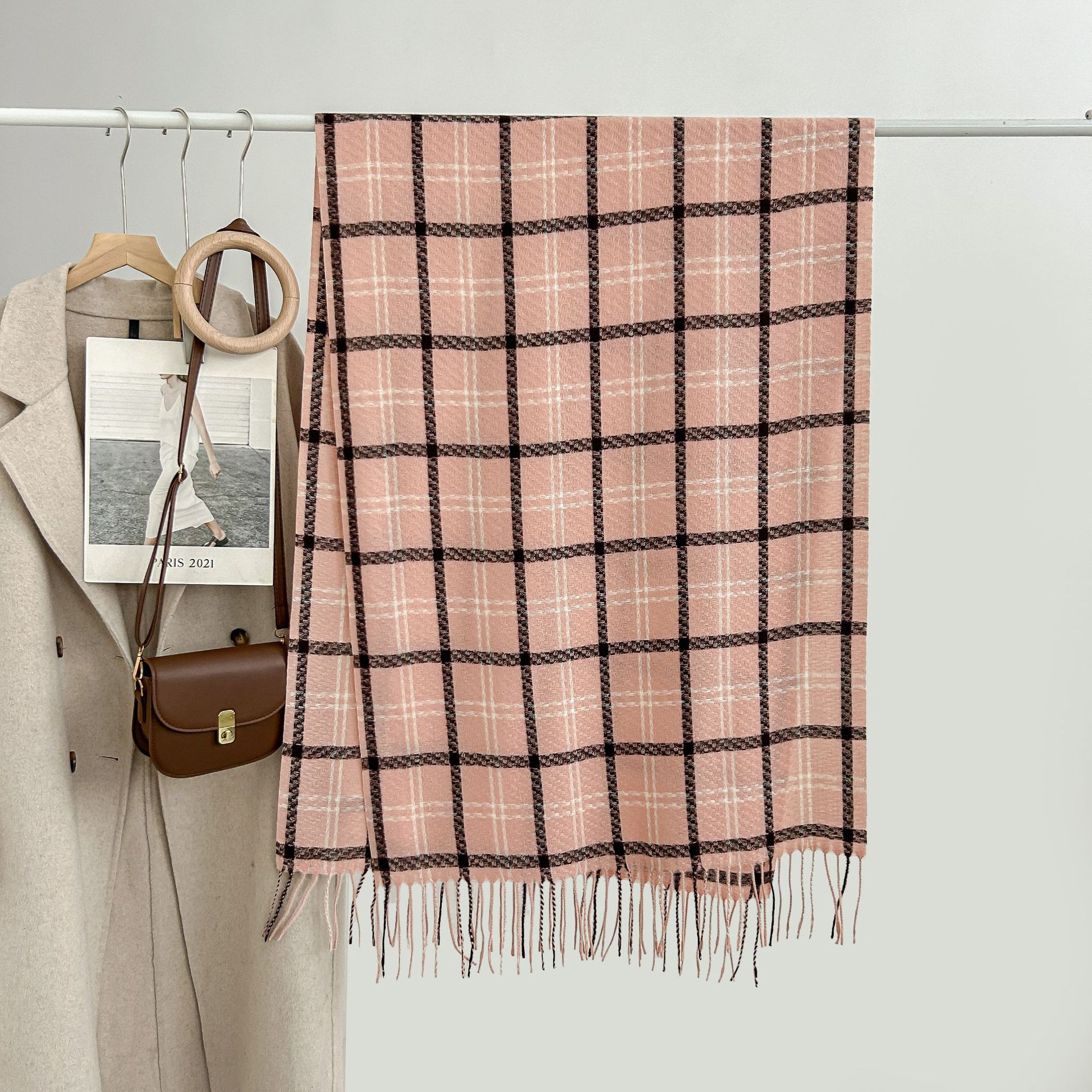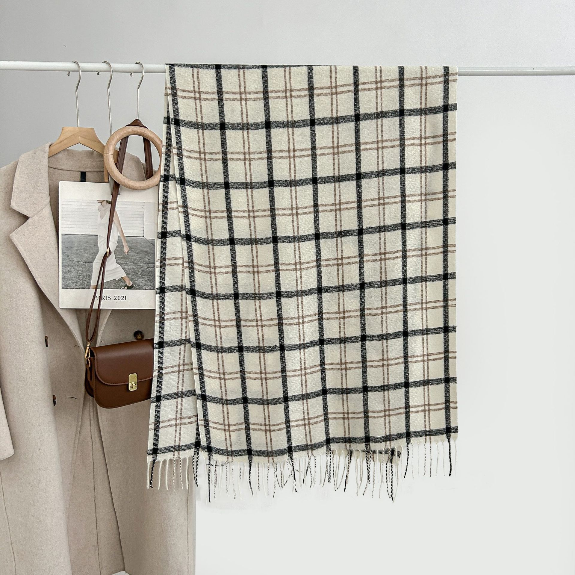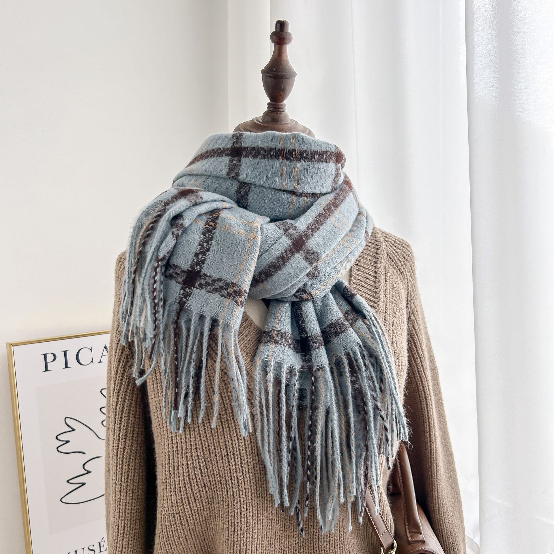 新款日系复古格子仿羊绒围巾学生情侣冬季加厚保暖围巾高级感披肩