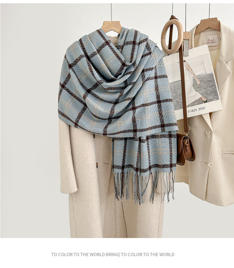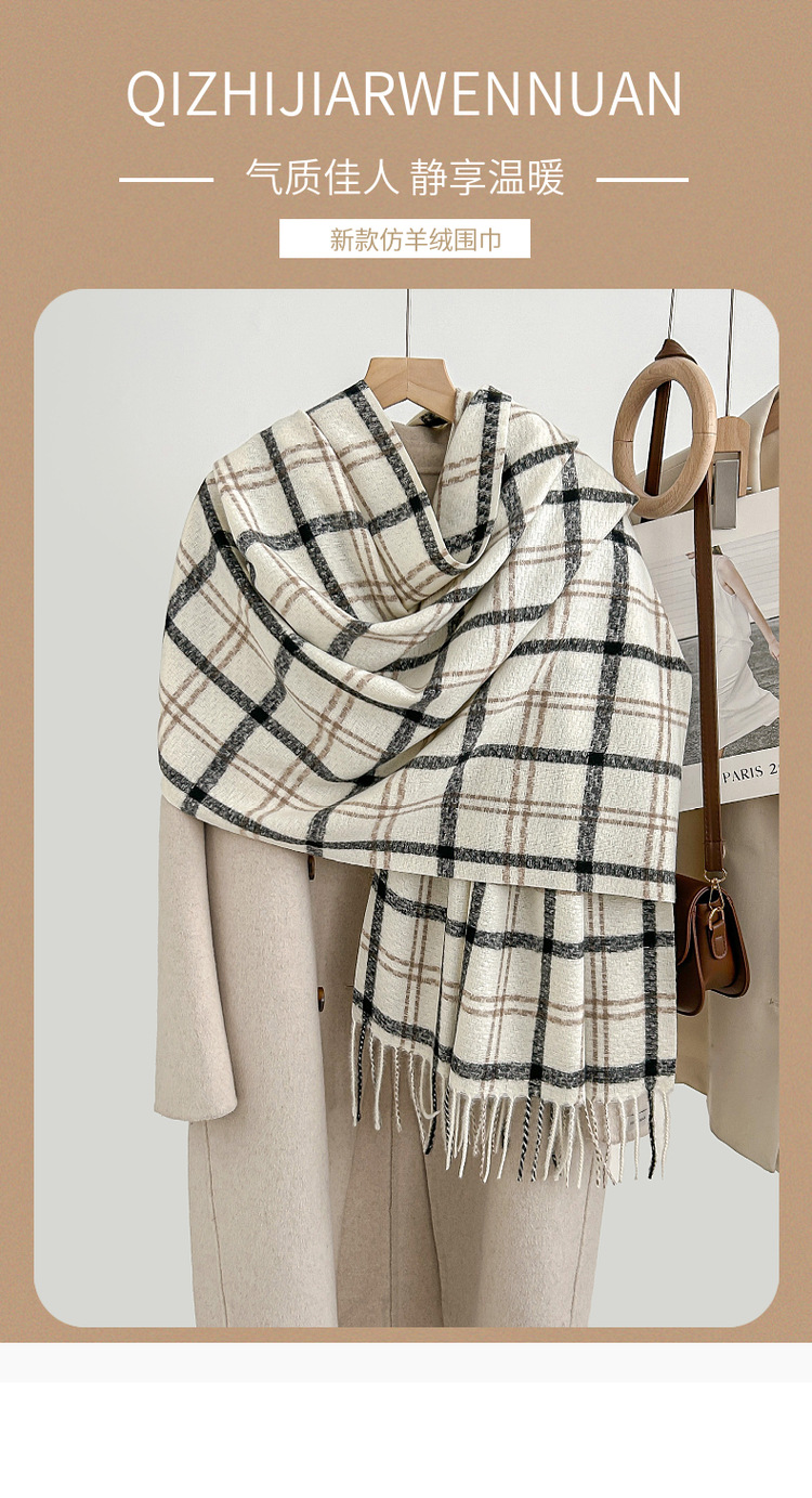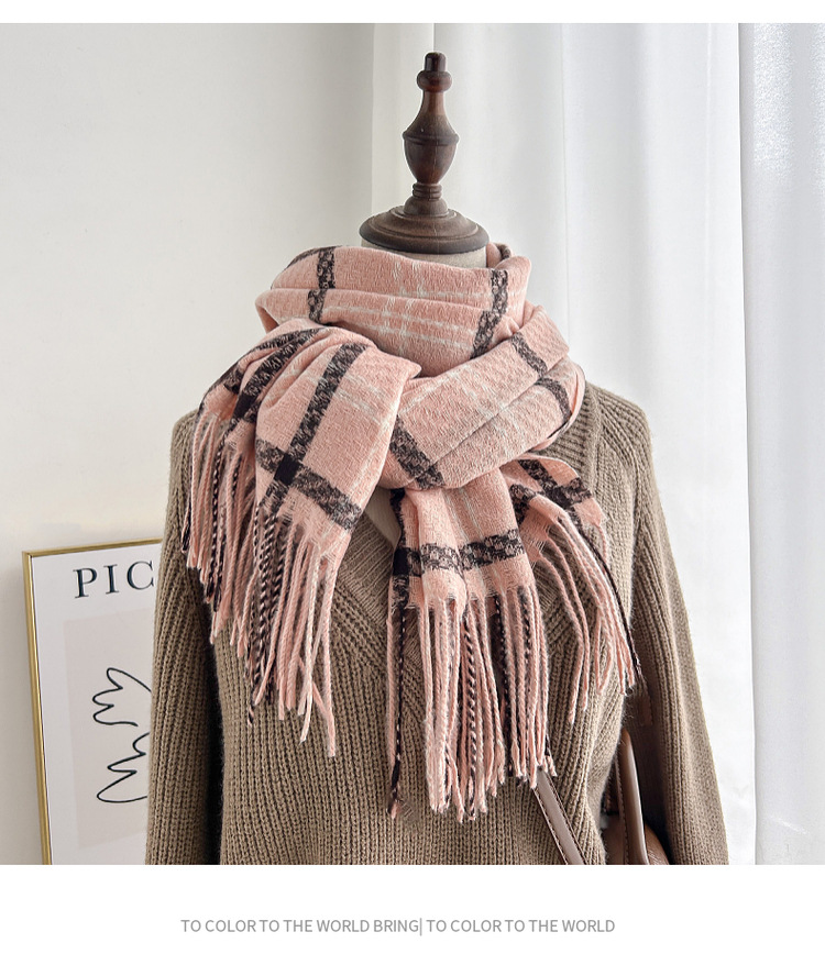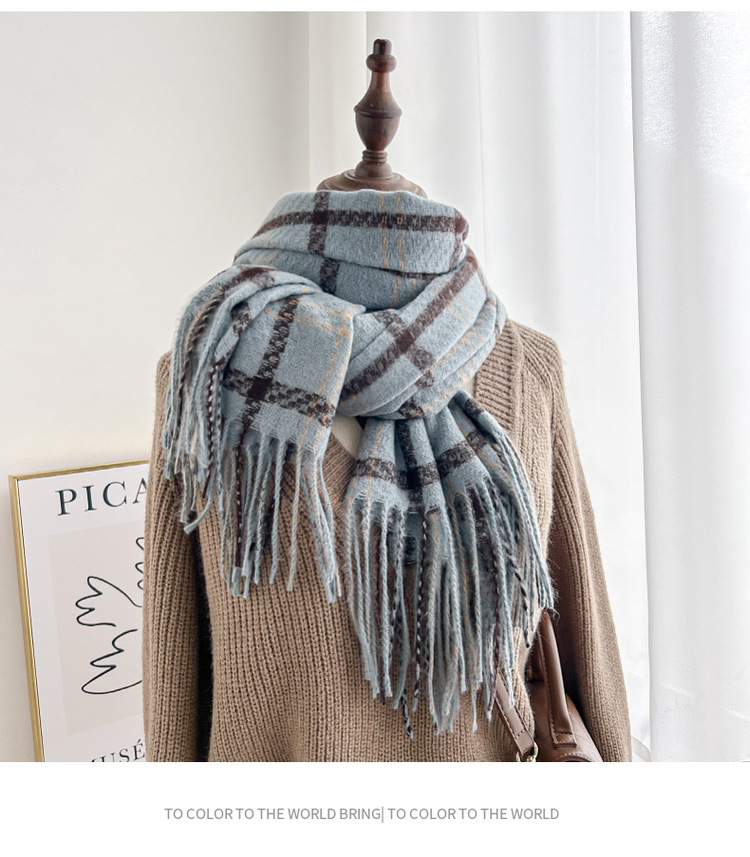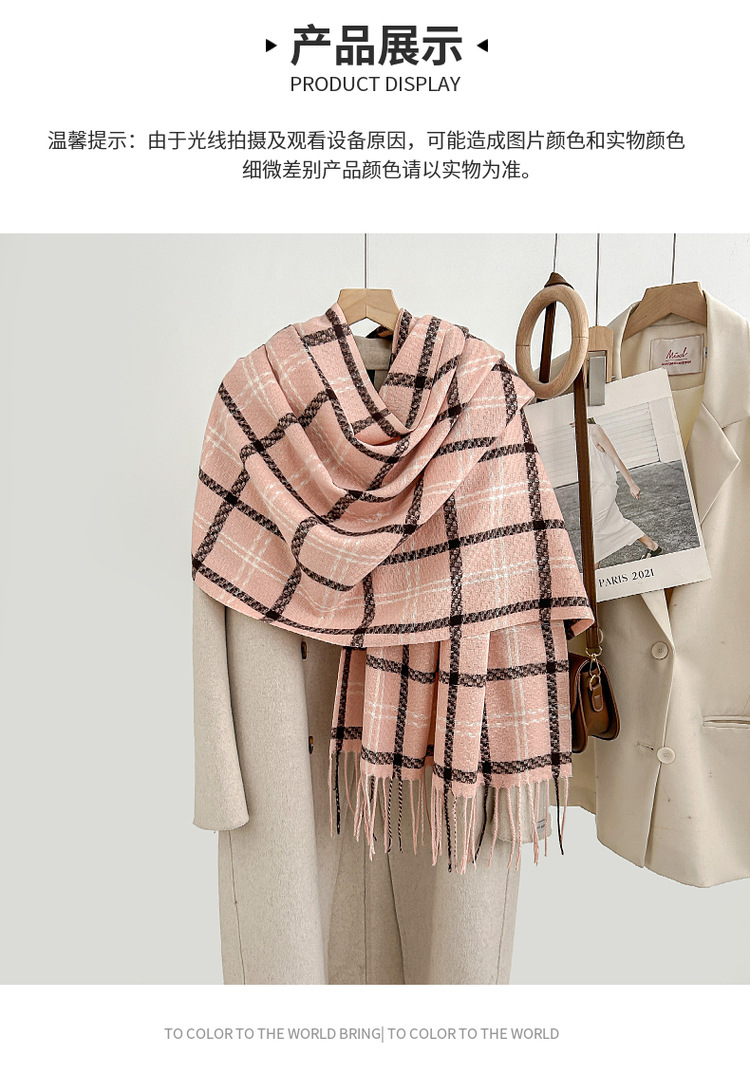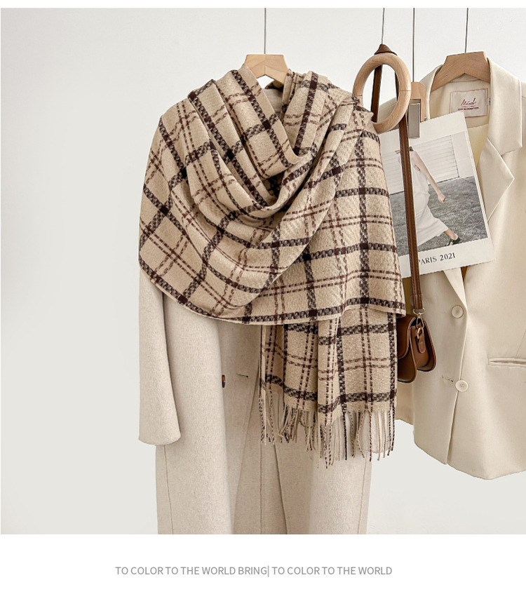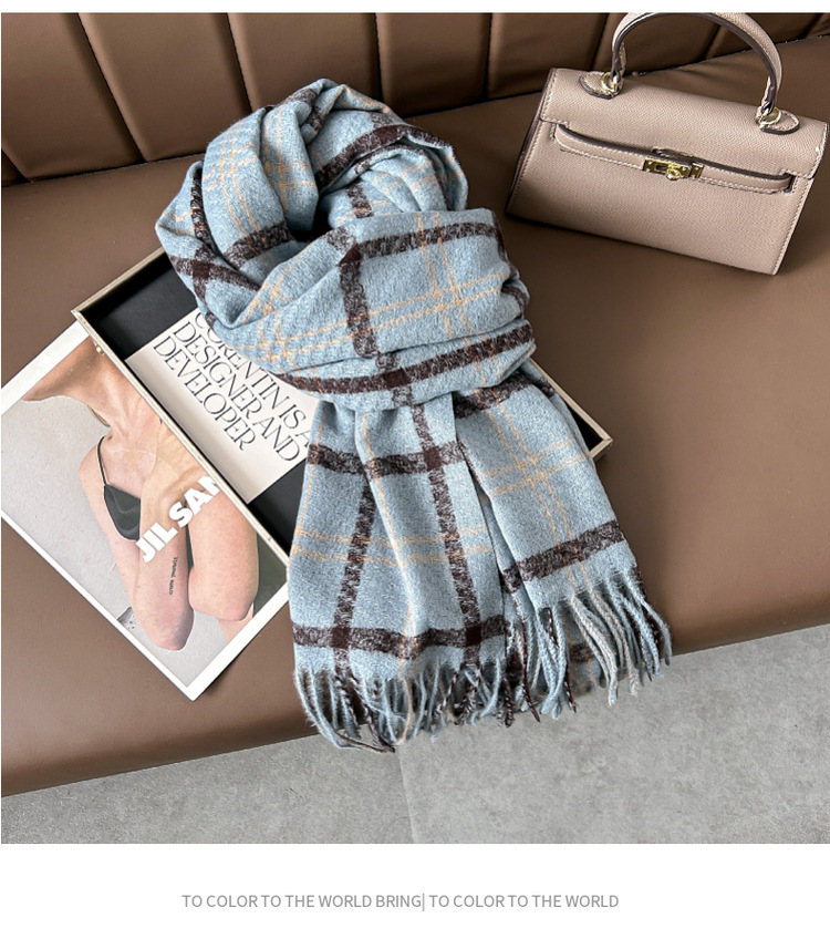 新款日系复古格子仿羊绒围巾学生情侣冬季加厚保暖围巾高级感披肩