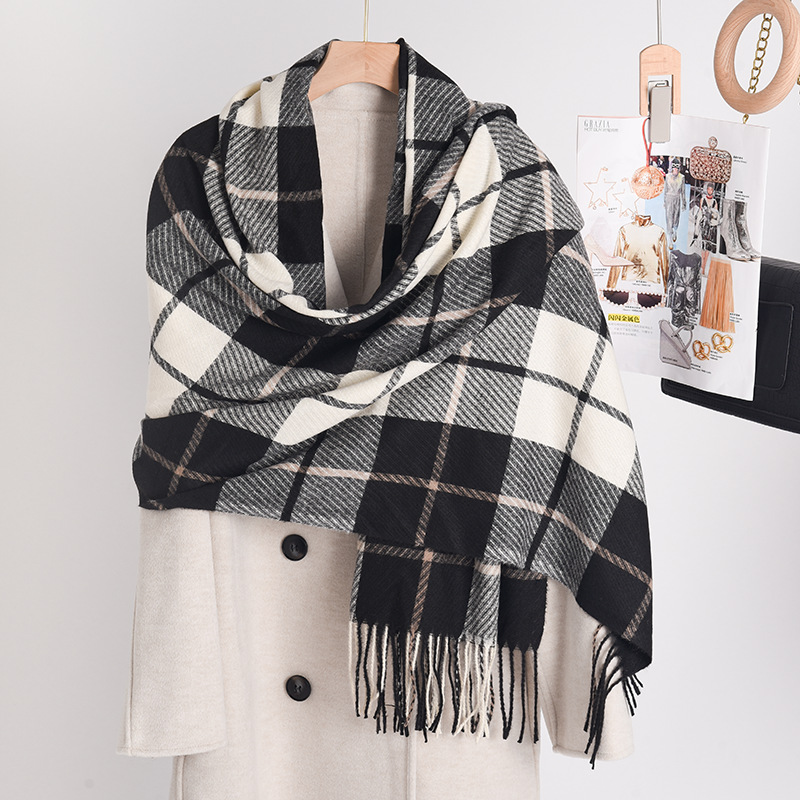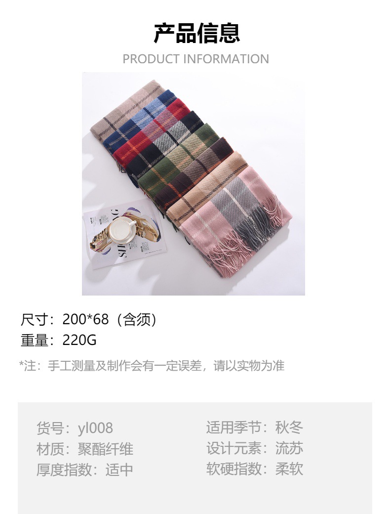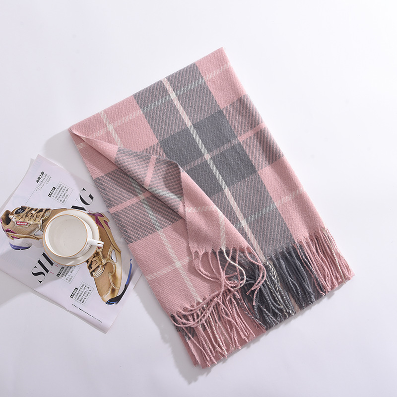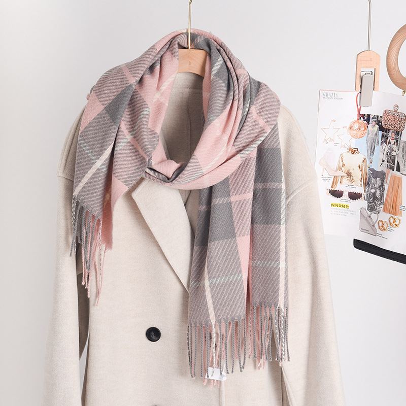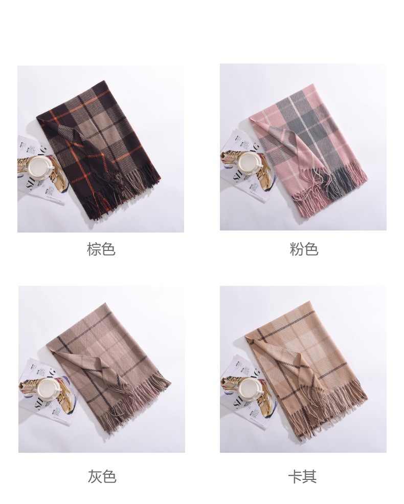 仿羊绒围巾女百搭时尚秋冬围巾 格子新款围脖披肩中长款围巾批发