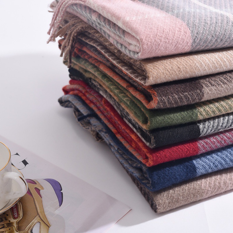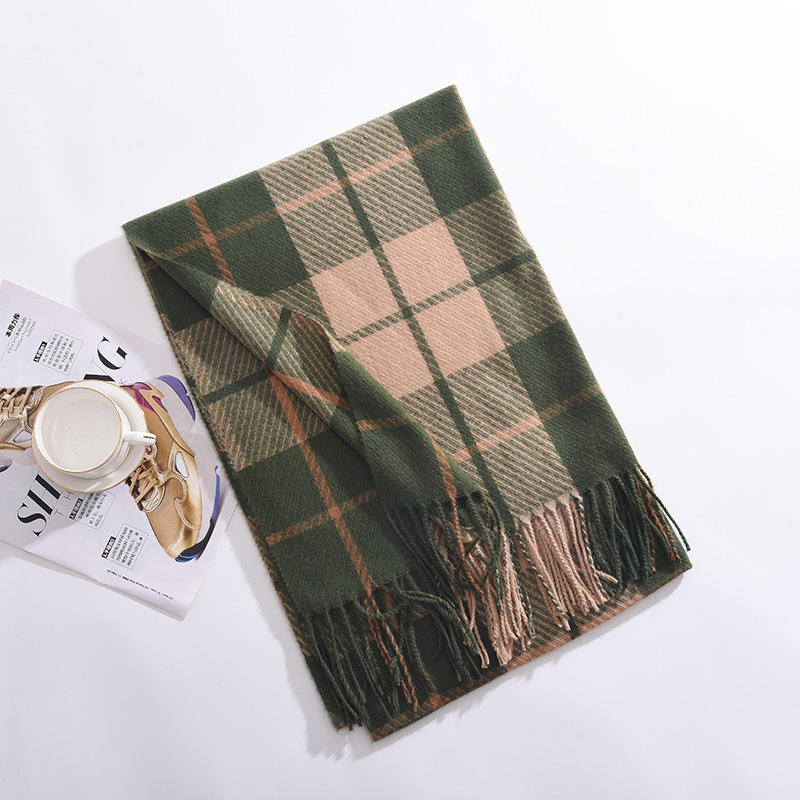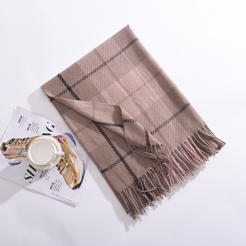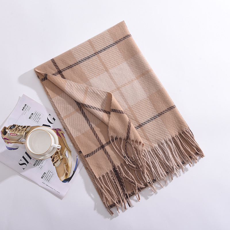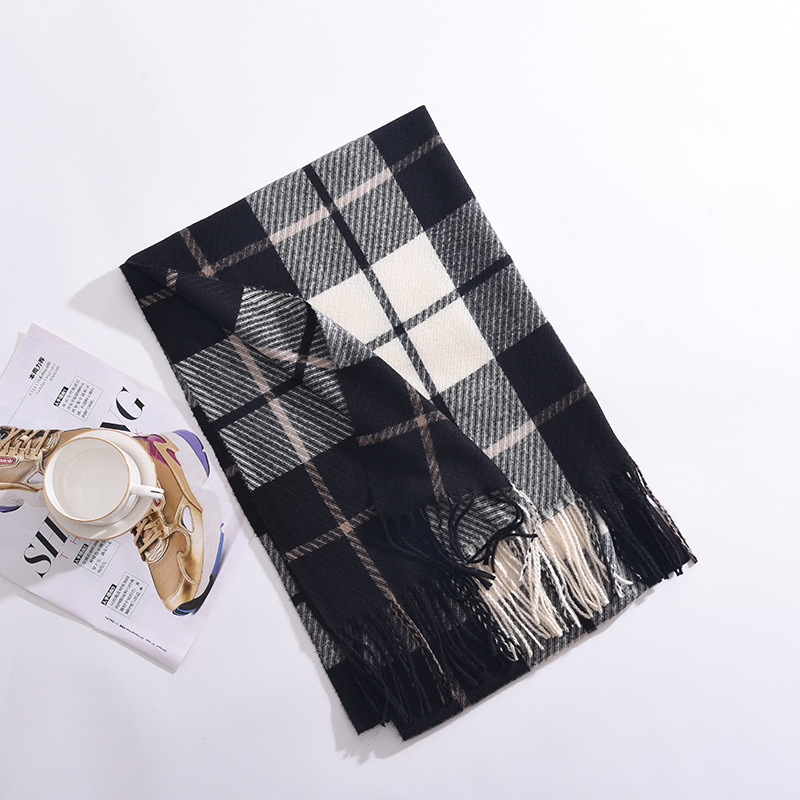 仿羊绒围巾女百搭时尚秋冬围巾 格子新款围脖披肩中长款围巾批发