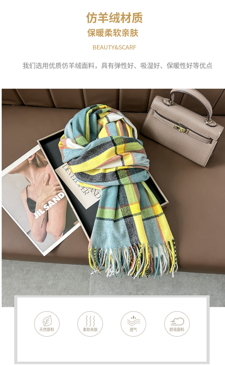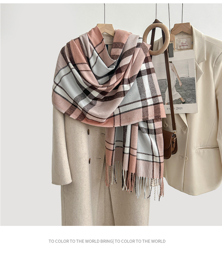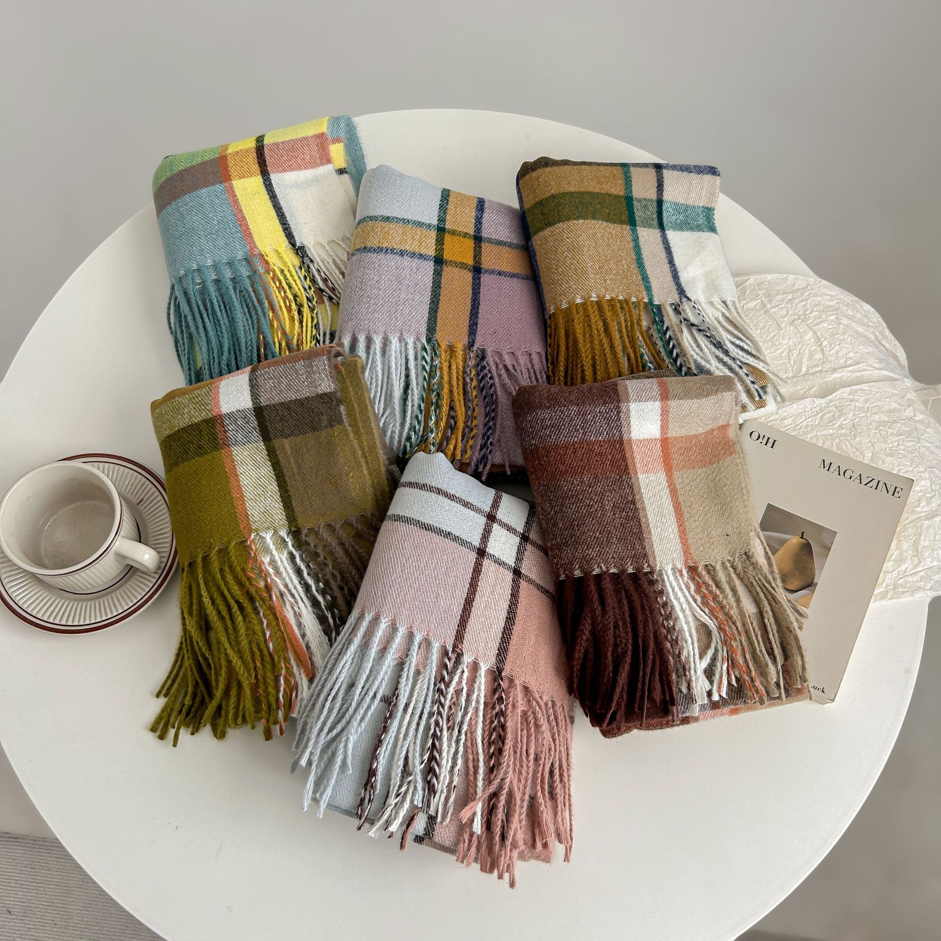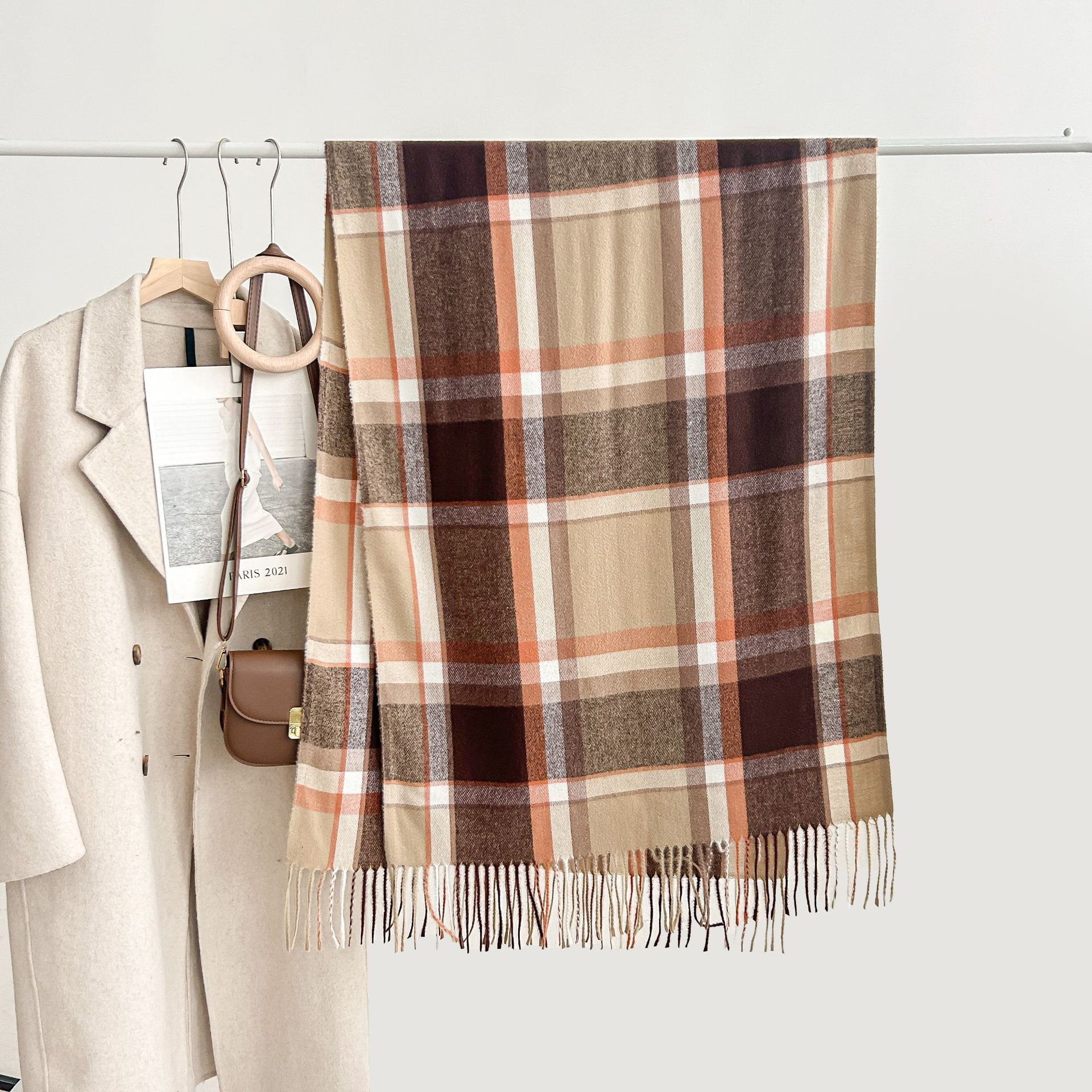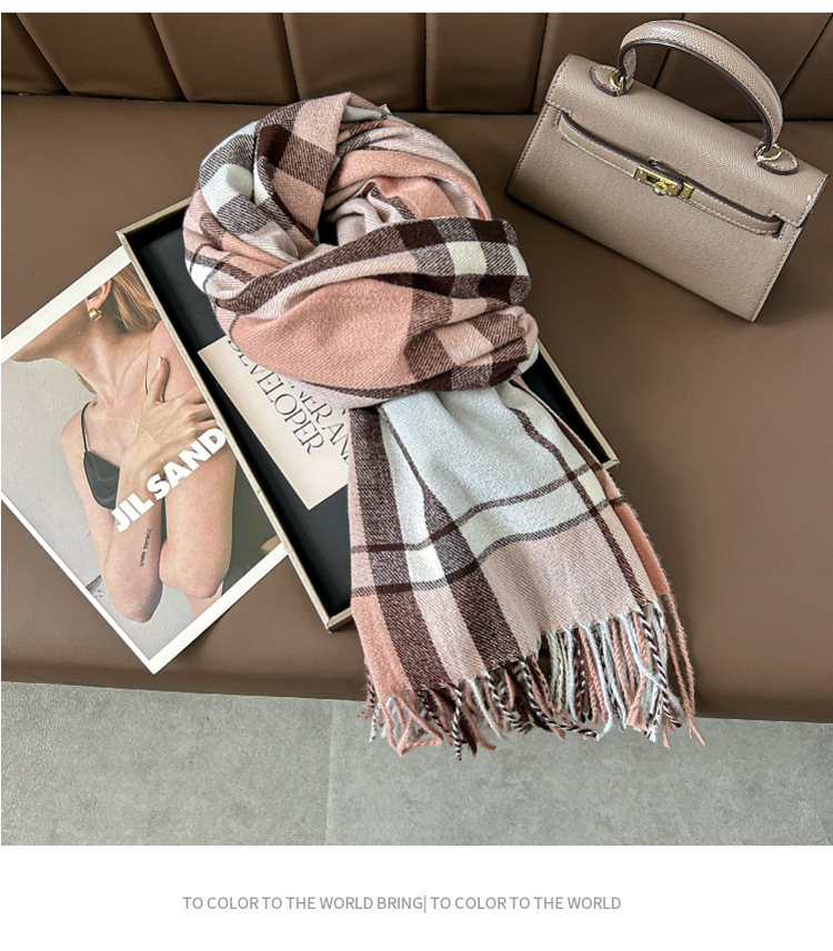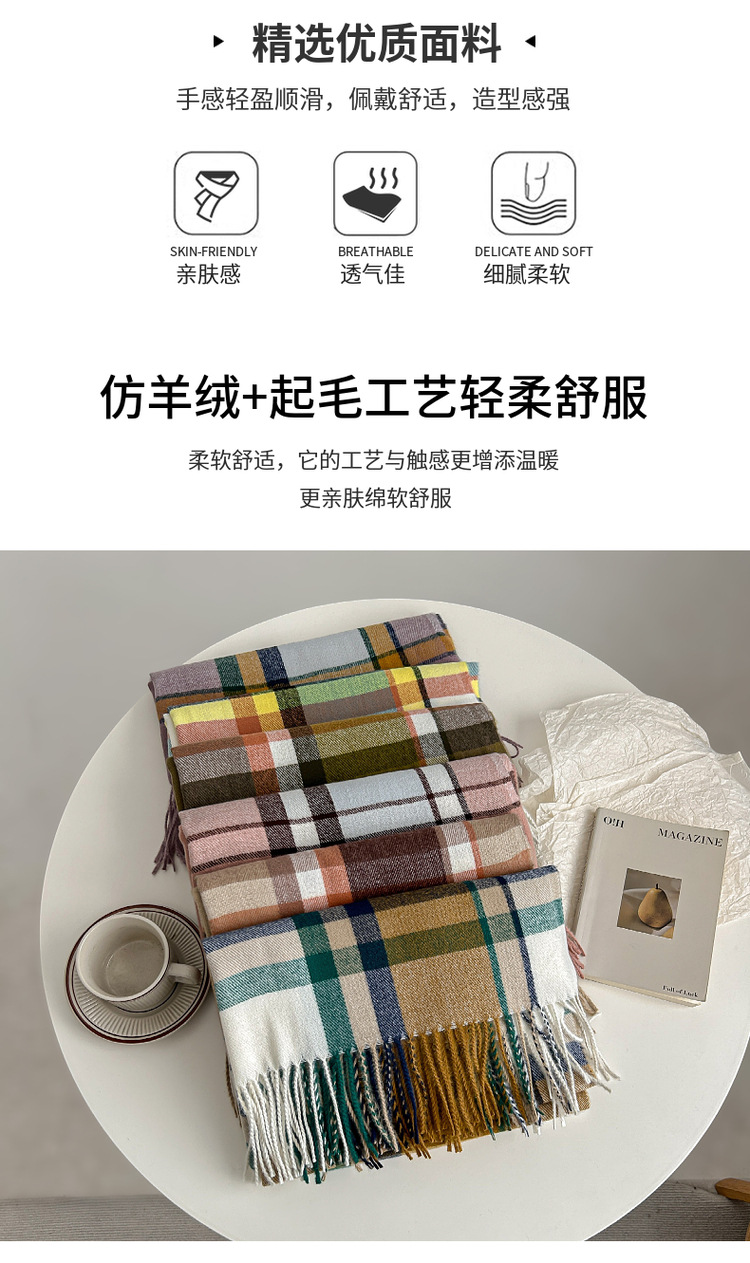 围巾女冬季2024新款加厚保暖仿羊绒格子披肩韩版百搭流苏围脖批发