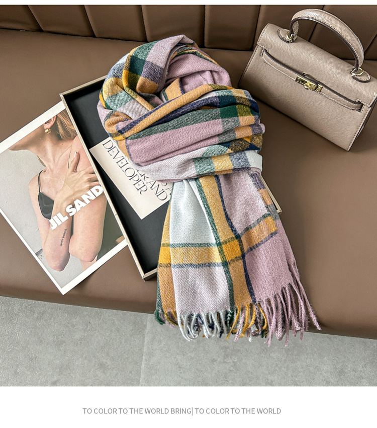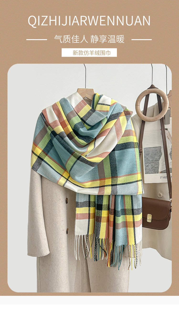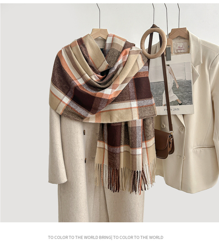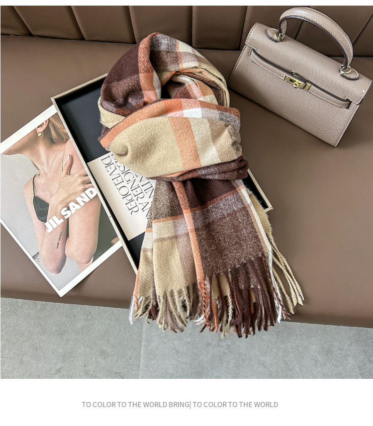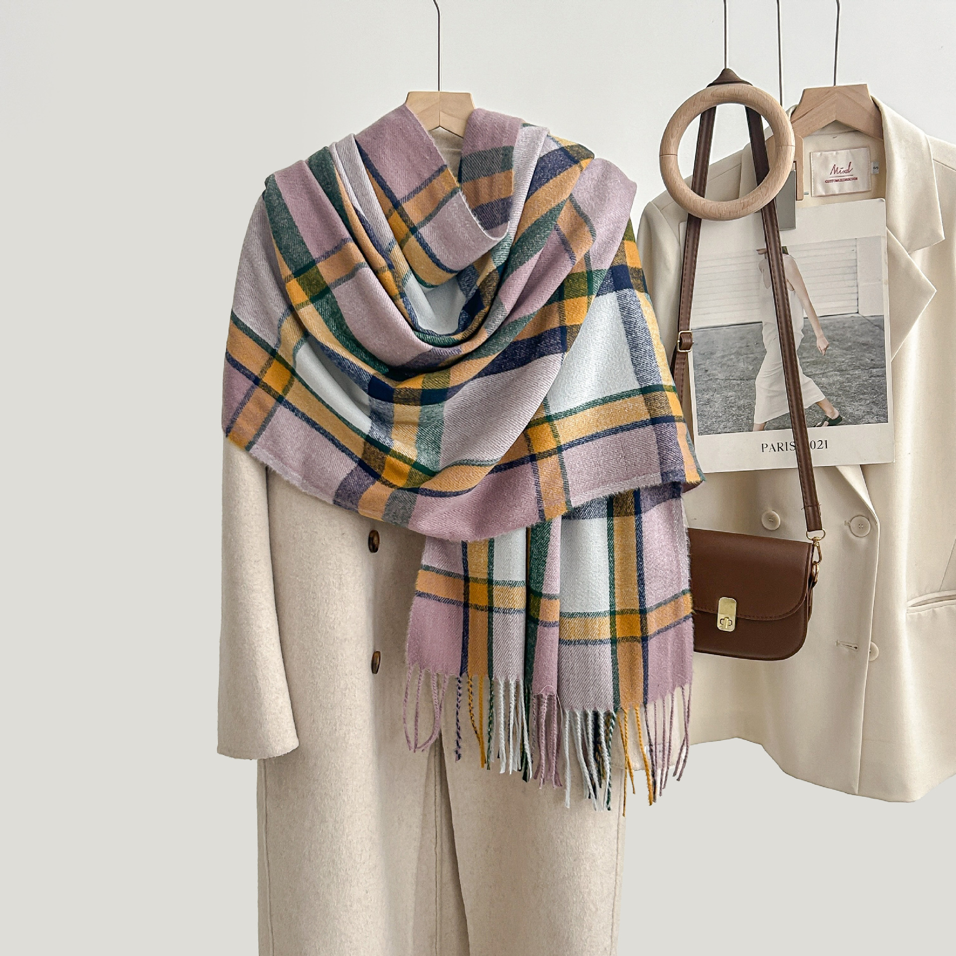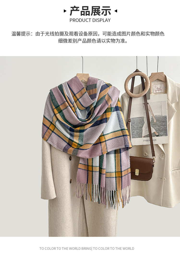 围巾女冬季2024新款加厚保暖仿羊绒格子披肩韩版百搭流苏围脖批发