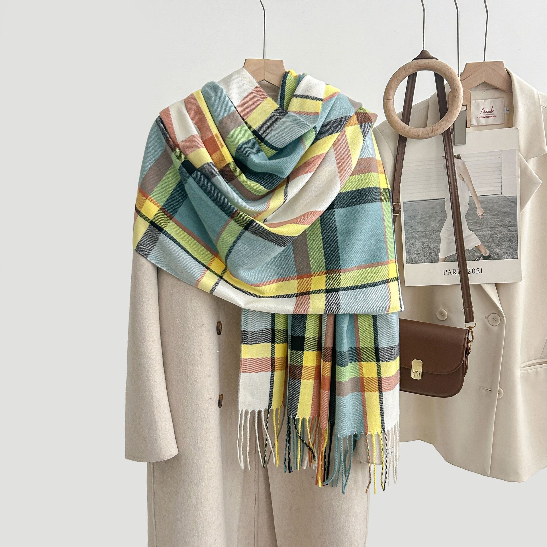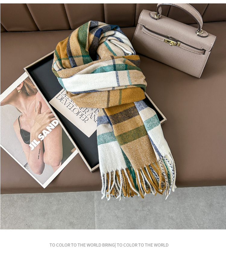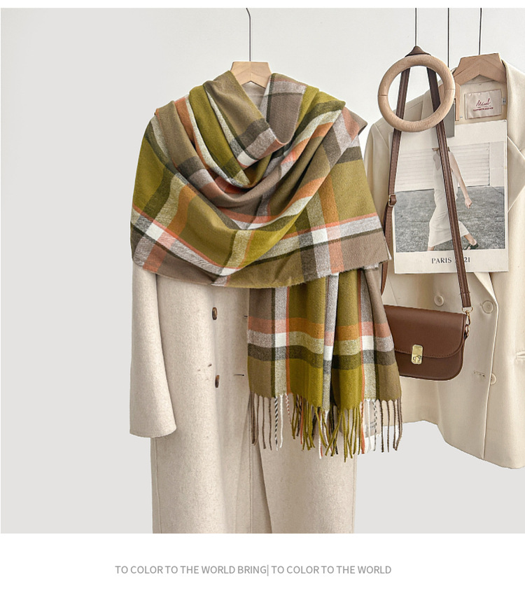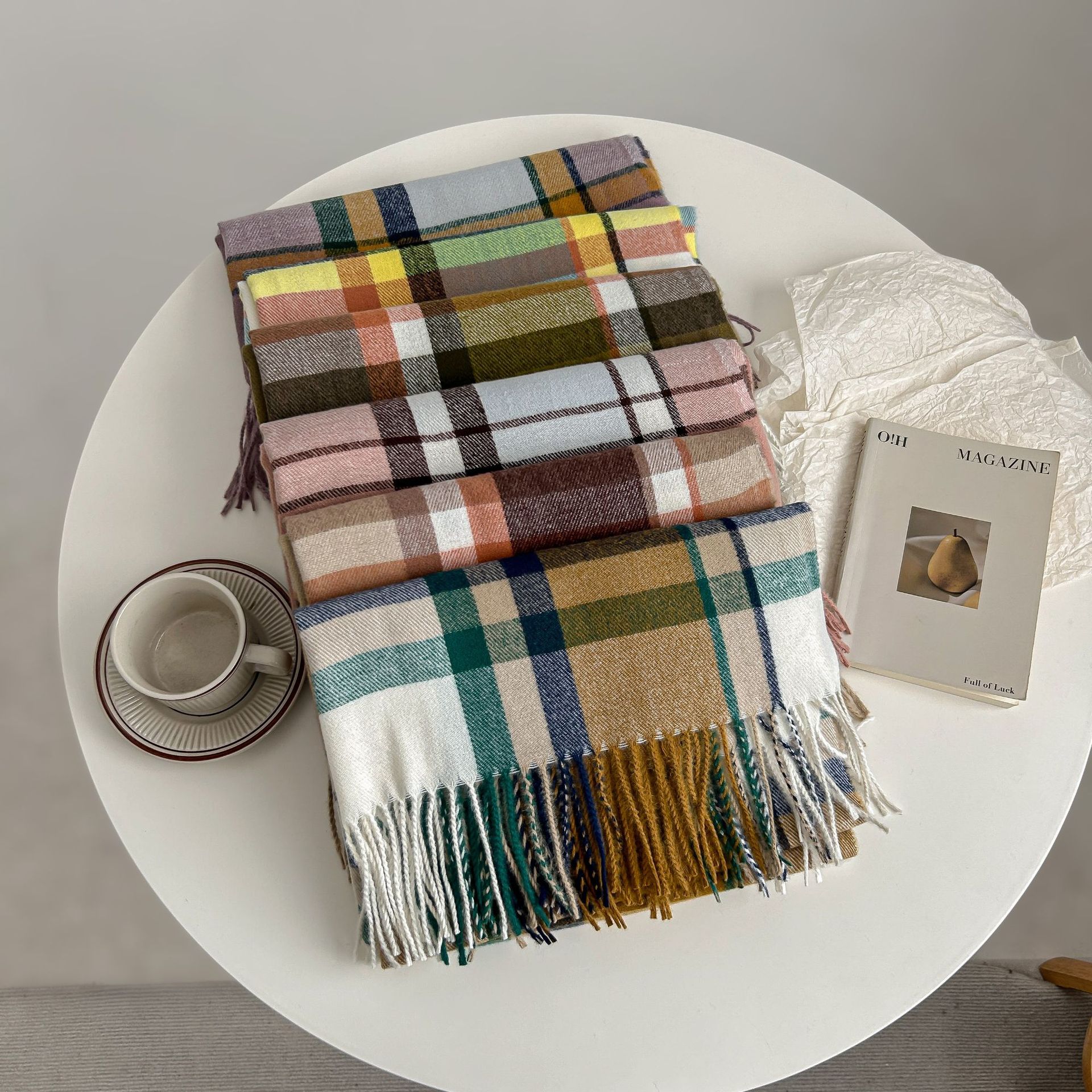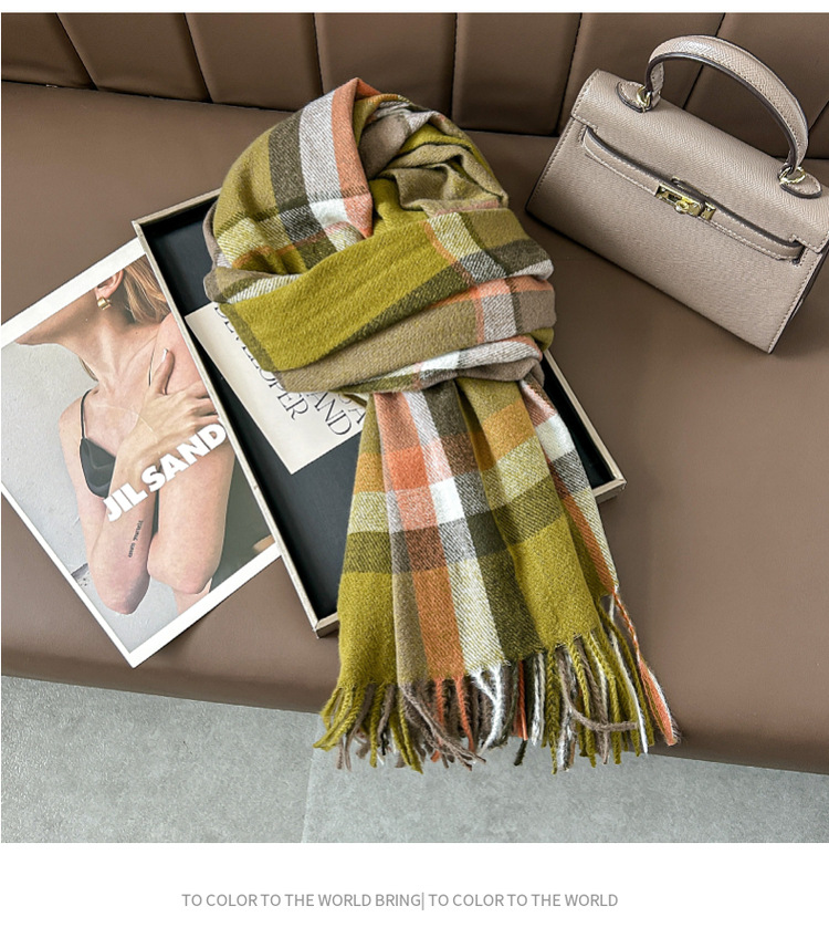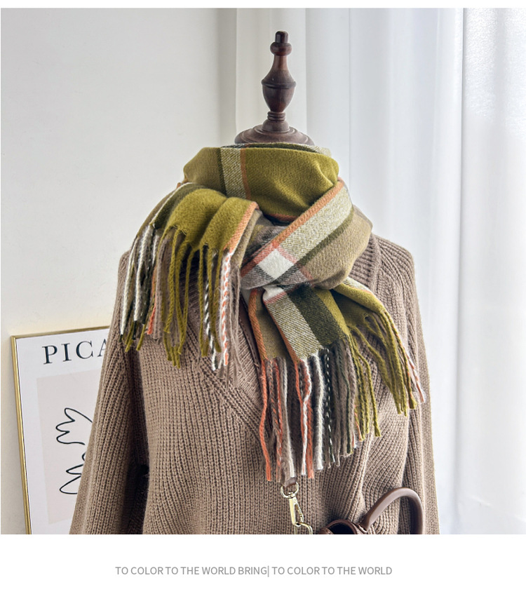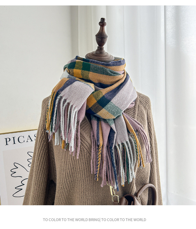 围巾女冬季2024新款加厚保暖仿羊绒格子披肩韩版百搭流苏围脖批发