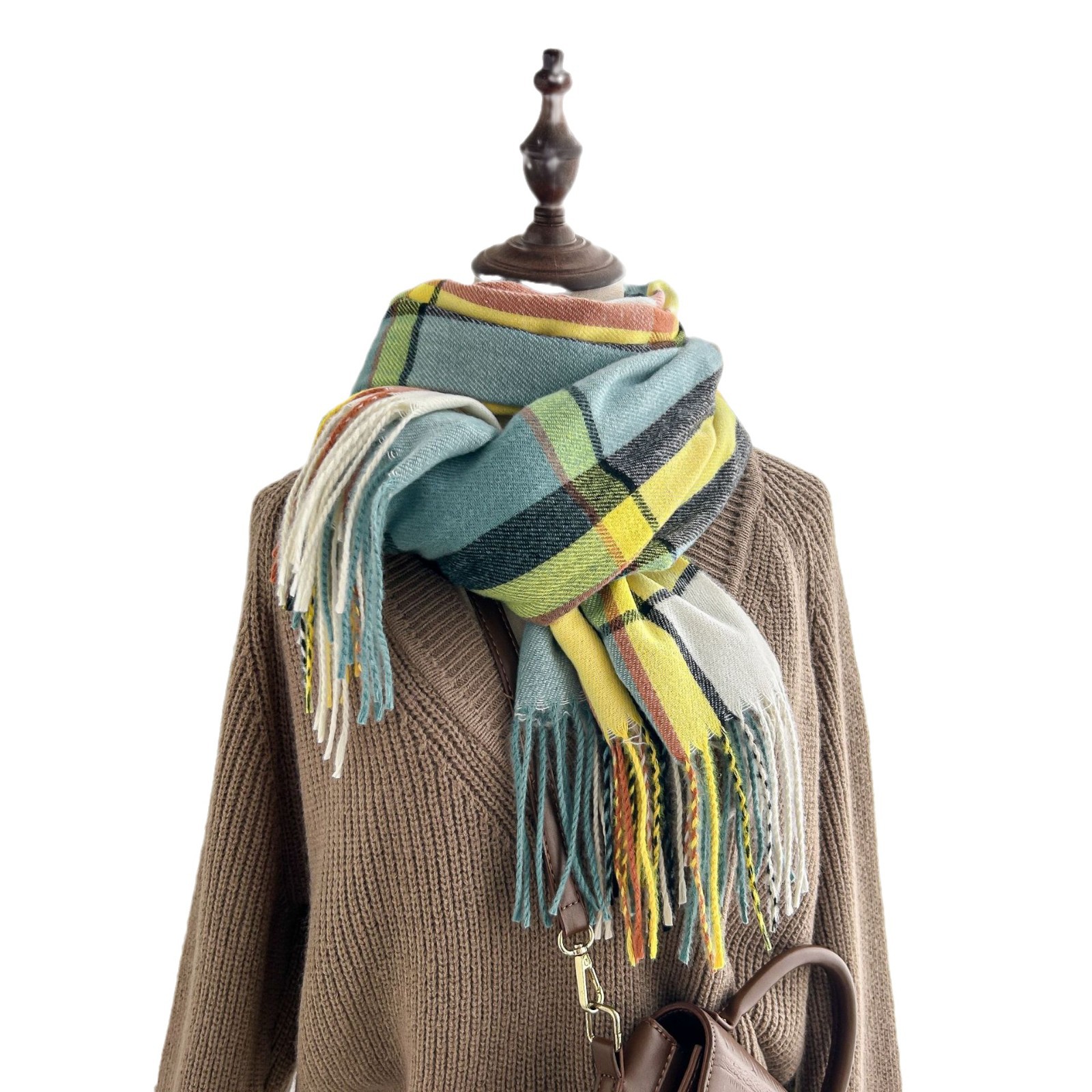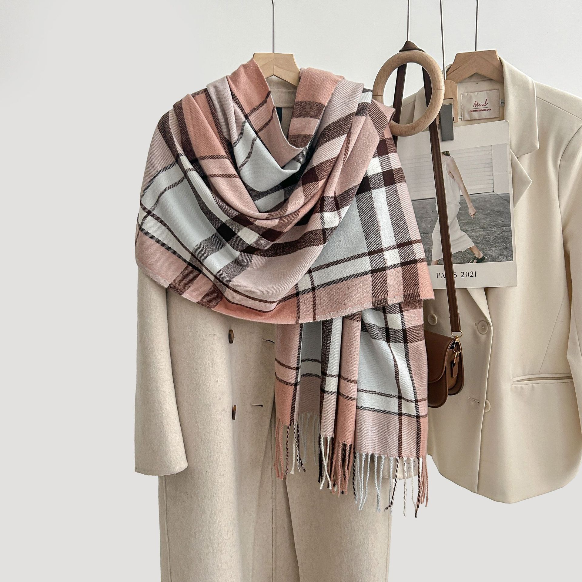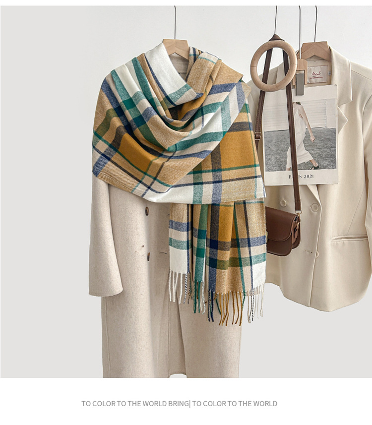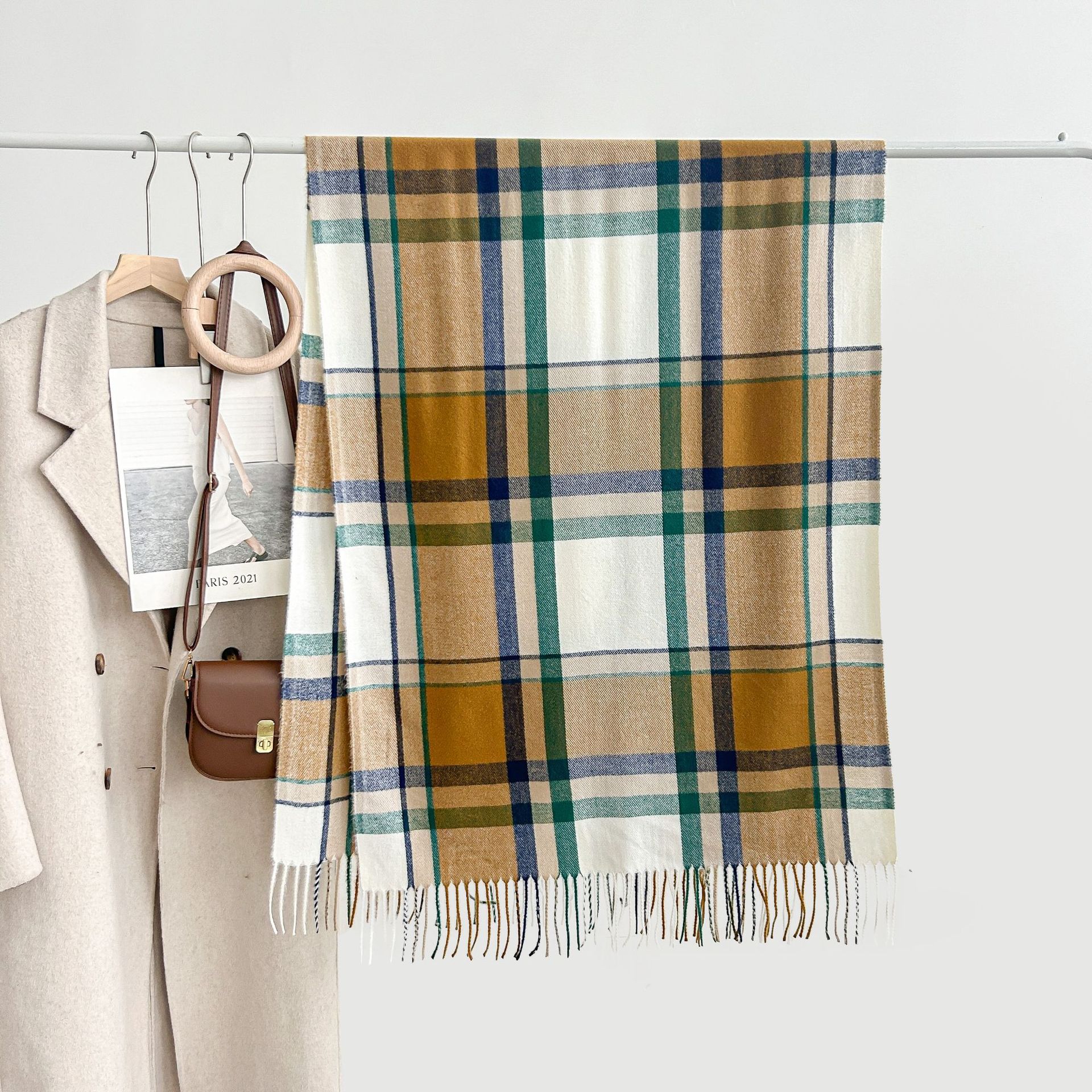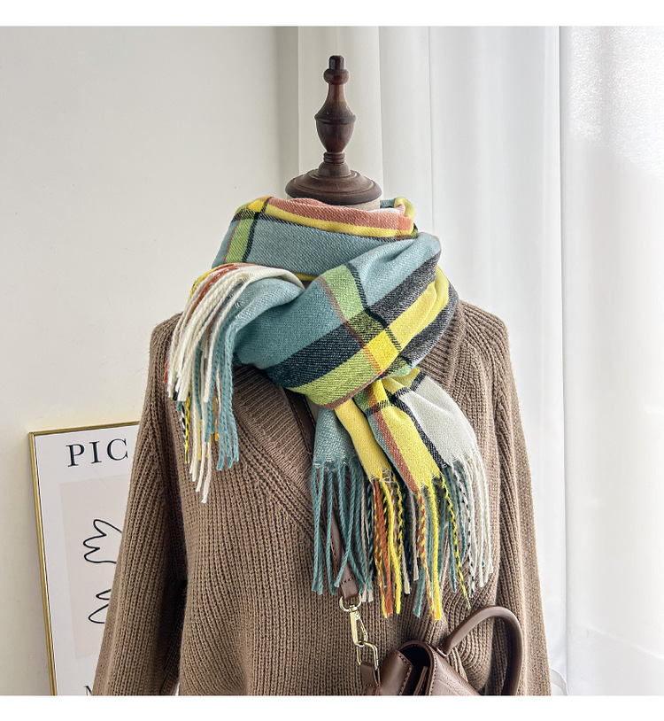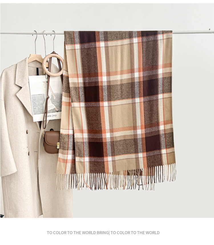 围巾女冬季2024新款加厚保暖仿羊绒格子披肩韩版百搭流苏围脖批发