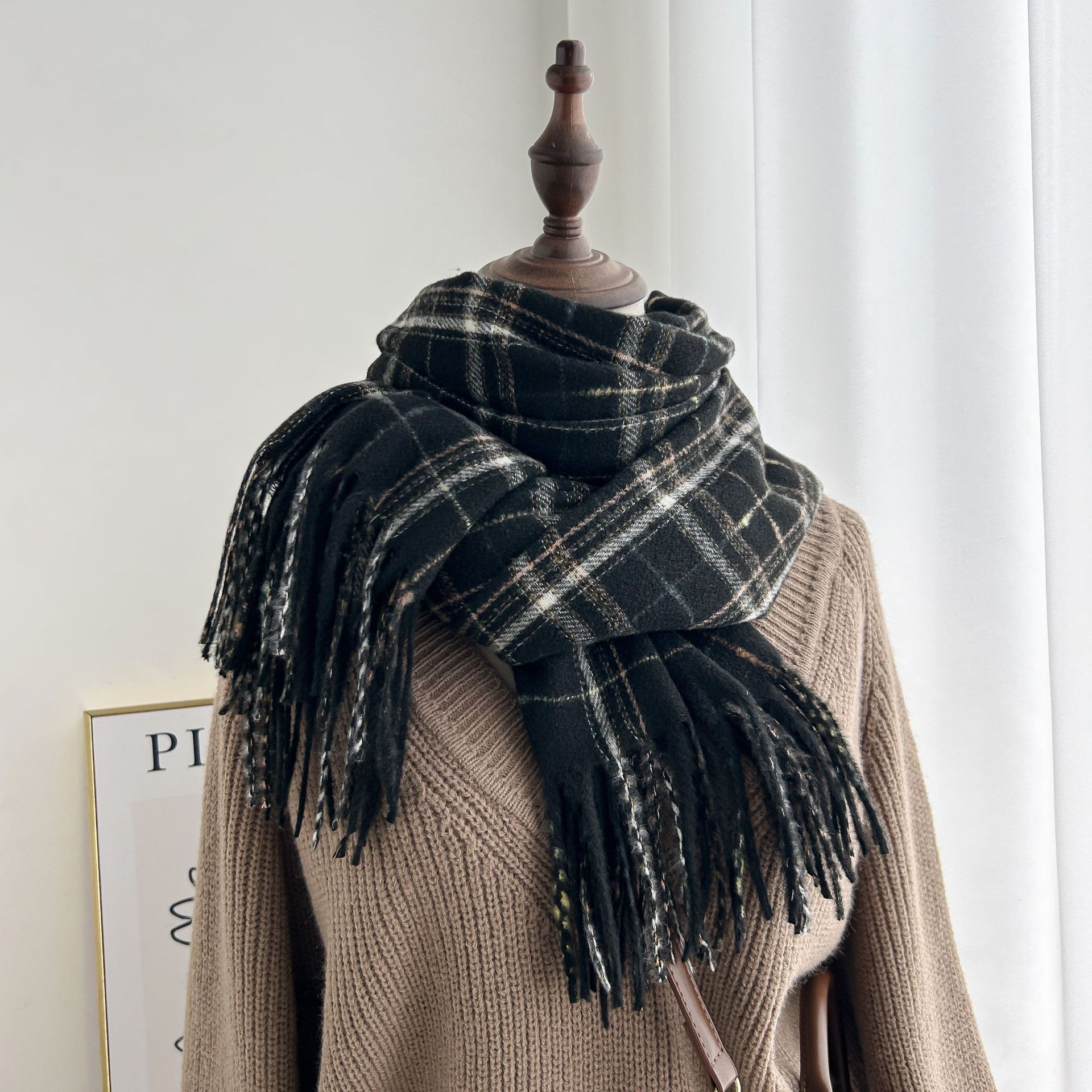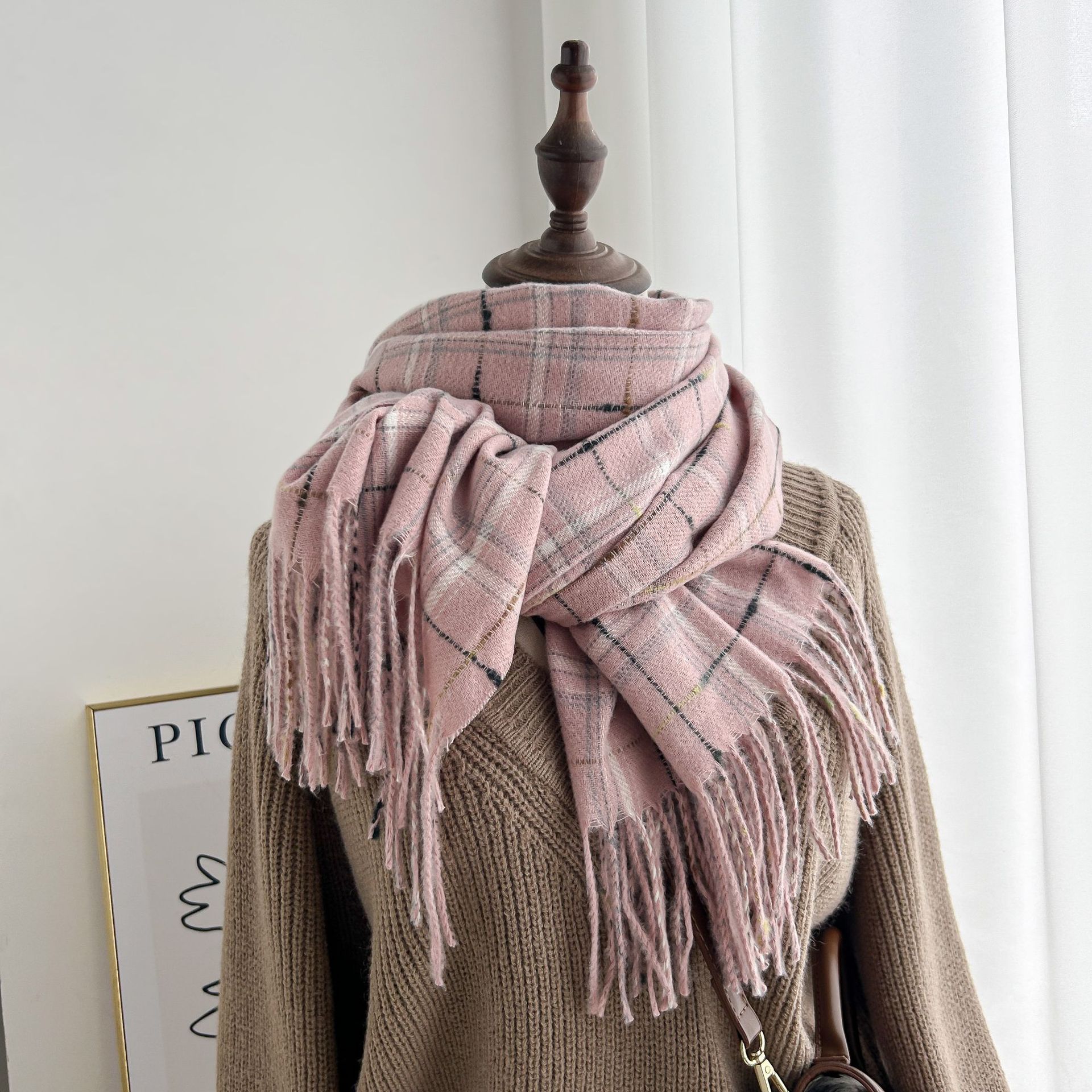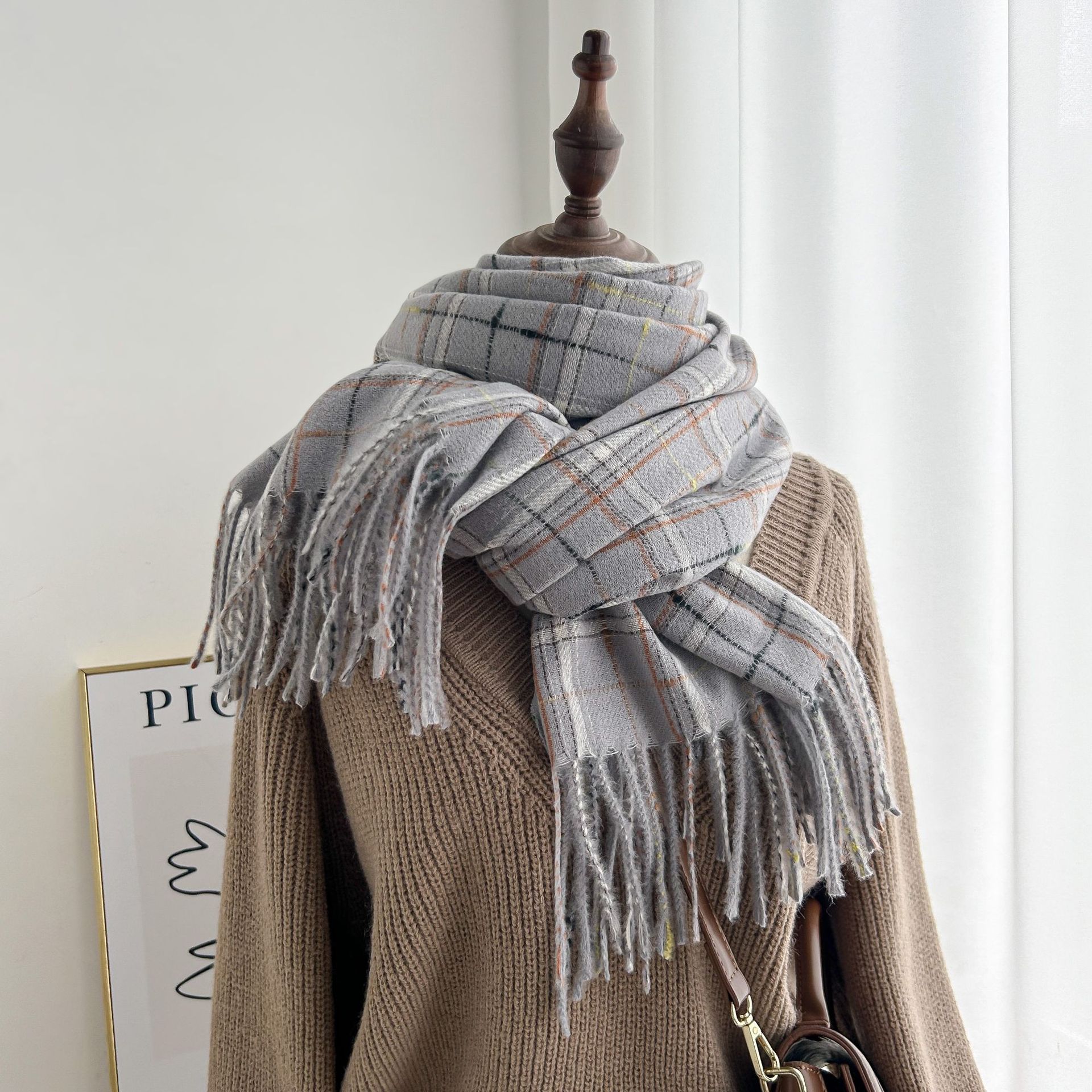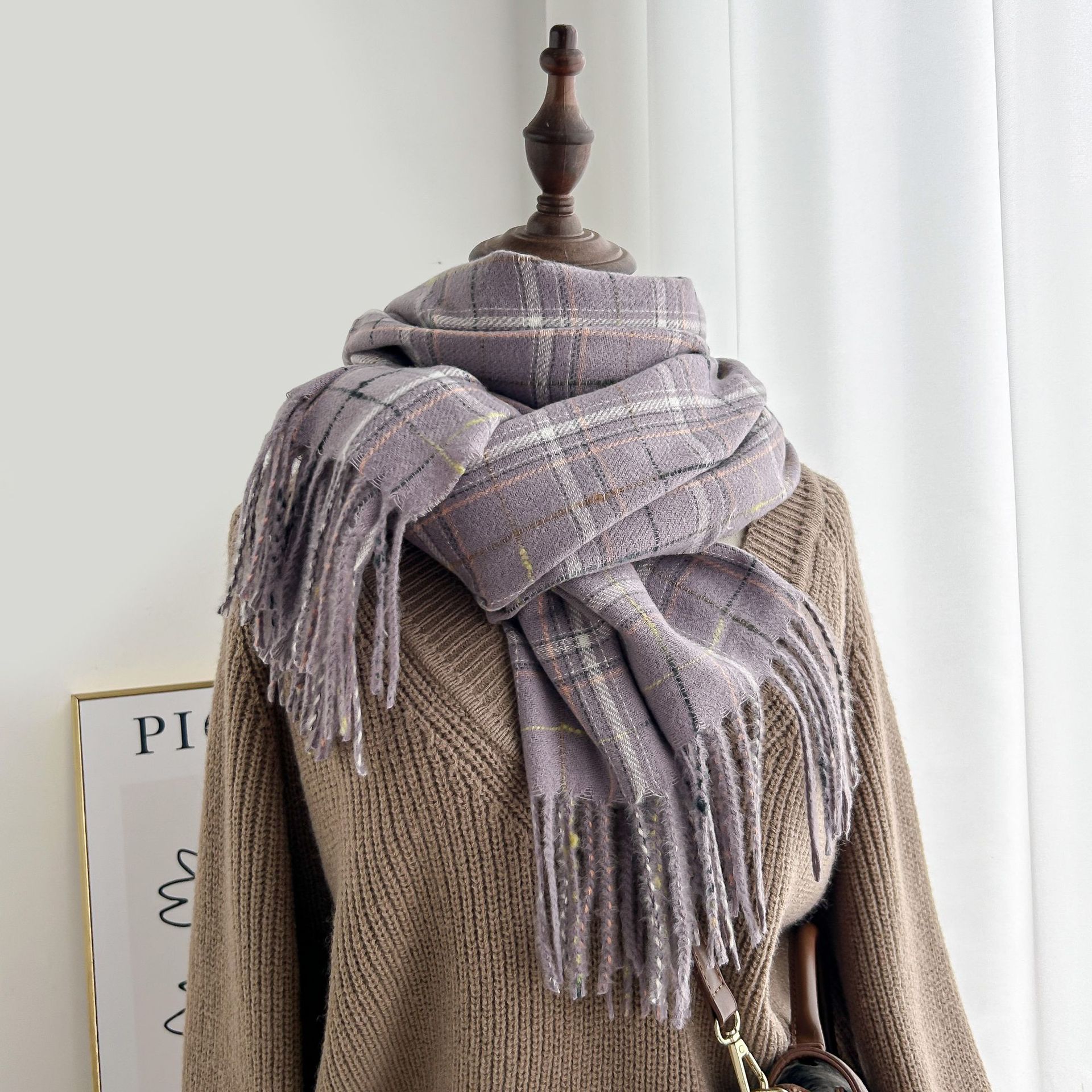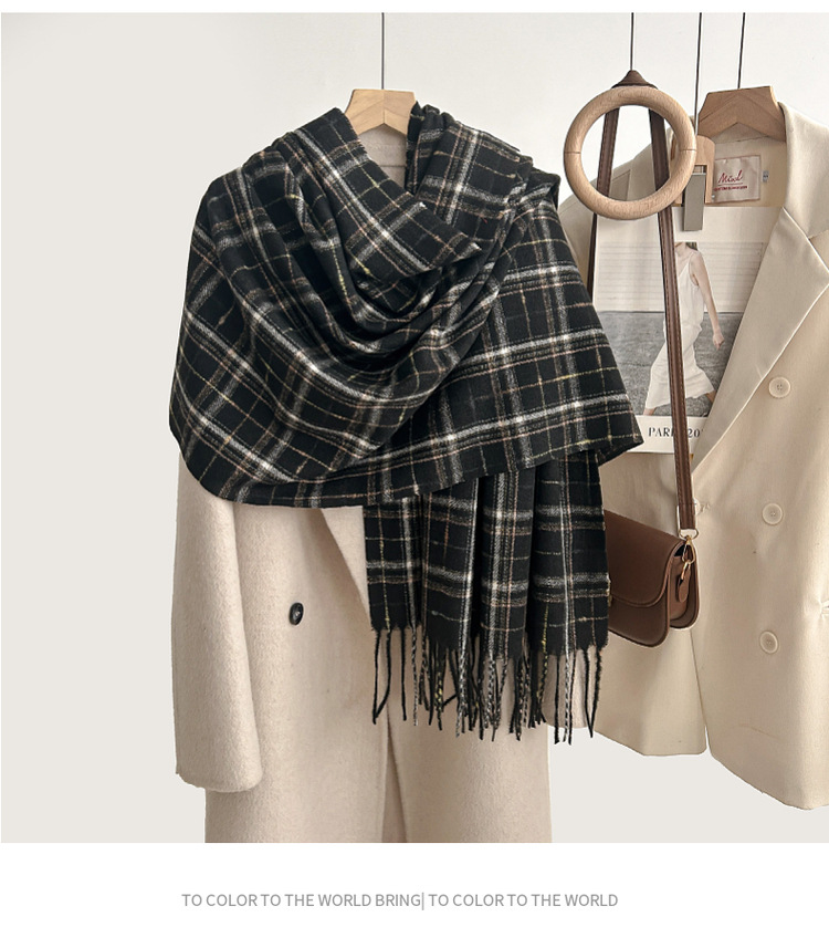 跨境棋盘格子围巾女冬季通勤防寒护颈围脖保暖披肩厂家直销批发