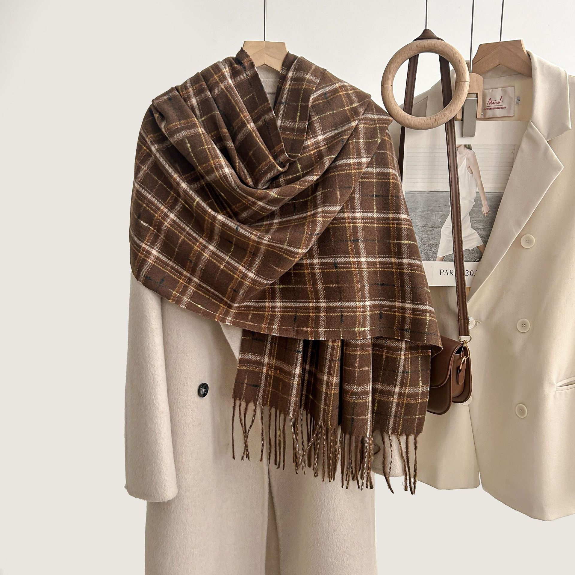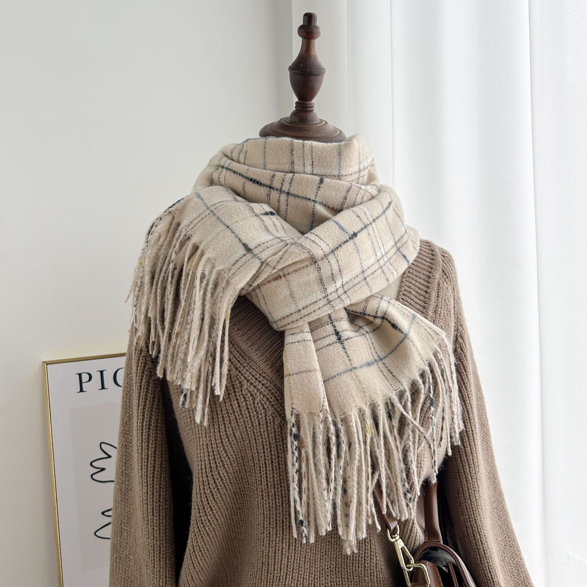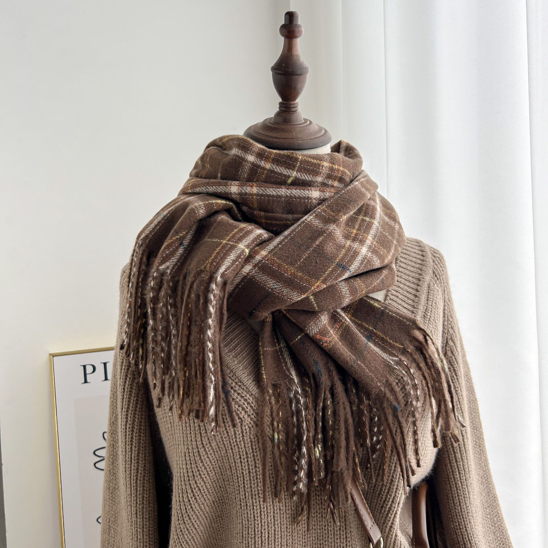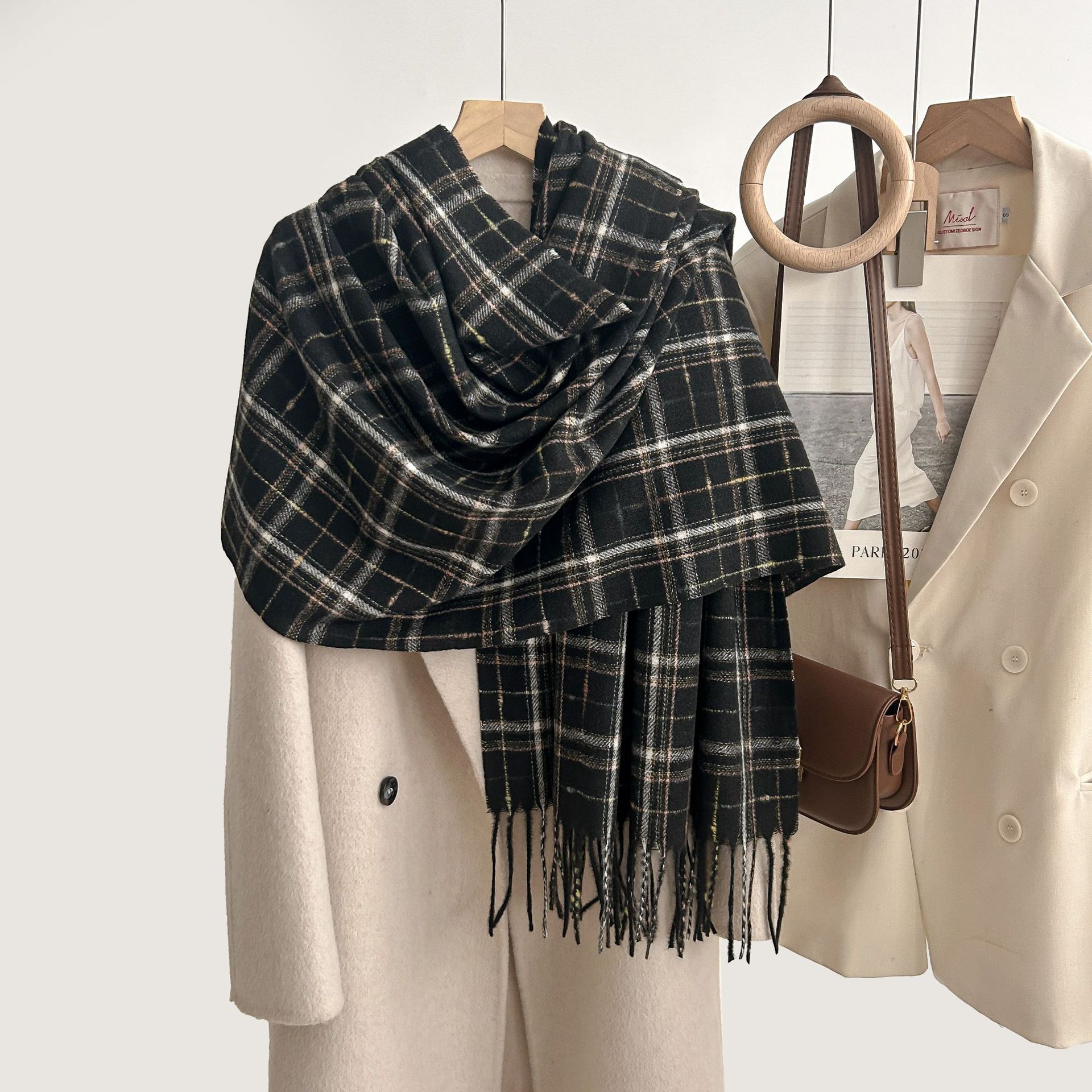 跨境棋盘格子围巾女冬季通勤防寒护颈围脖保暖披肩厂家直销批发