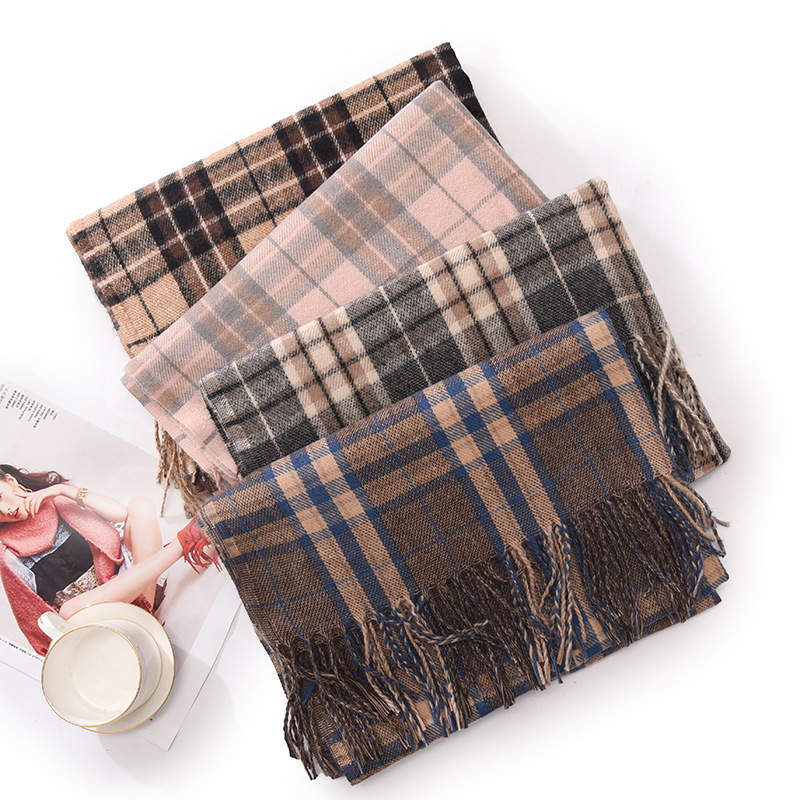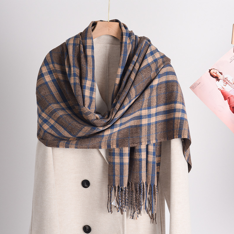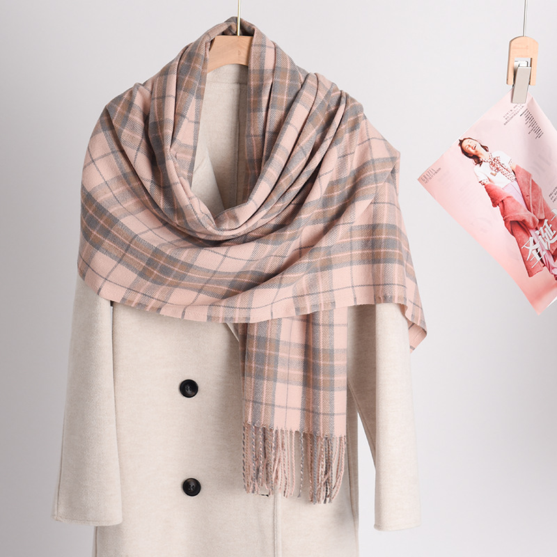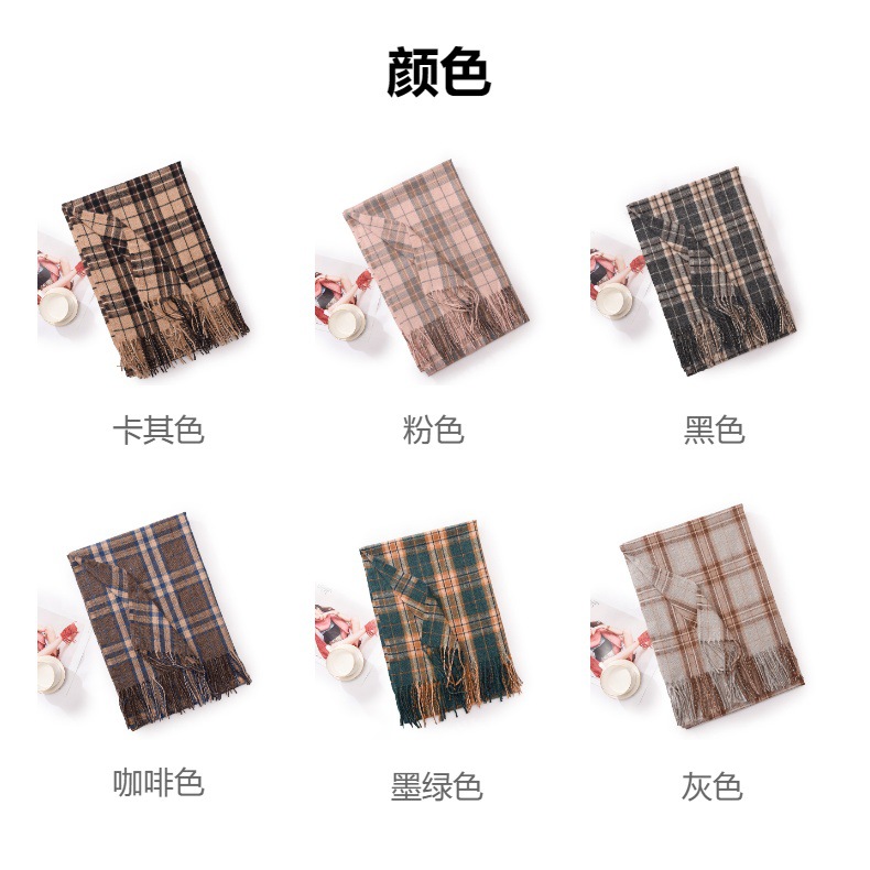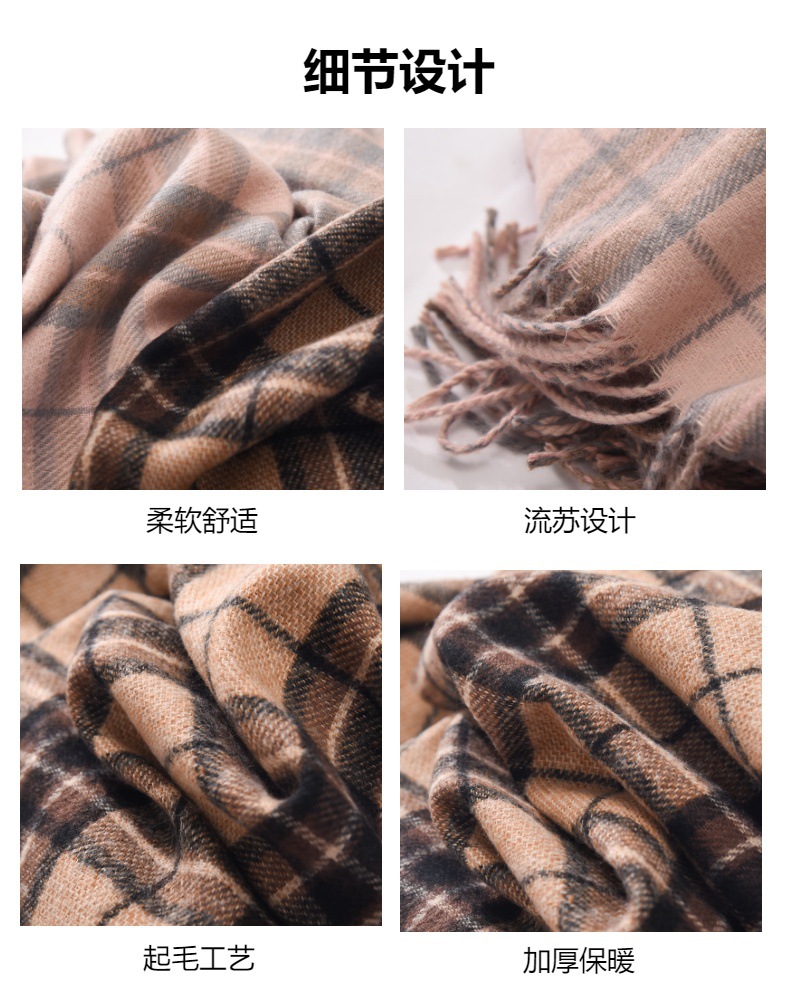 新款仿羊绒围巾女加厚保暖流苏冬季围巾围脖格子围巾披肩高级感