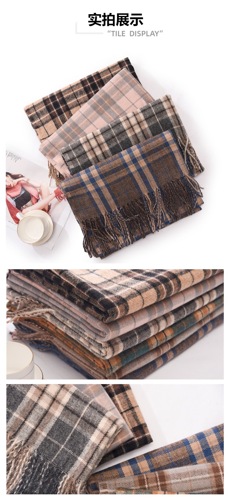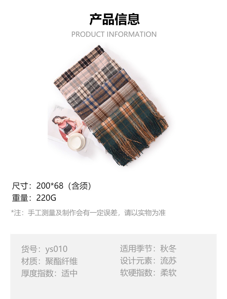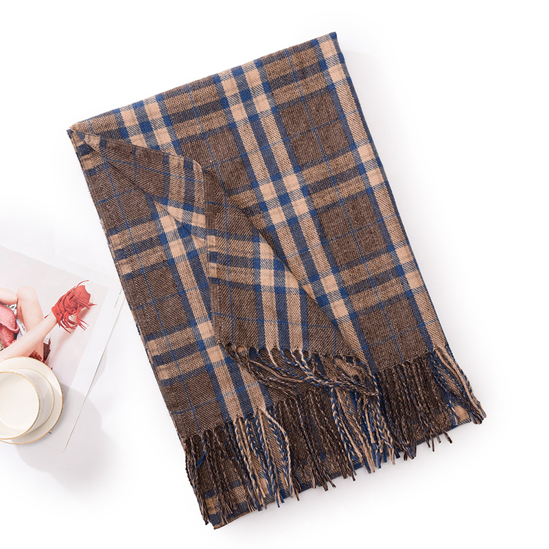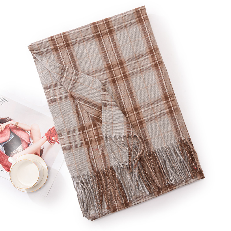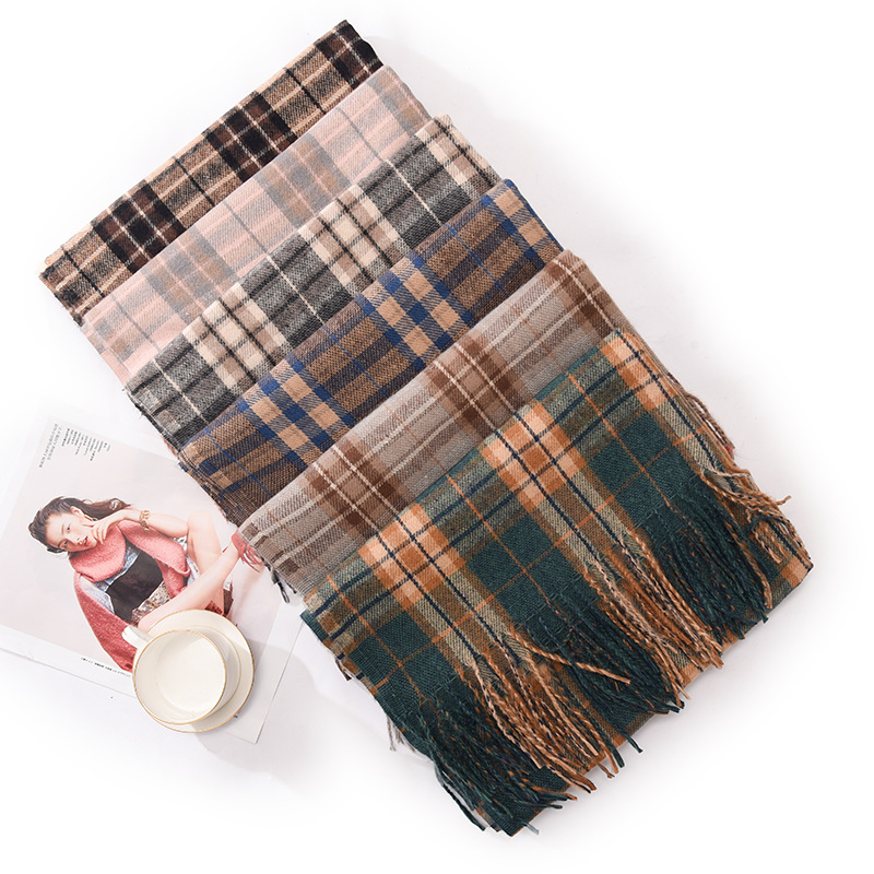 新款仿羊绒围巾女加厚保暖流苏冬季围巾围脖格子围巾披肩高级感