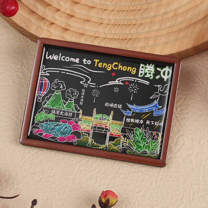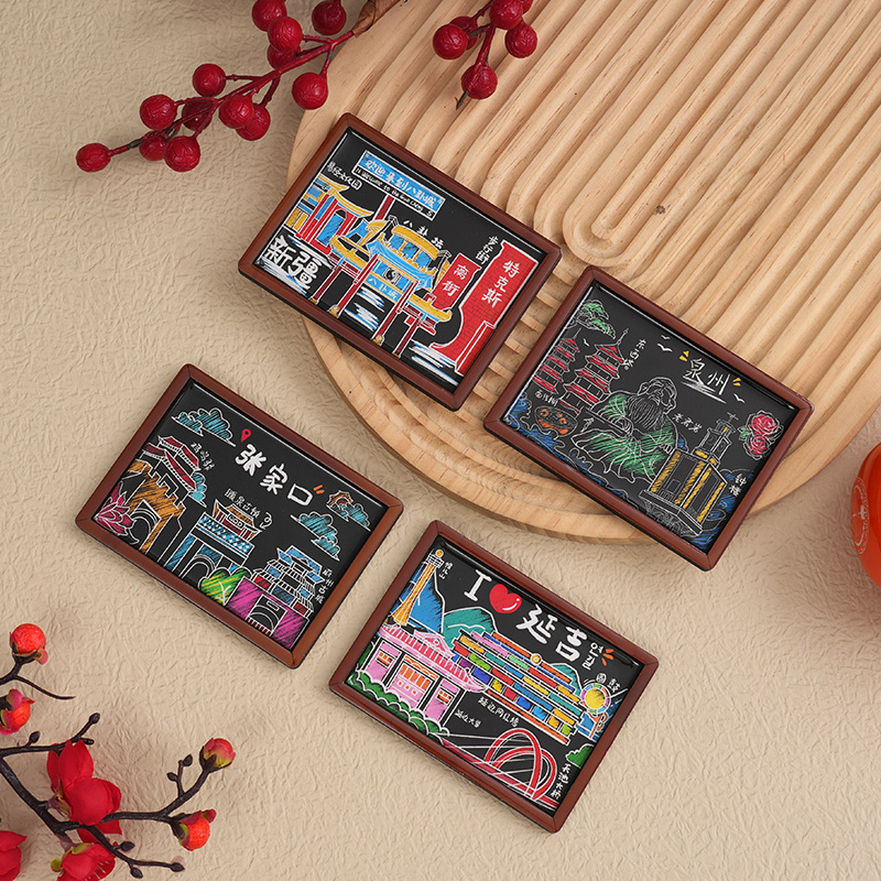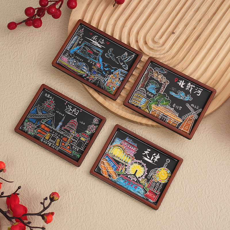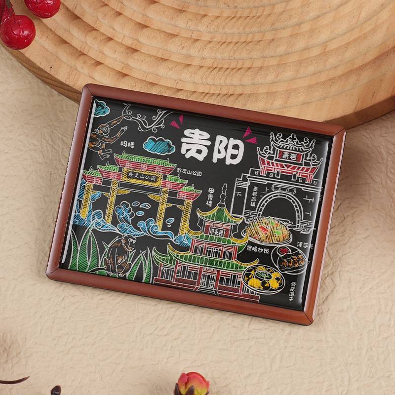 黑板系列木质滴胶冰箱贴文创旅游城市创意礼品木质磁性工艺品批发