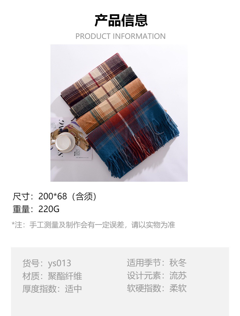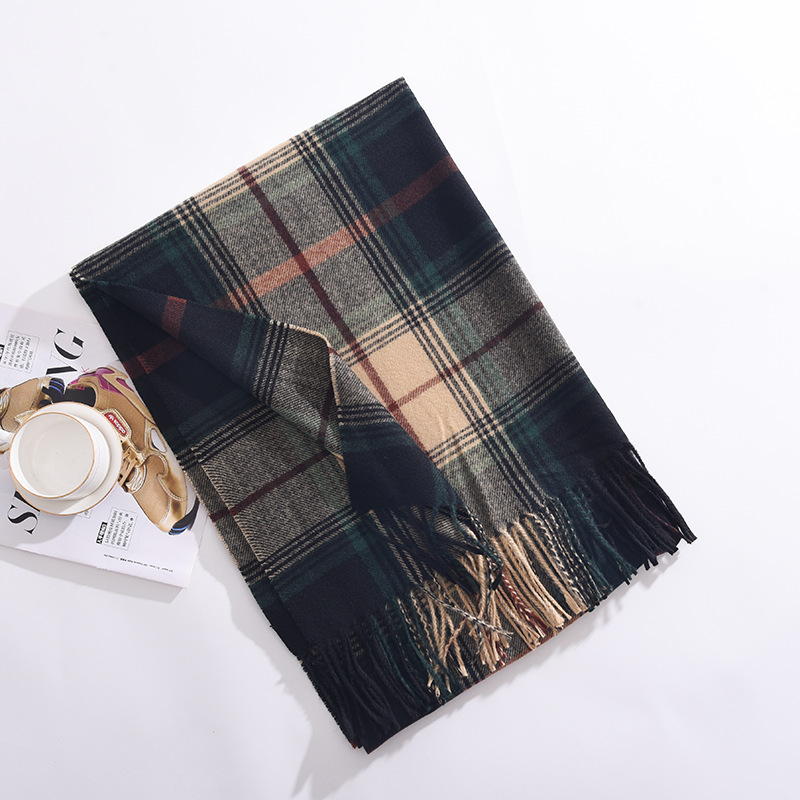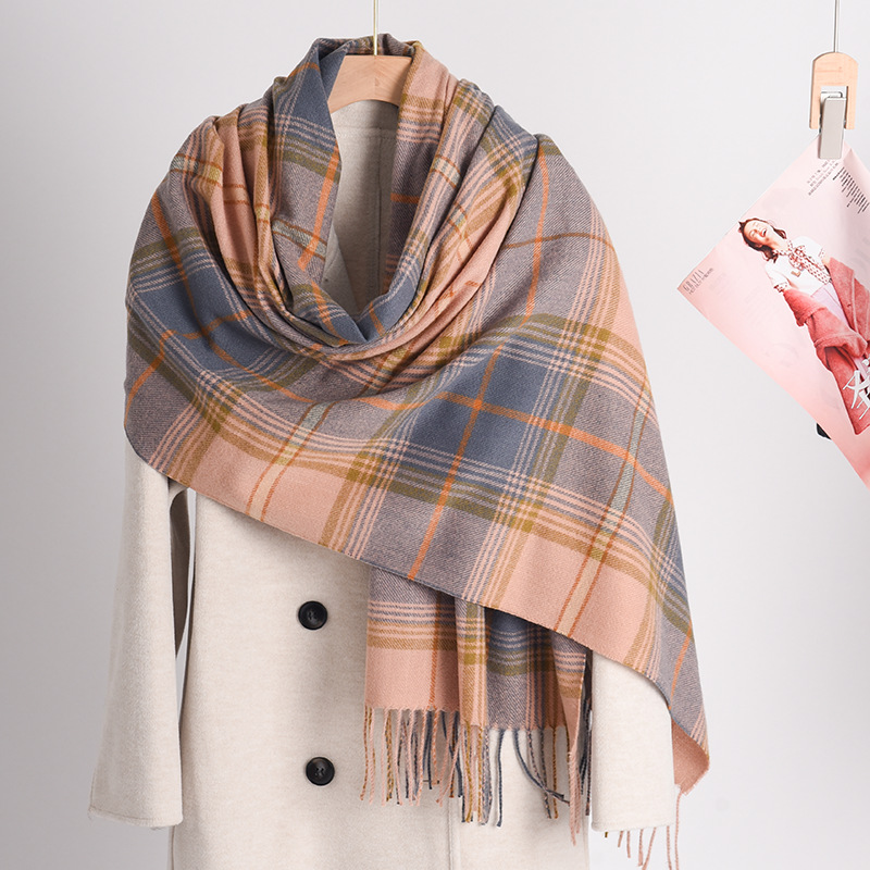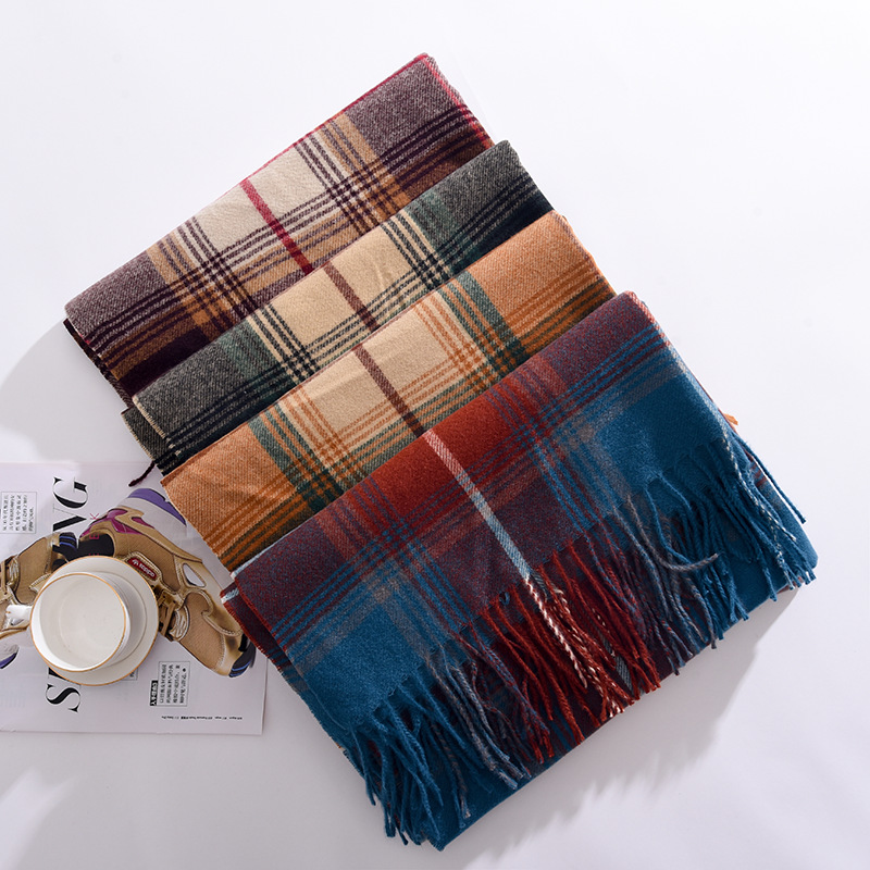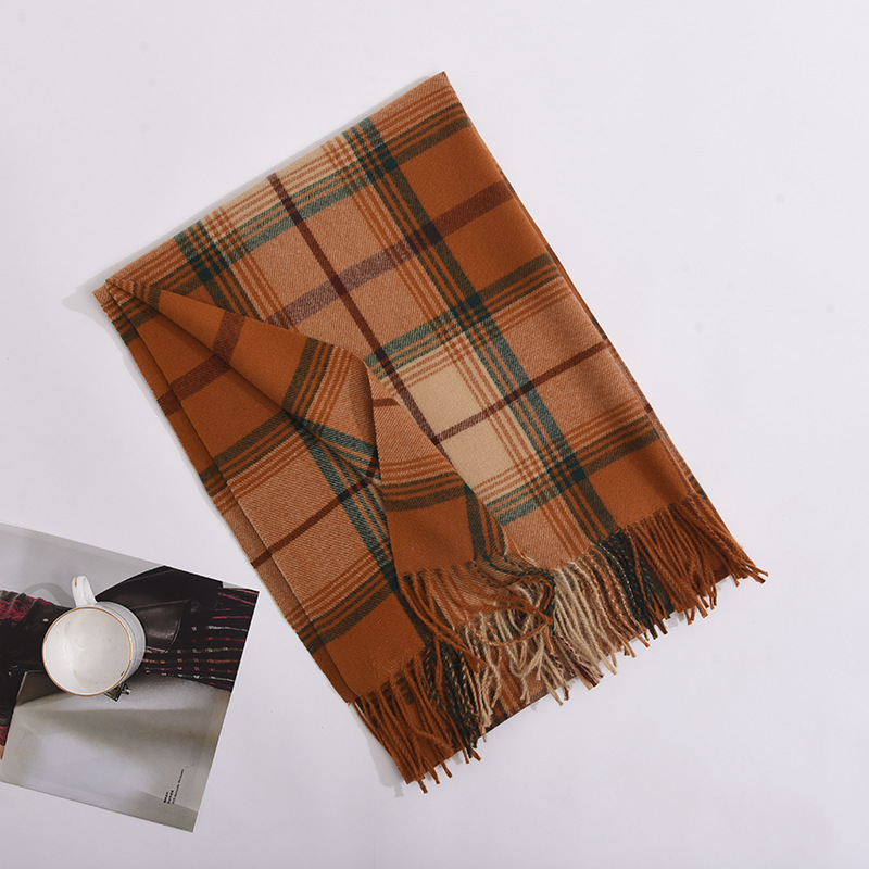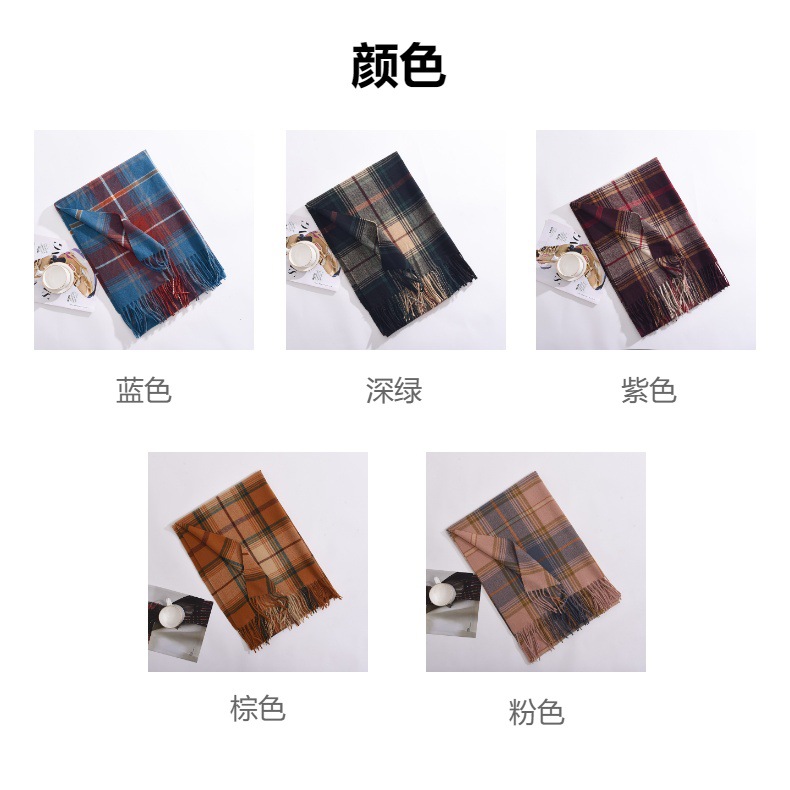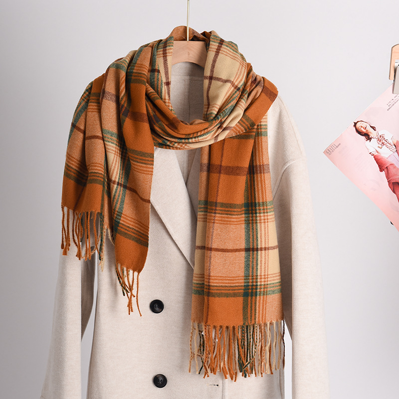 2023新款仿羊绒围巾女时尚通勤保暖百搭格子围巾围脖优雅披肩外搭