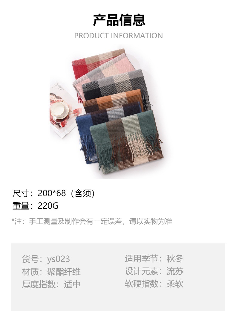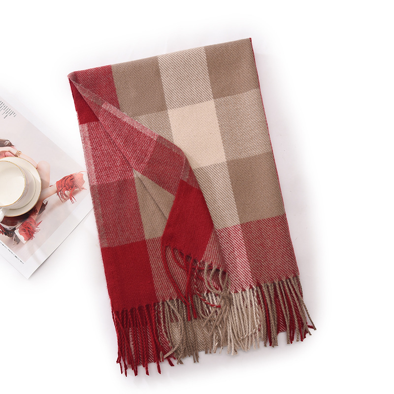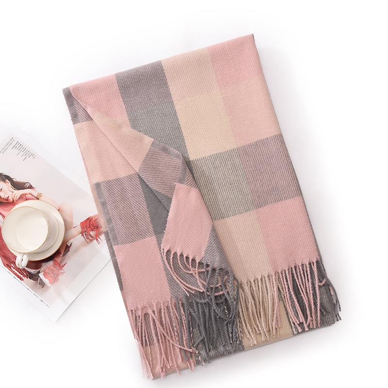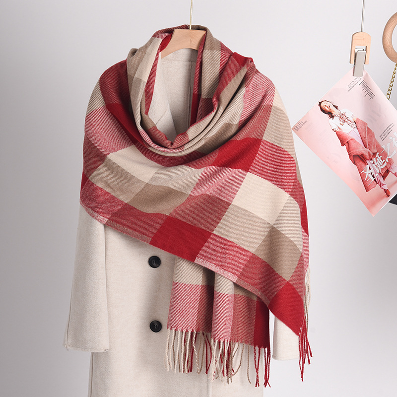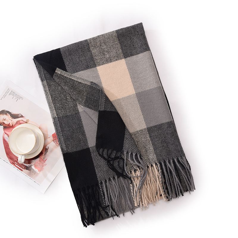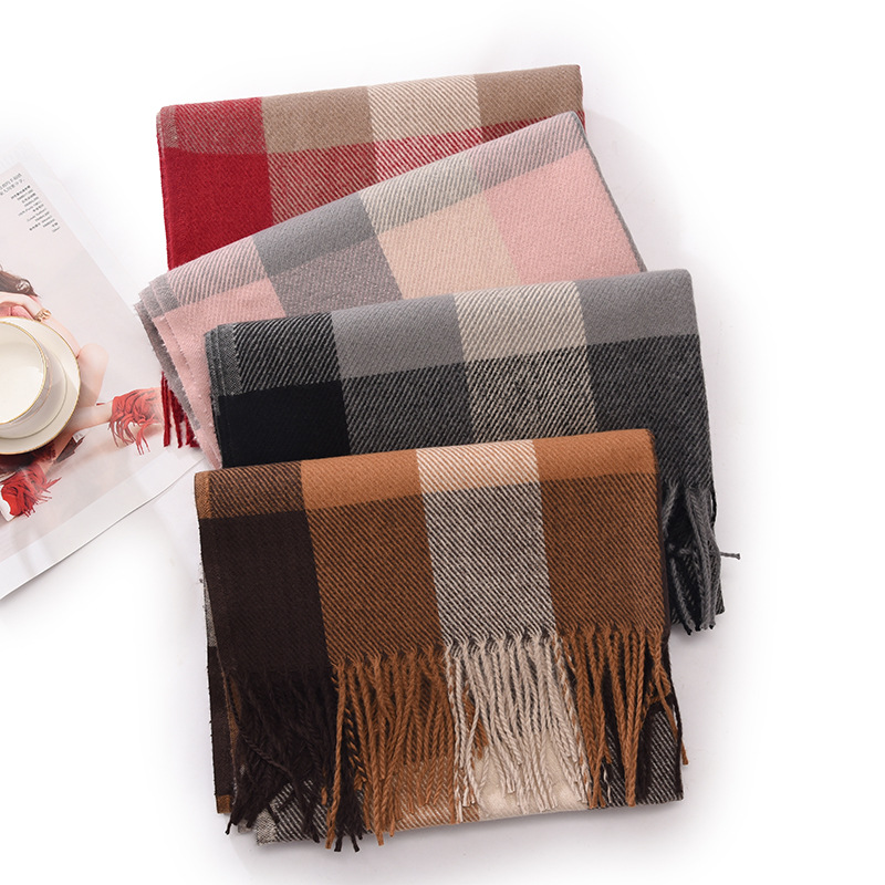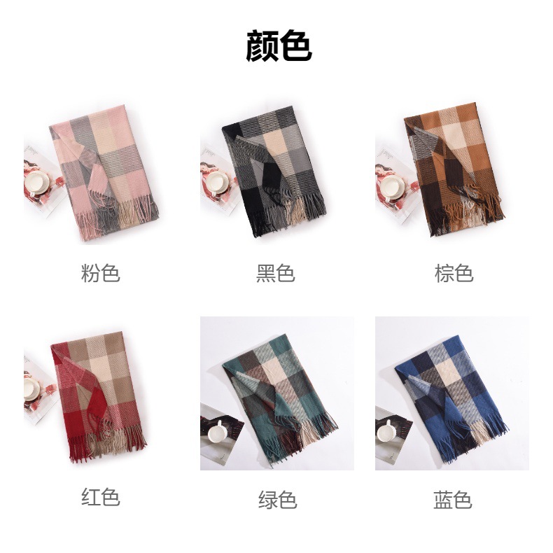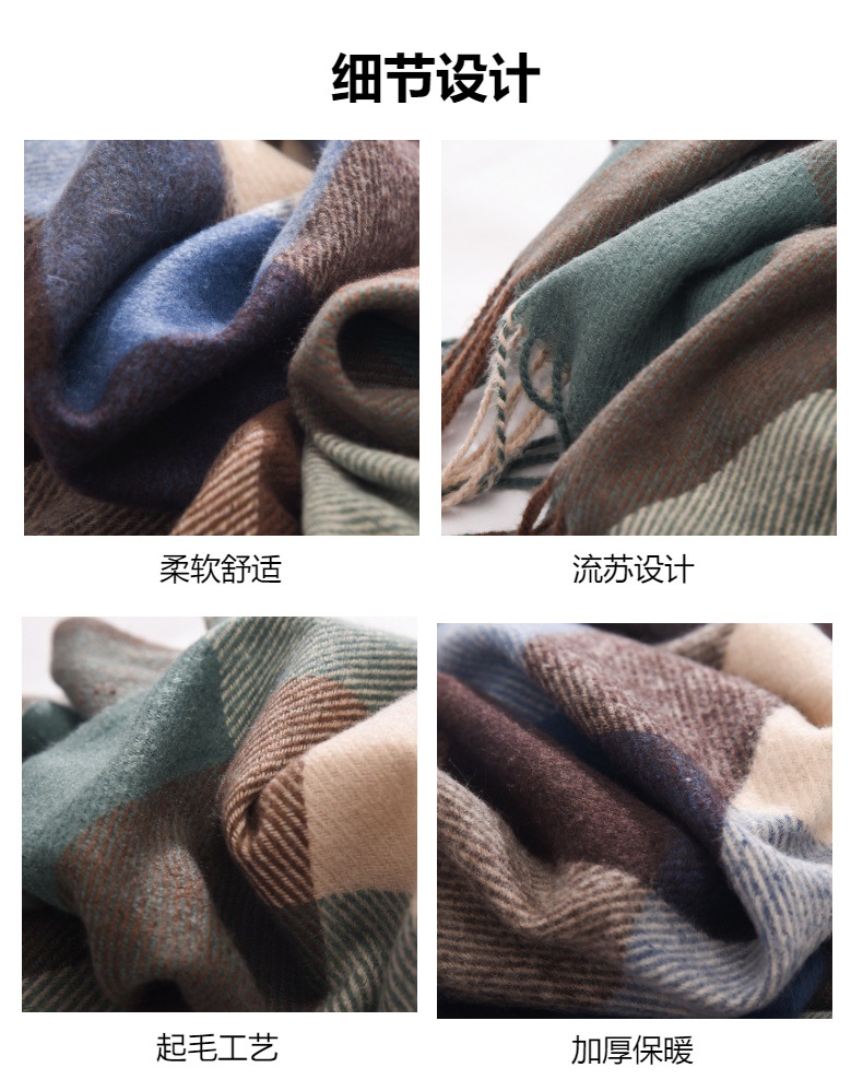 新款仿羊绒围巾女高级感保暖围脖披肩秋冬格子围巾冬天爆款批发
