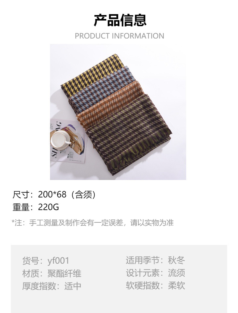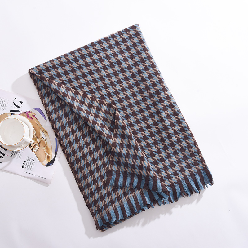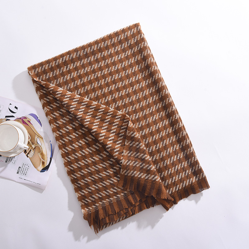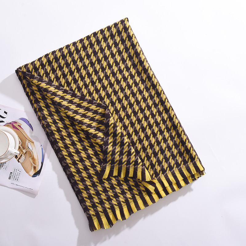 冬季新款彩色千鸟格围巾围脖披肩百搭时尚通勤仿羊绒围巾女高级感