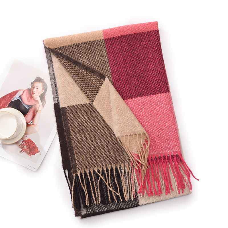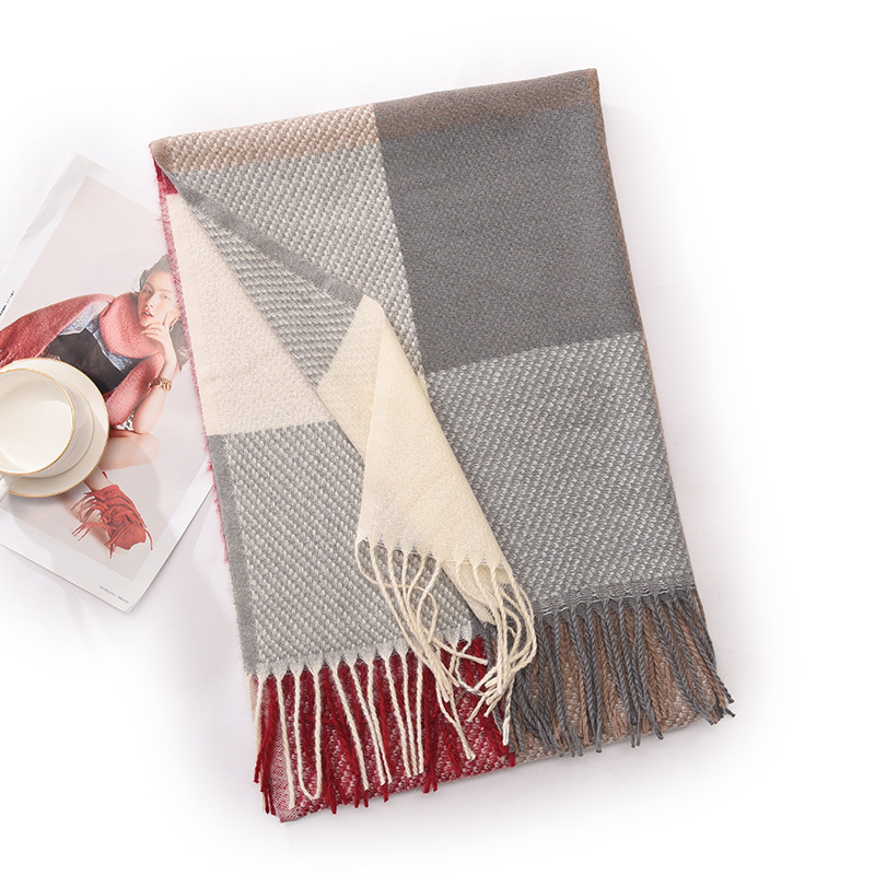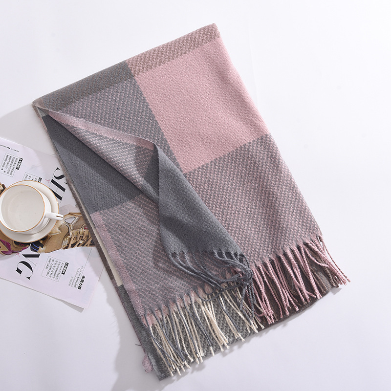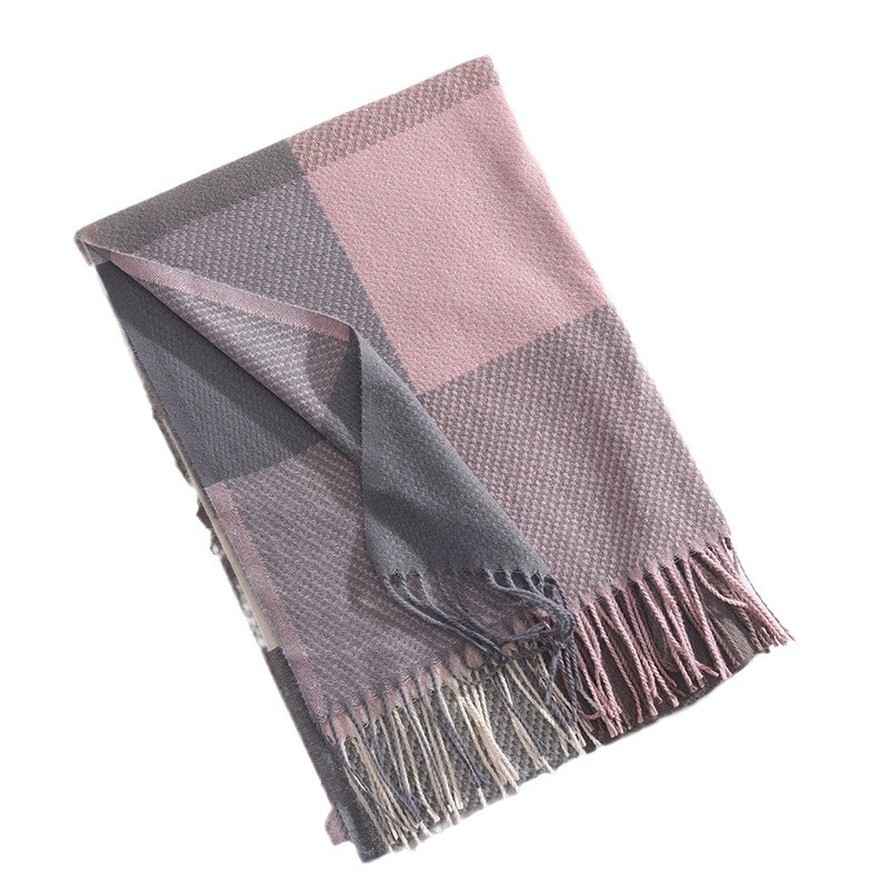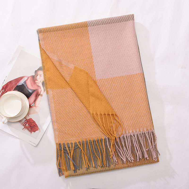 格子围巾女新款流苏围脖披肩仿羊绒围巾秋冬季外搭四方格围巾跨境