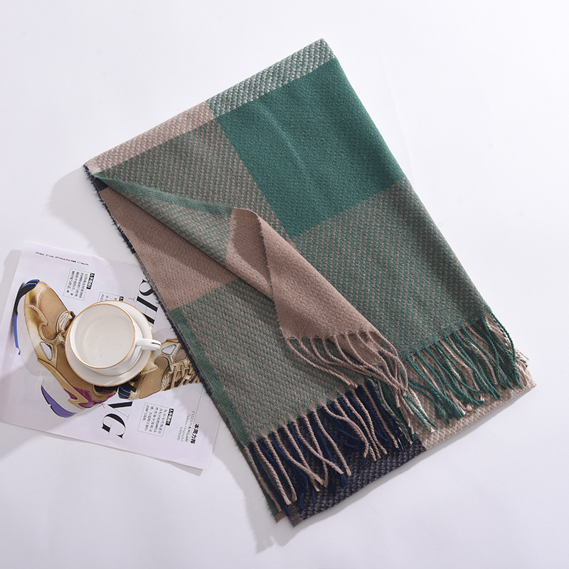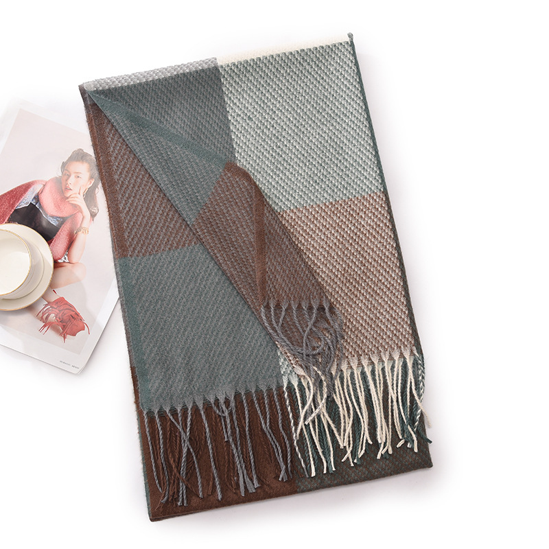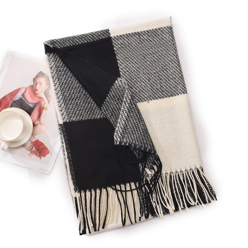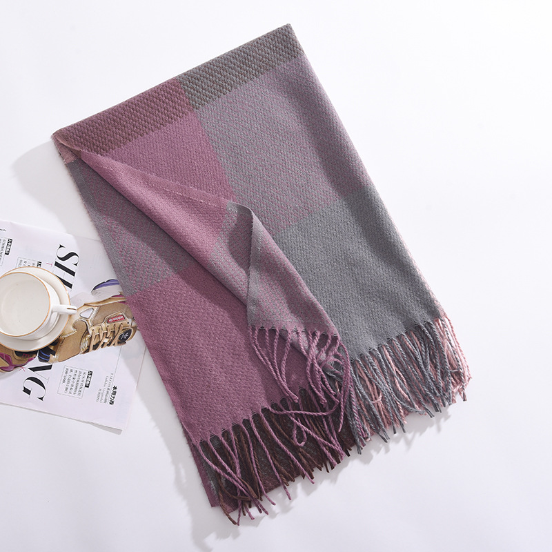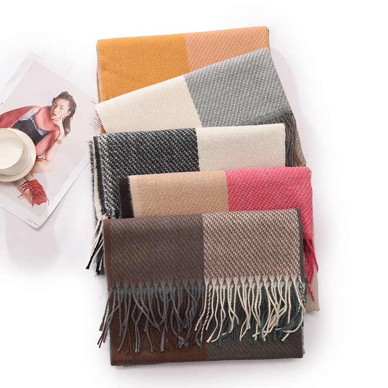 格子围巾女新款流苏围脖披肩仿羊绒围巾秋冬季外搭四方格围巾跨境