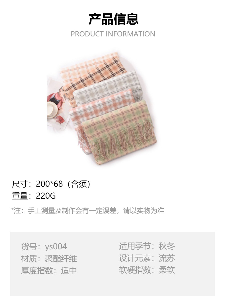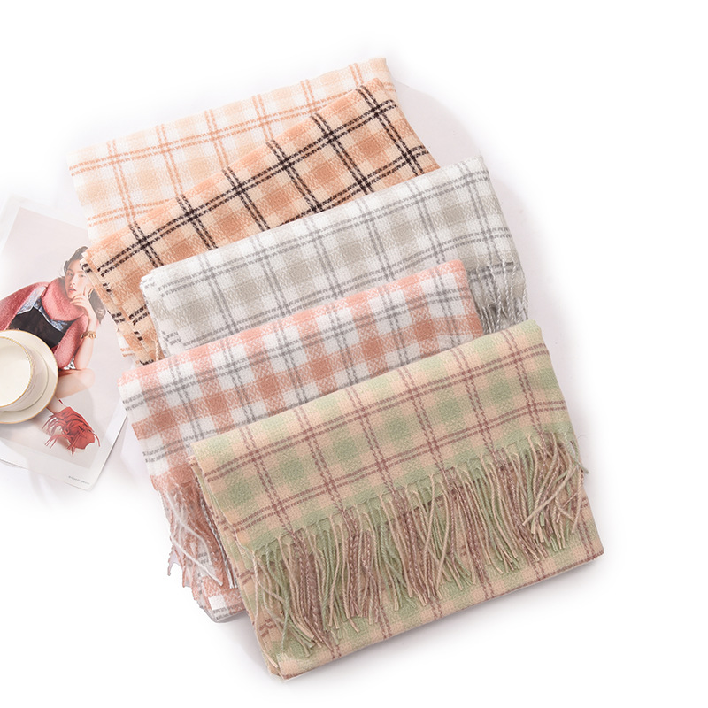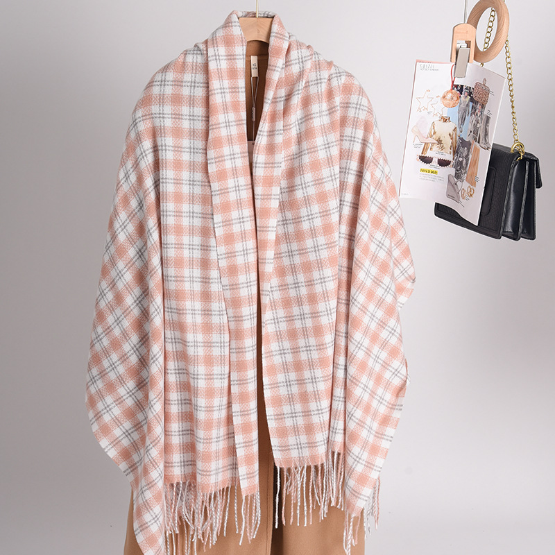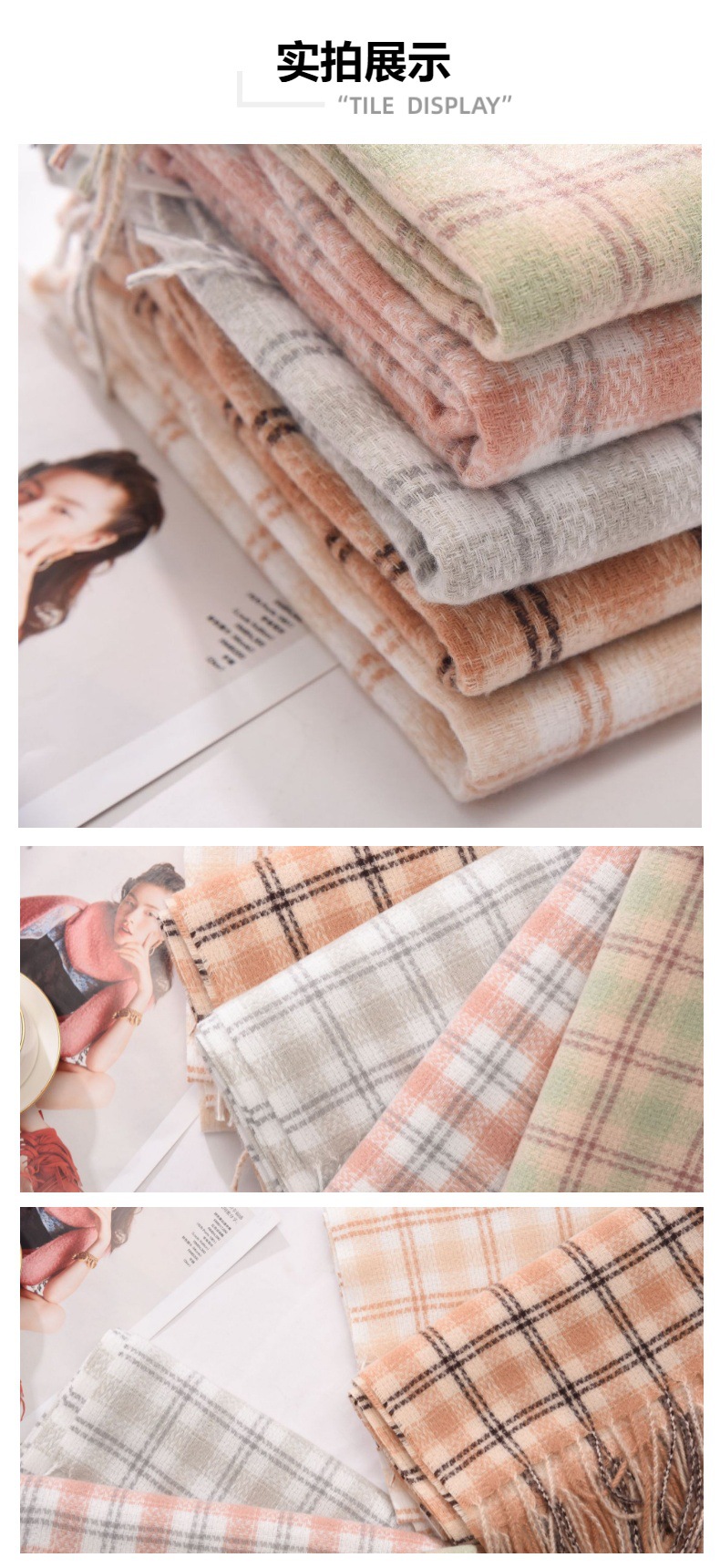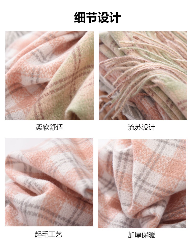 冬季新款保暖仿羊绒围巾女百搭秋冬披肩格子围巾新款流苏格纹围脖