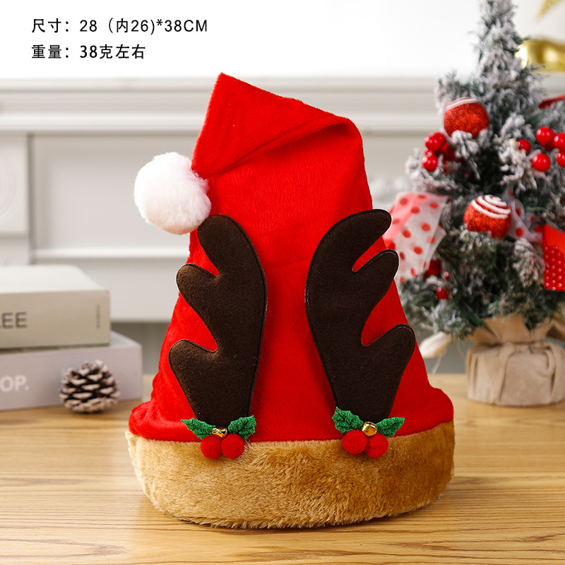 【产品名称】跨境热卖圣诞节装饰品大红无纺布圣诞帽拉绒长毛绒卡通圣诞礼物
