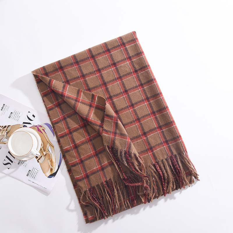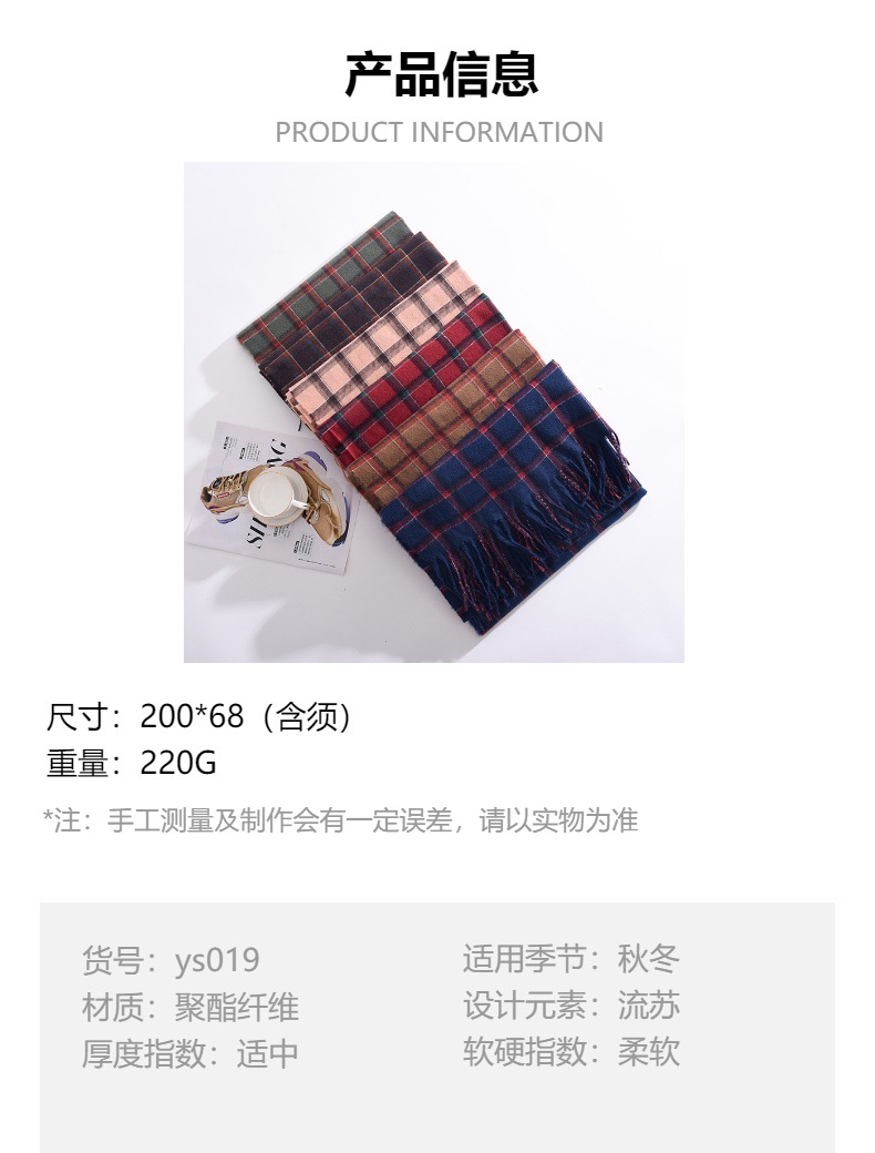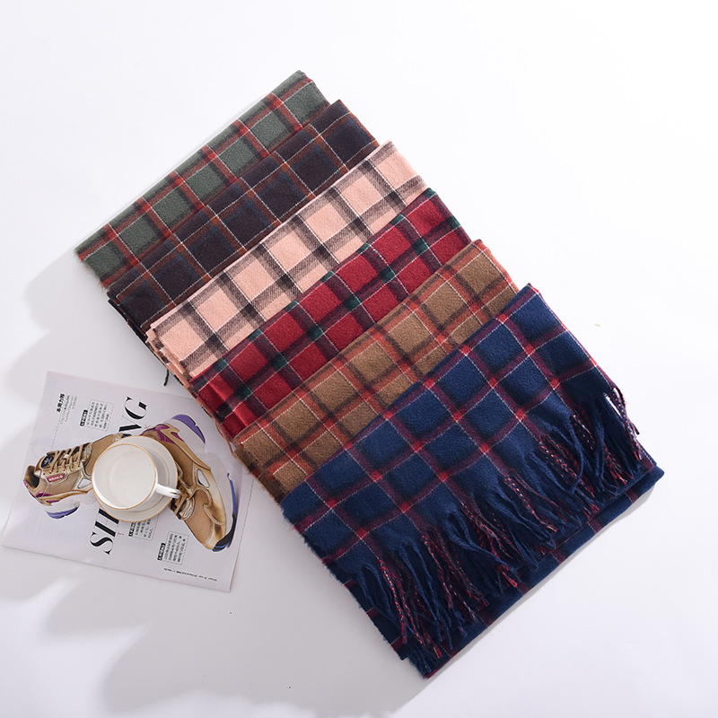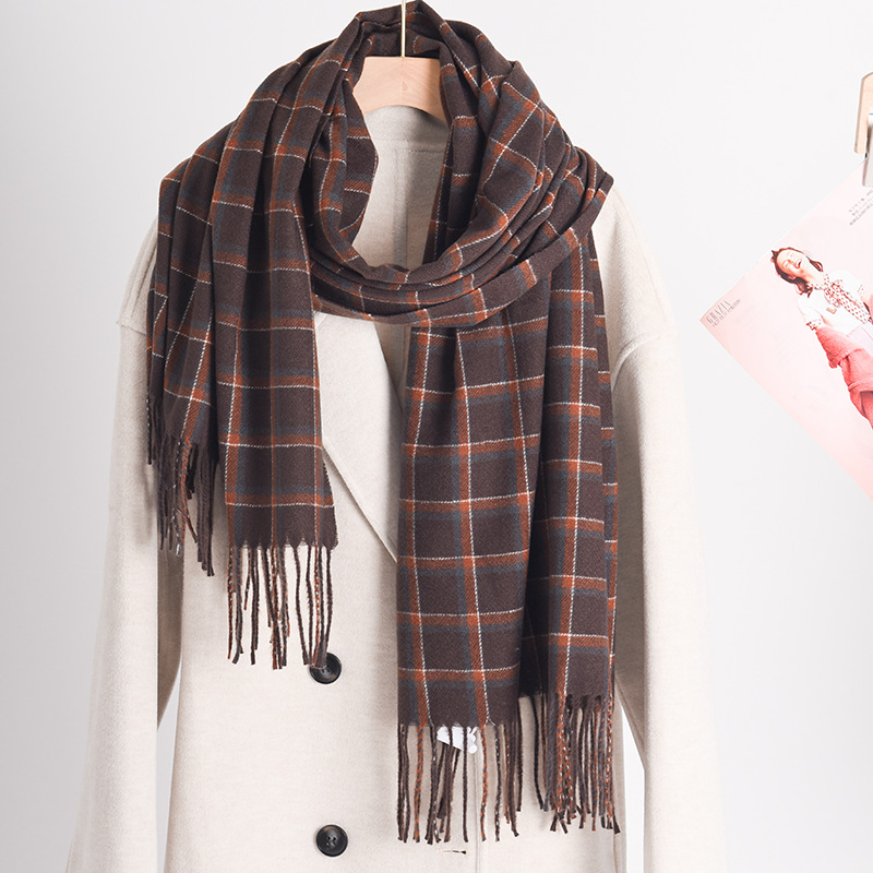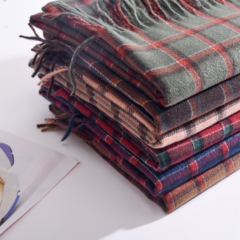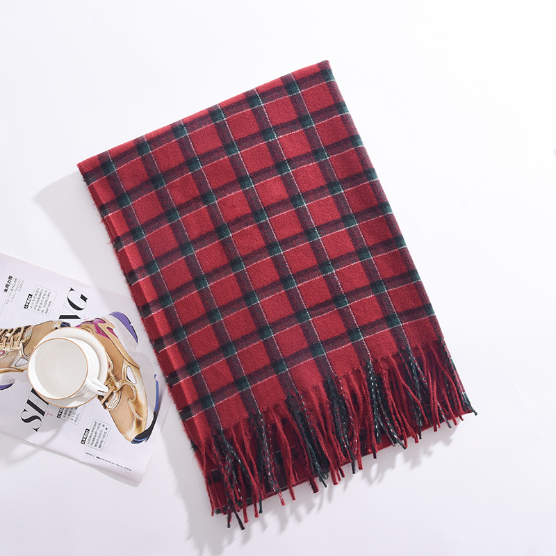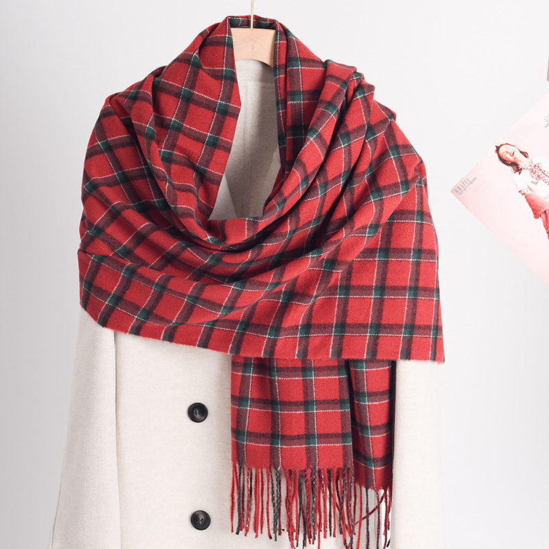 新款仿羊绒围巾女高级感百搭保暖韩版学生圣诞格子围巾披肩围脖潮