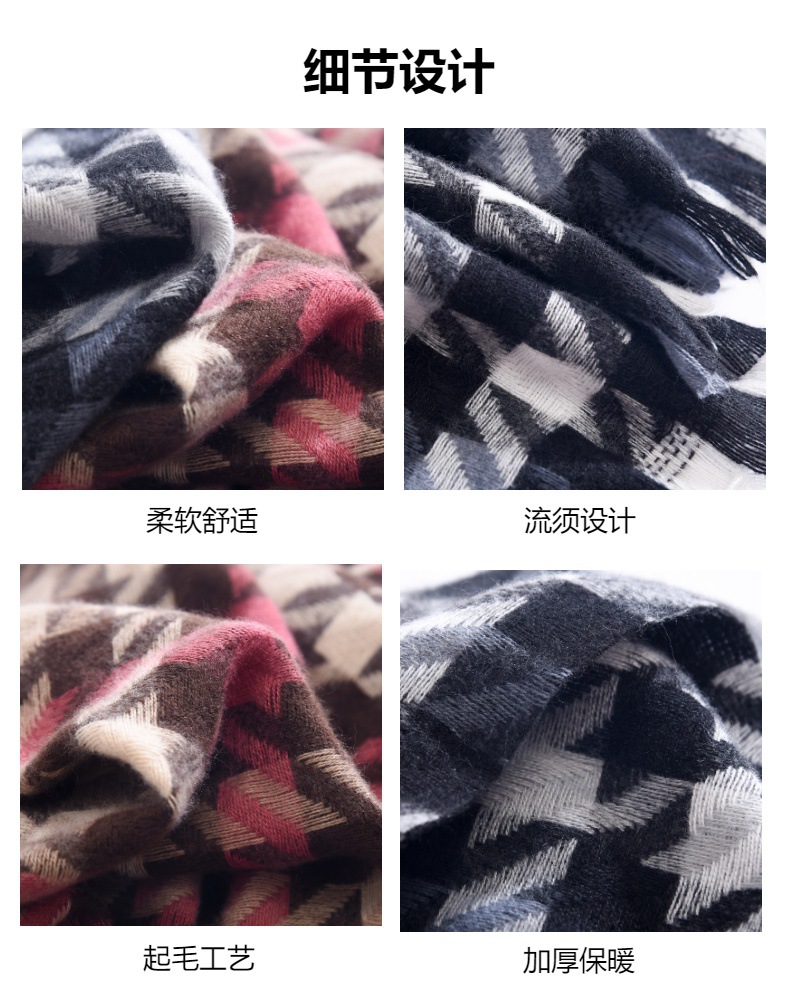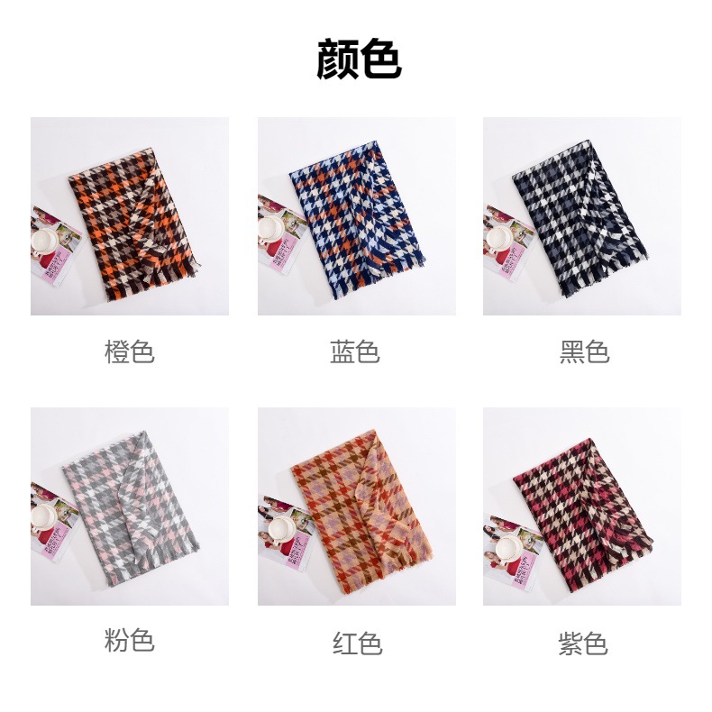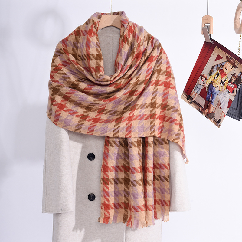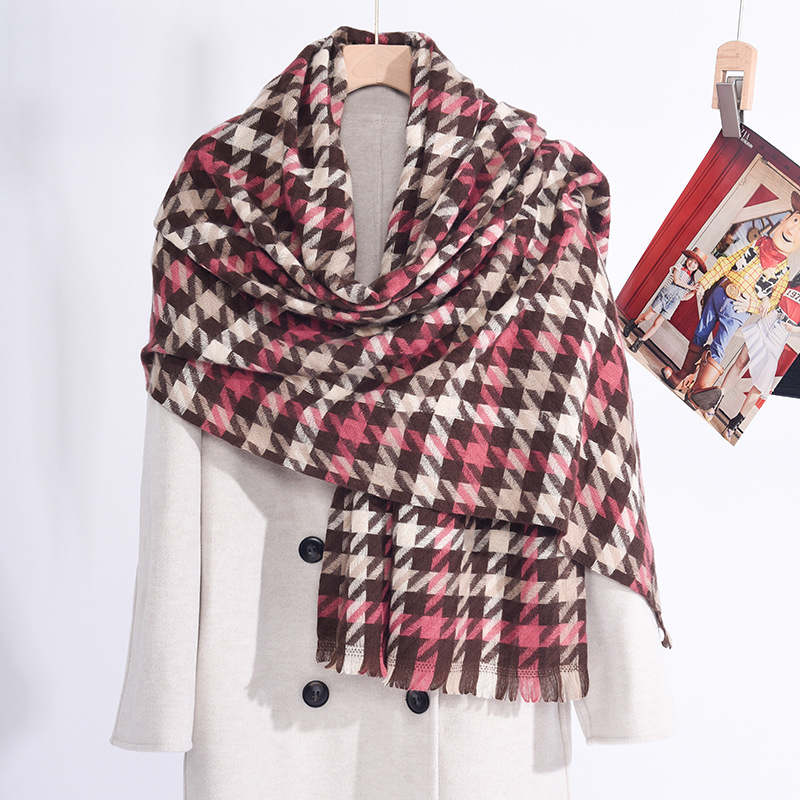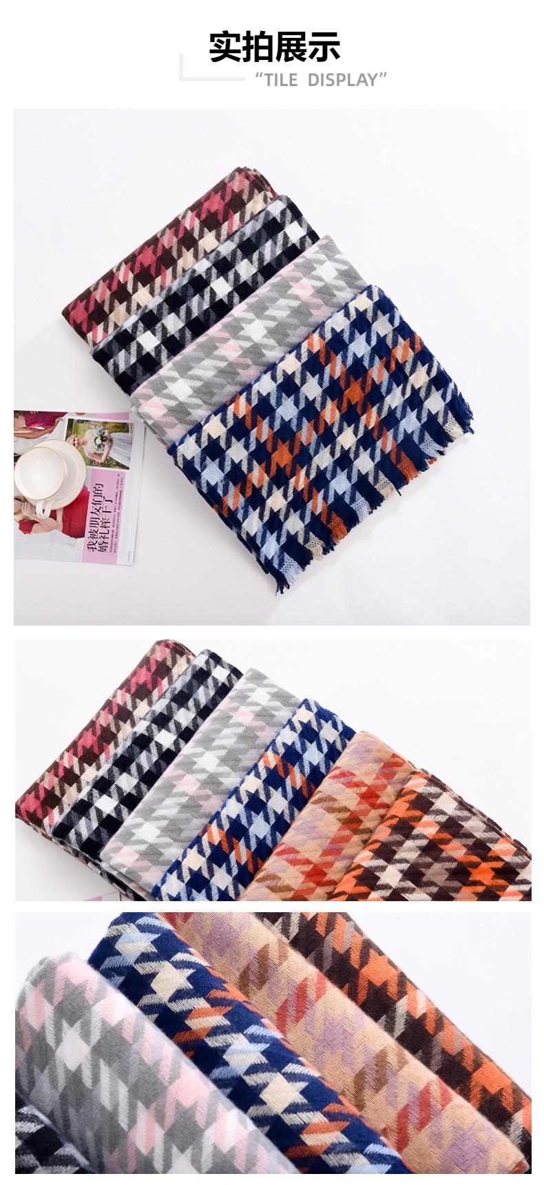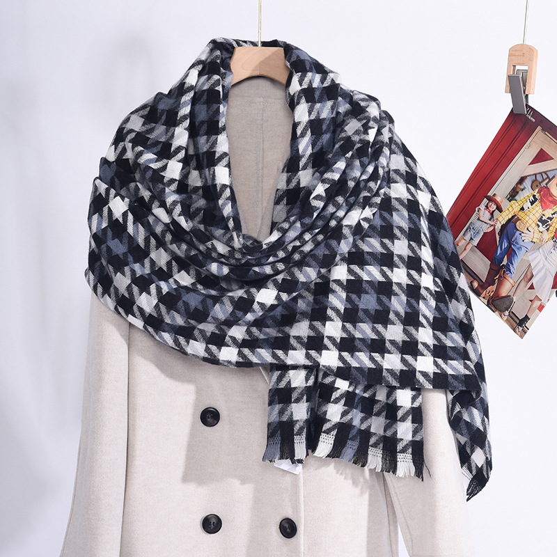 冬季新款大千鸟格围巾女高级感百搭保暖加厚围脖披肩围巾 格子款