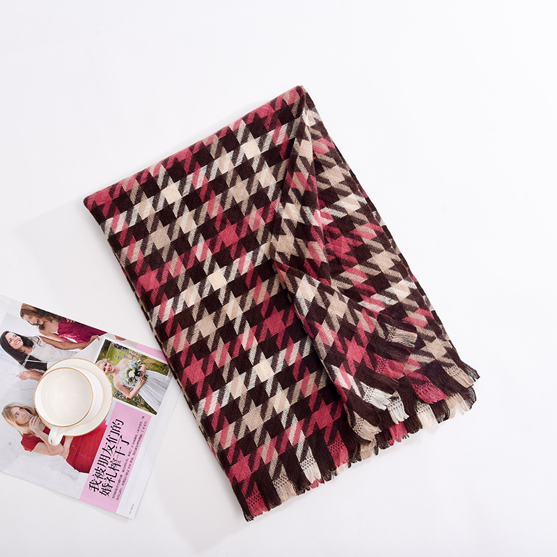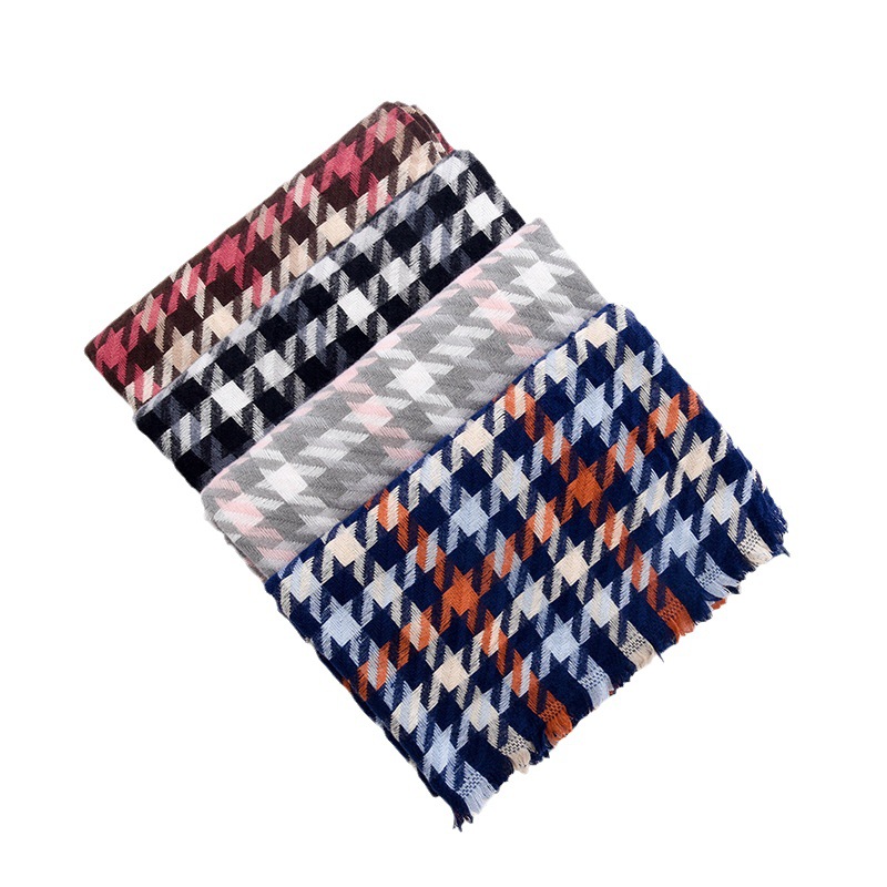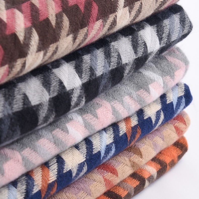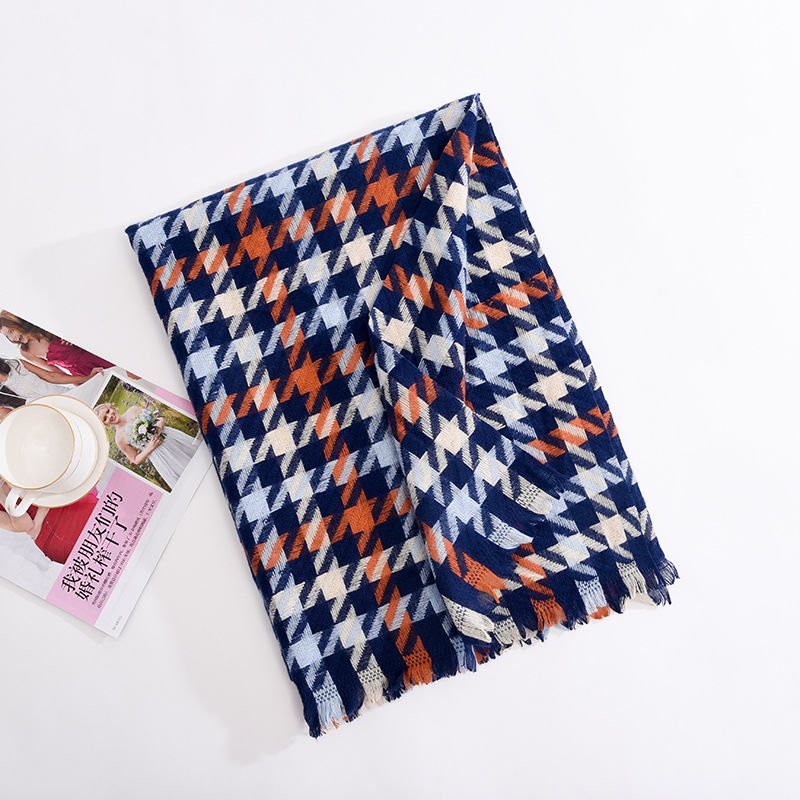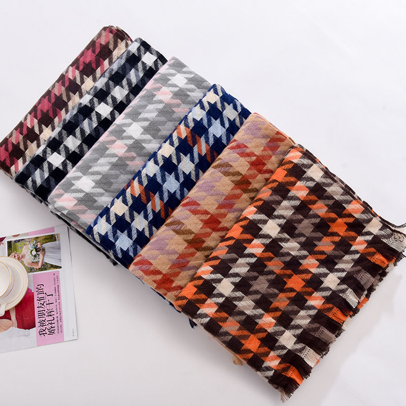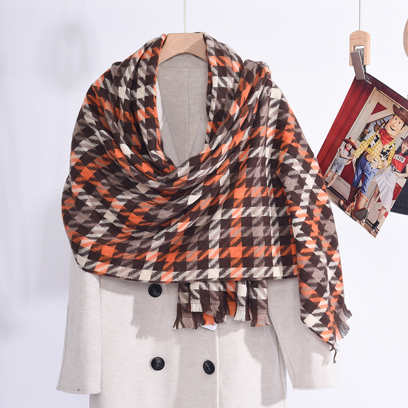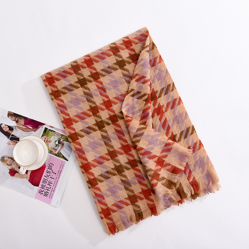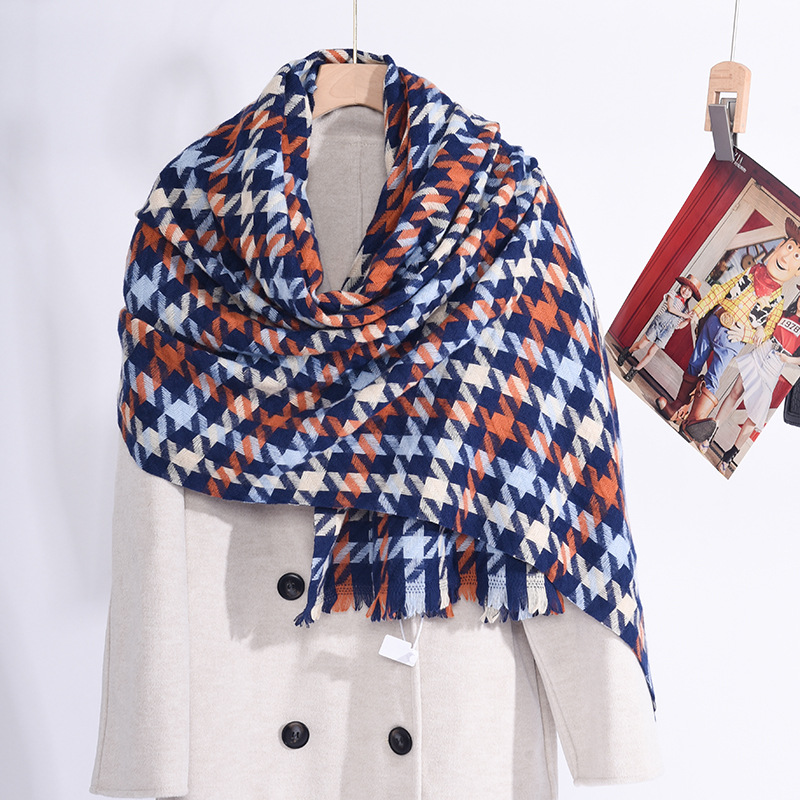冬季新款大千鸟格围巾女高级感百搭保暖加厚围脖披肩围巾 格子款