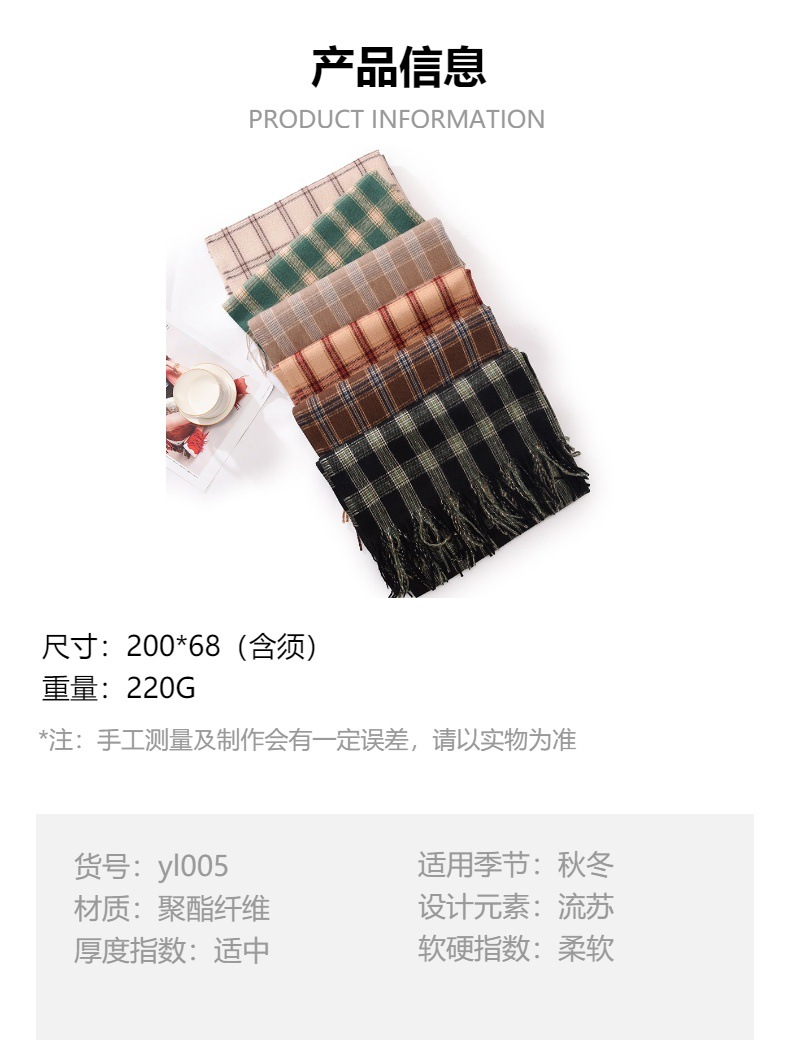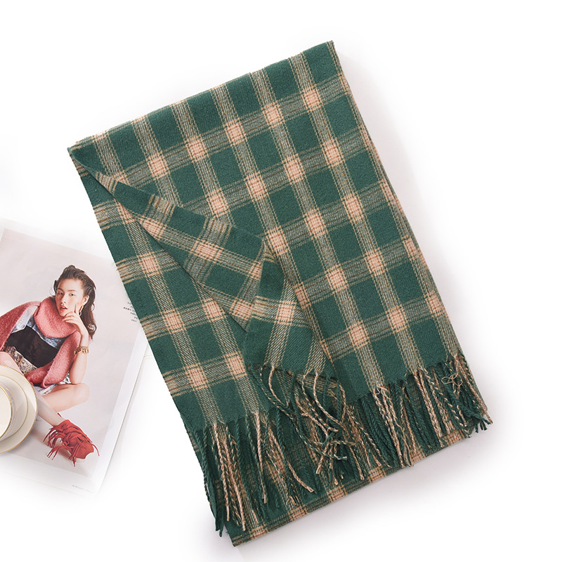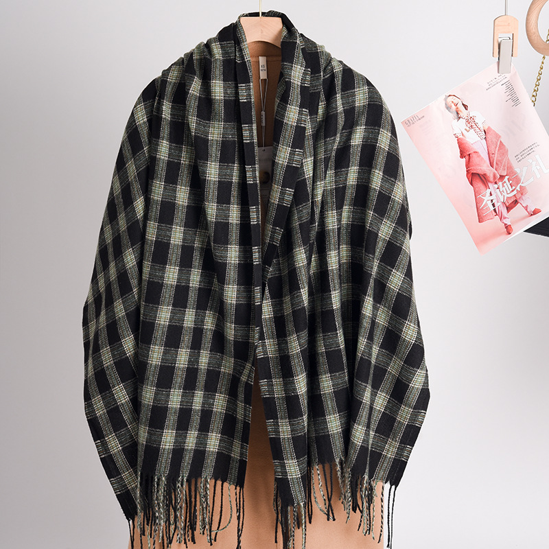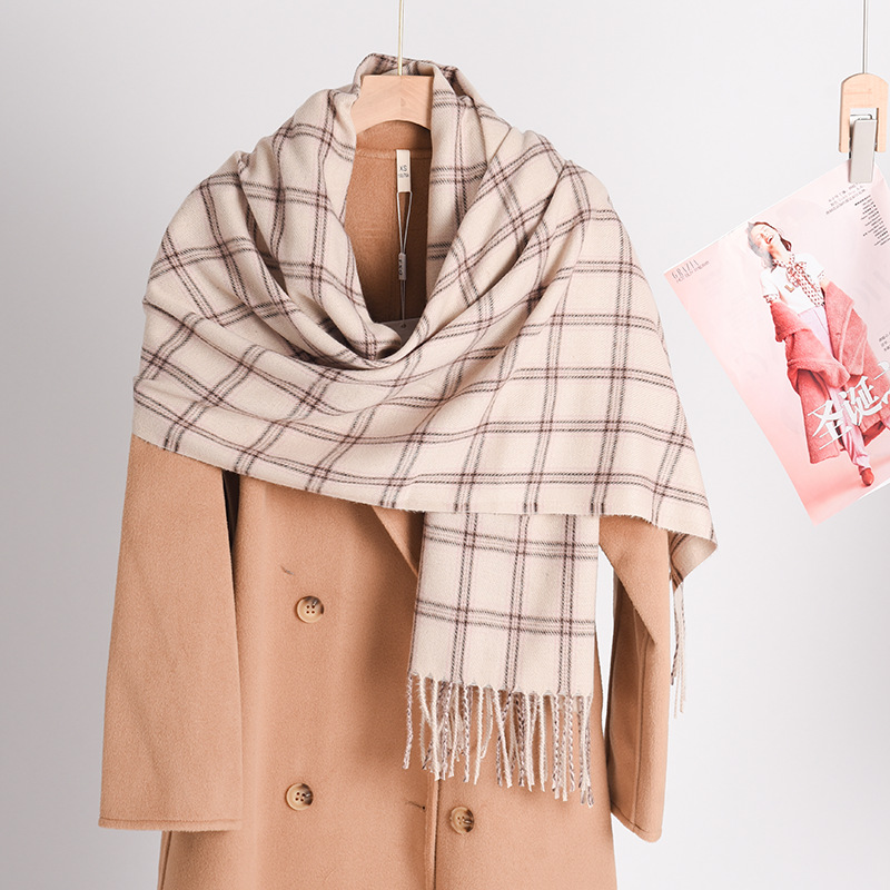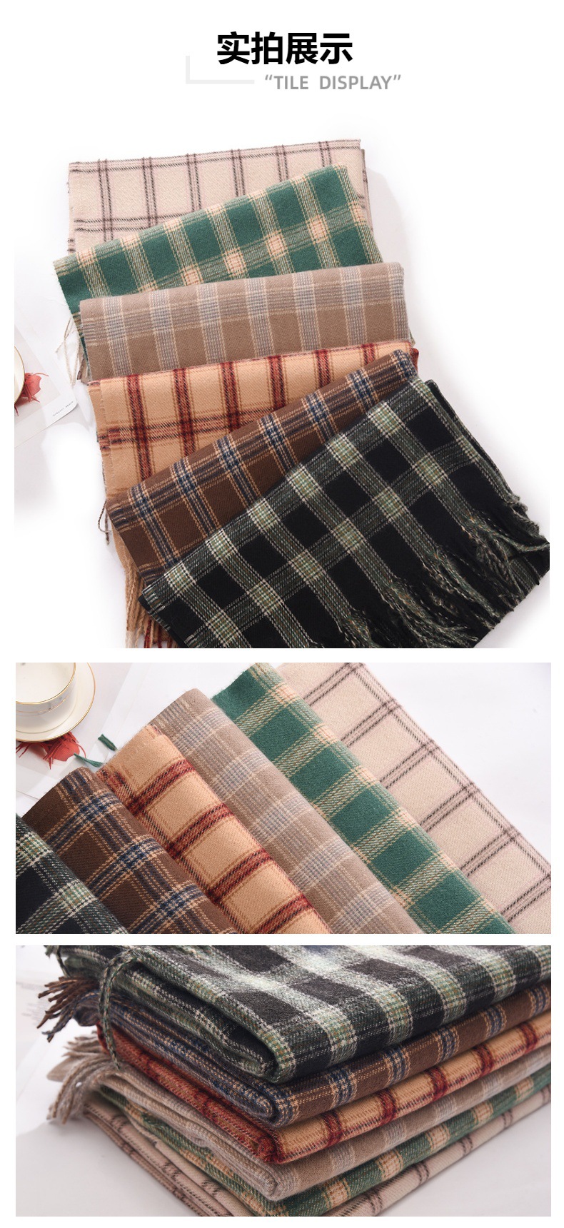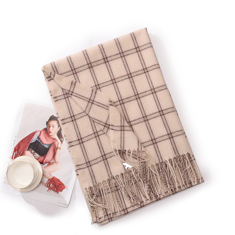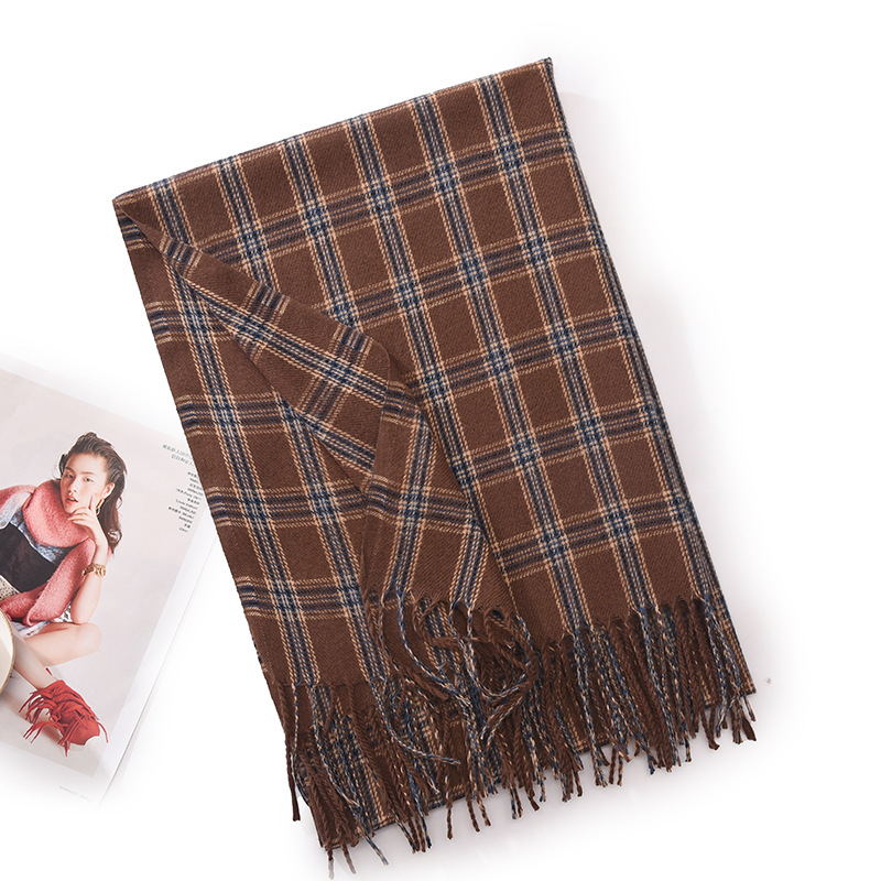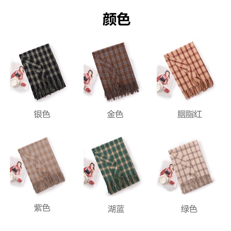 新款仿羊绒围巾女保暖加厚格子围巾围脖批发流苏披肩秋冬围巾高级
