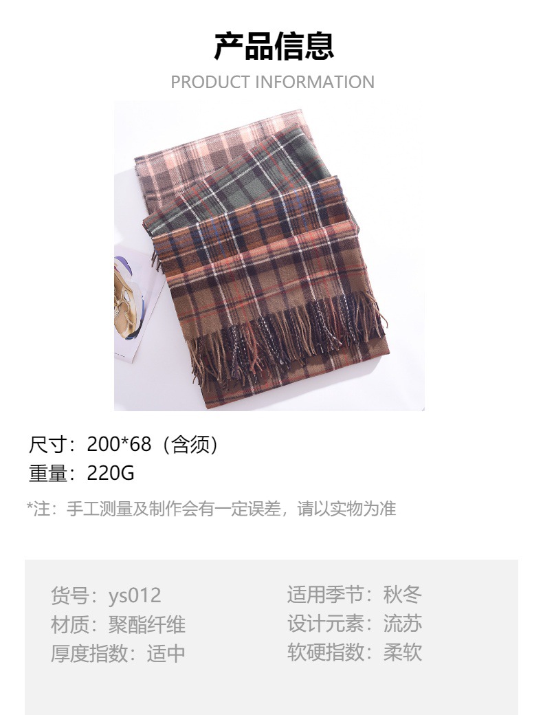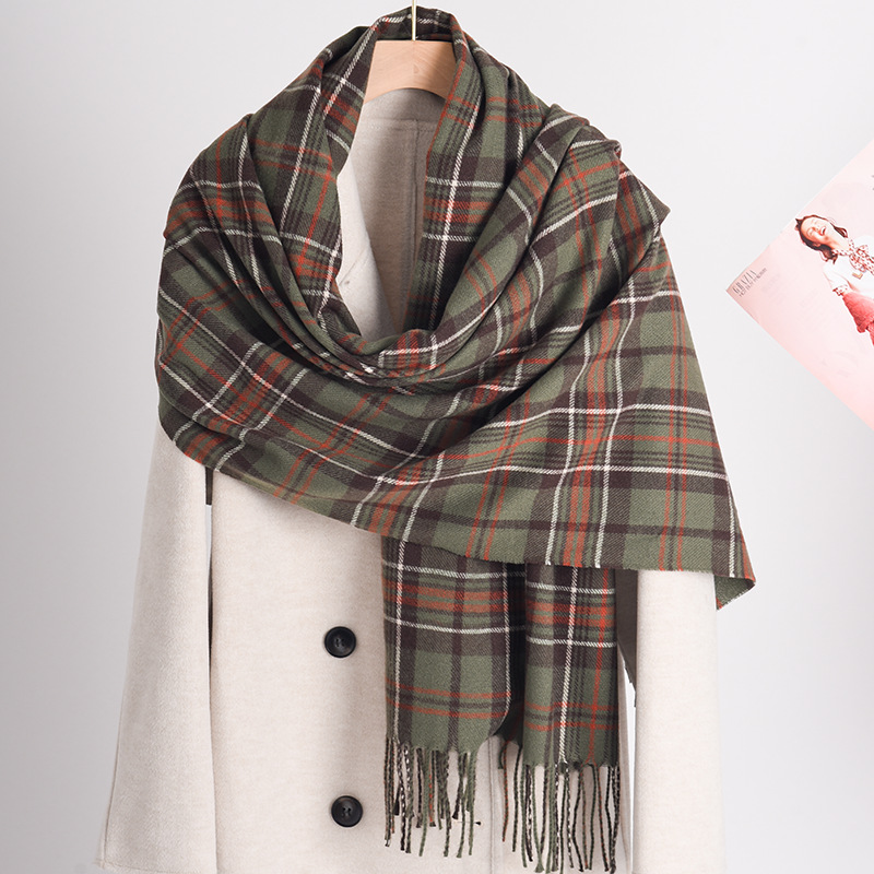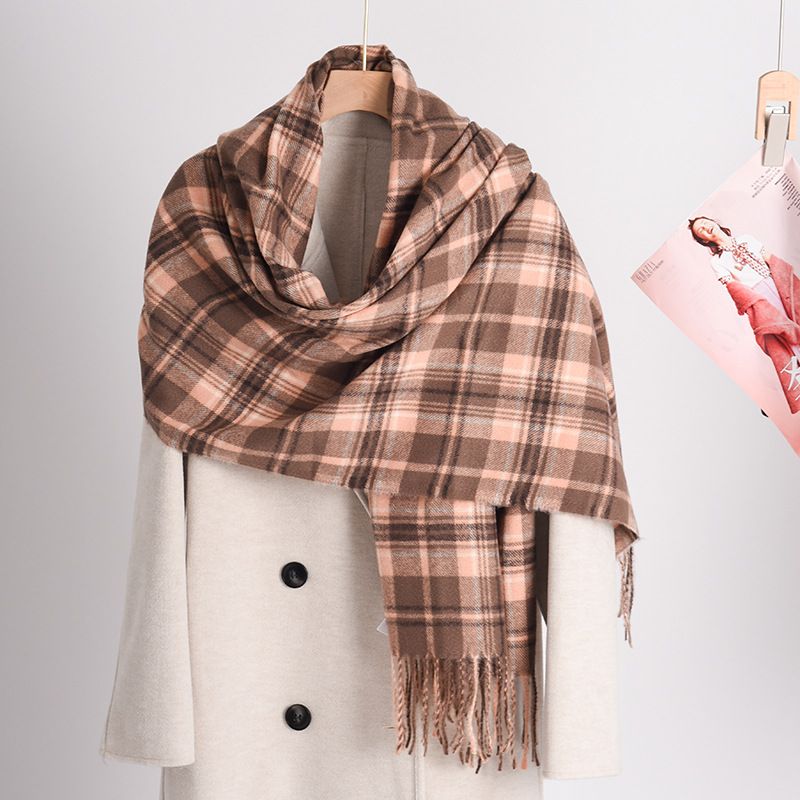 仿羊绒围巾女冬季百搭加厚防寒格子围巾新款防寒时尚披肩围脖保暖