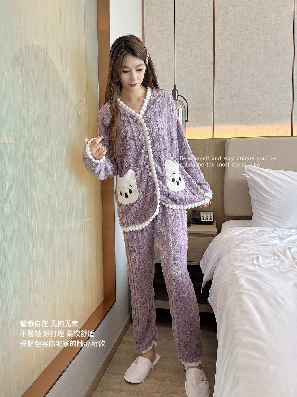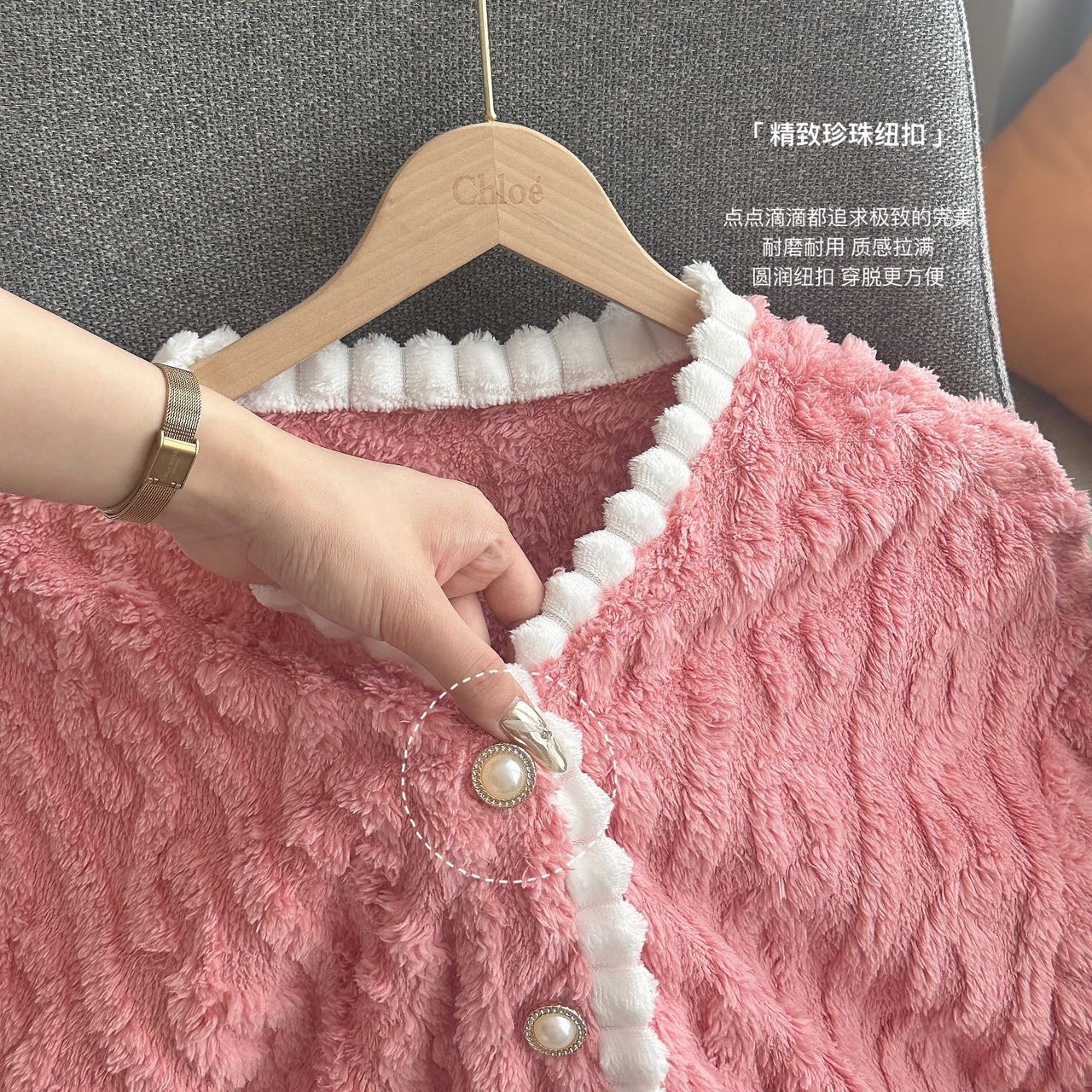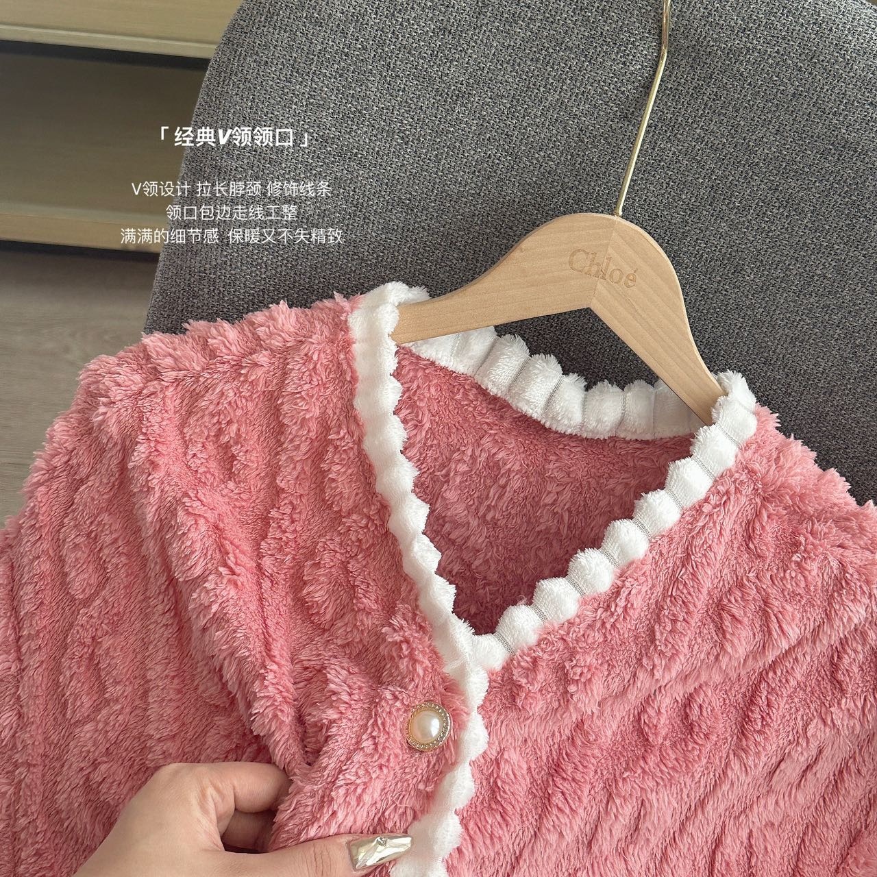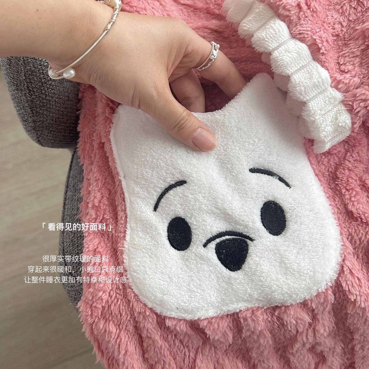 冬季新款睡衣女小熊开衫甜美长毛绒家居服套装麻花绒加厚可外穿