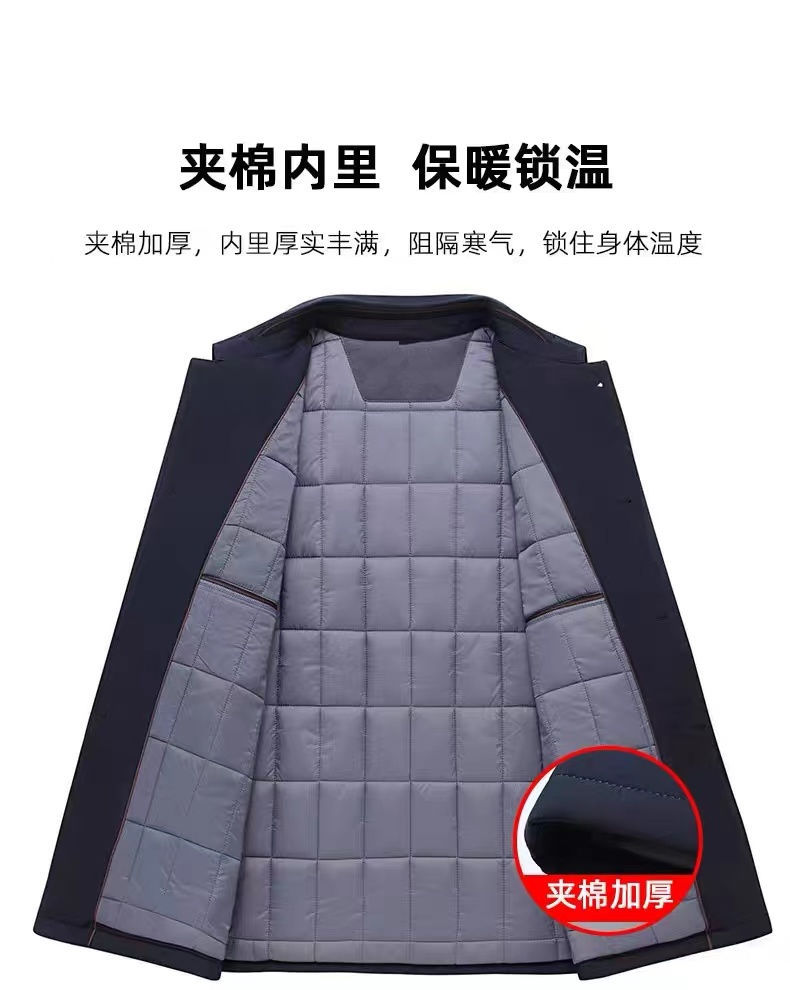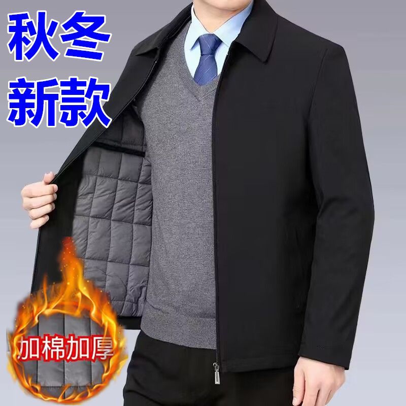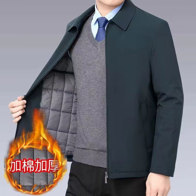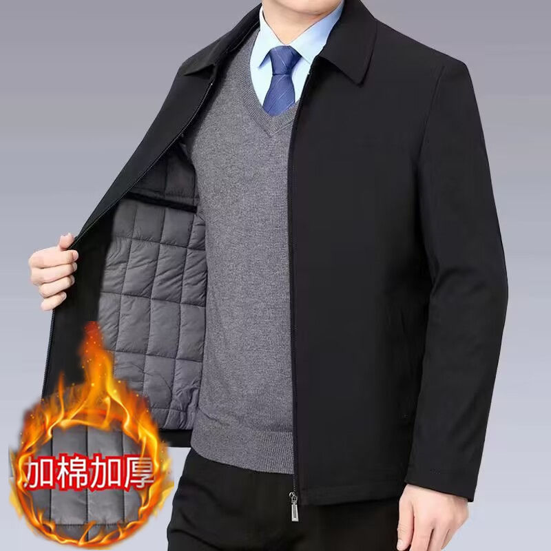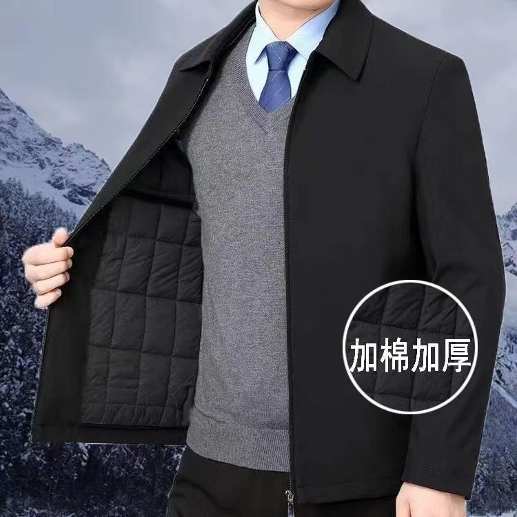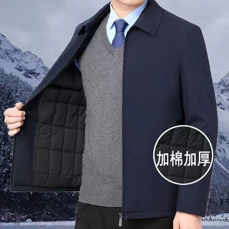 加棉翻领外套男士冬季外穿商务棉衣保暖爸爸装上衣加厚款棉服夹克