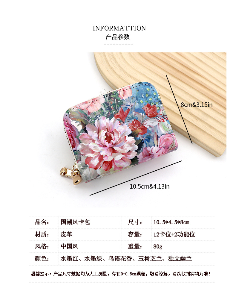 2024新款国风卡包女大容量多卡位多功能拉链零钱包女式防消磁卡套