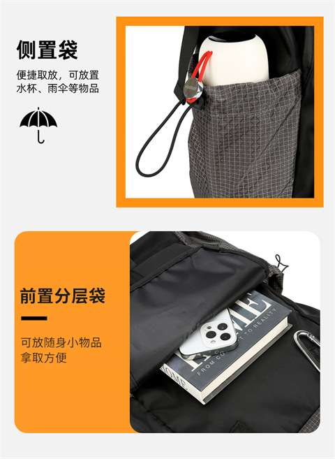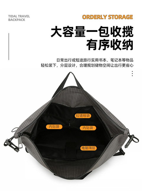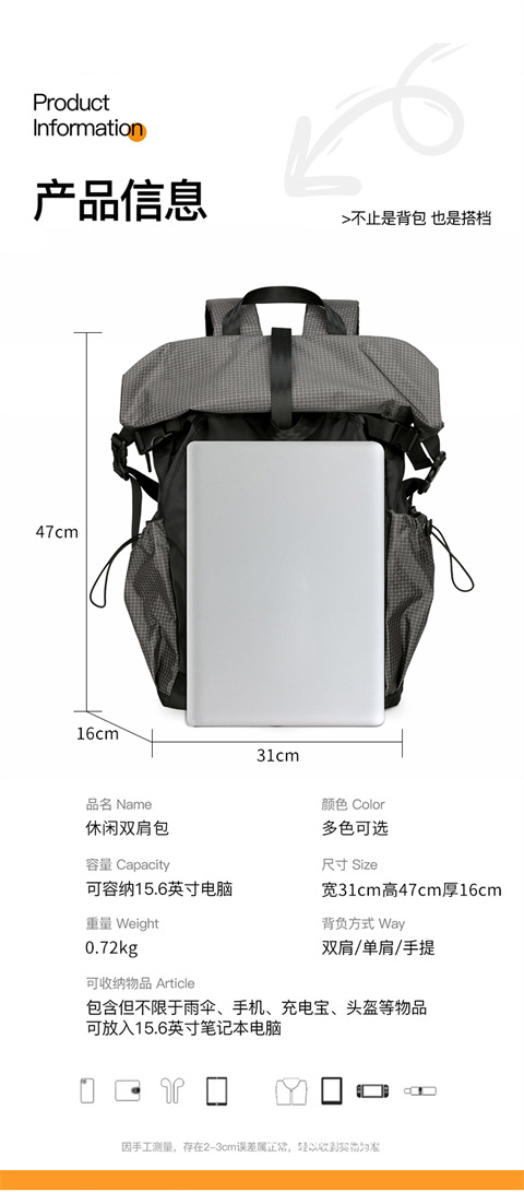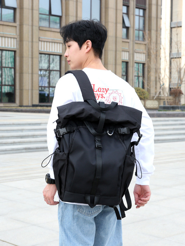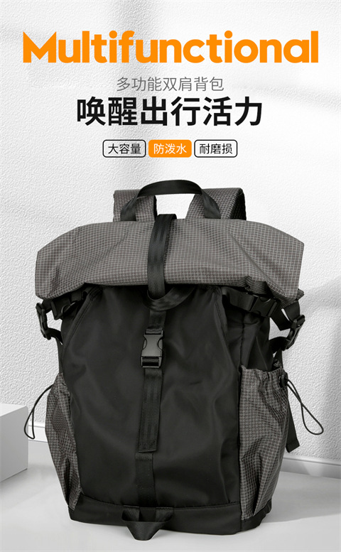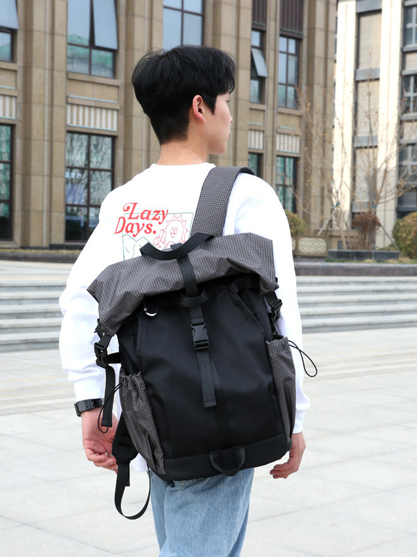 新款男士双肩包休闲运动背包撞色街头潮酷可扩容双肩背包
