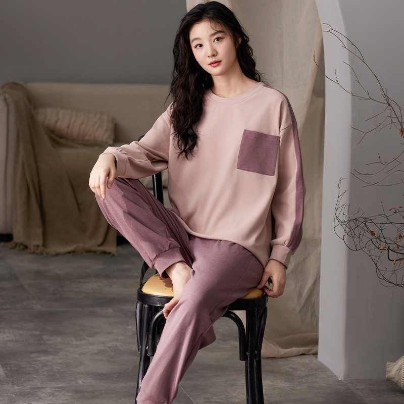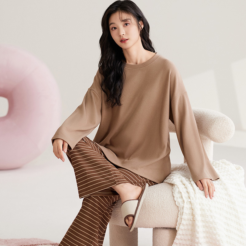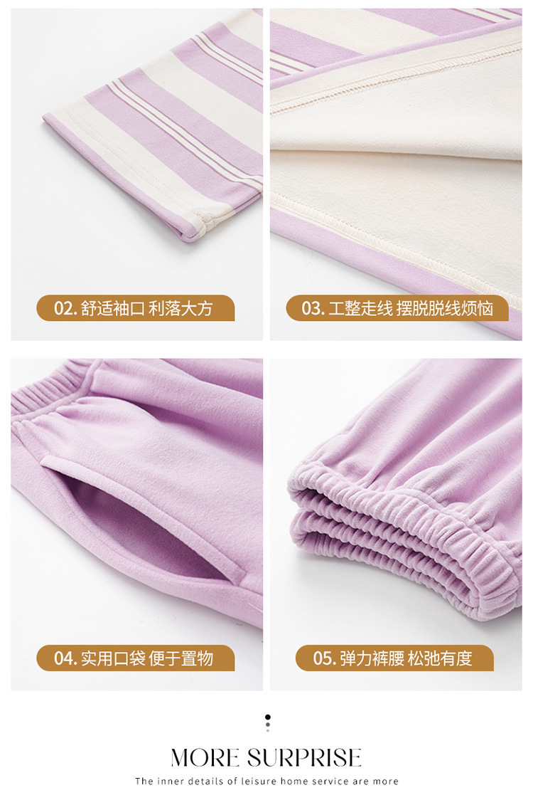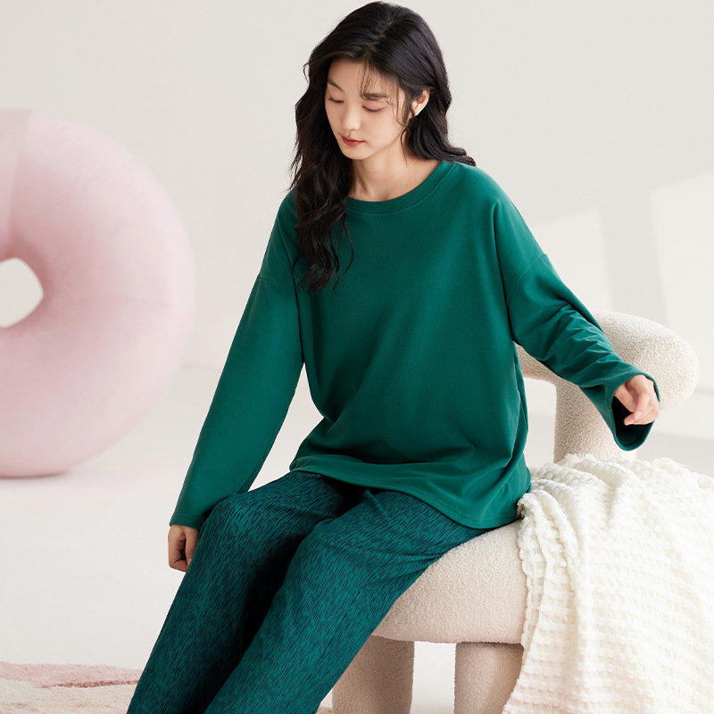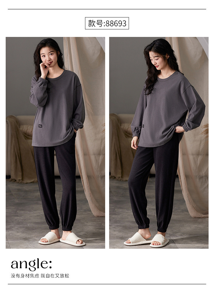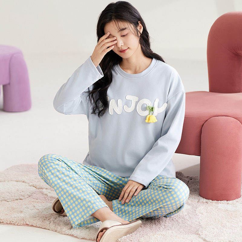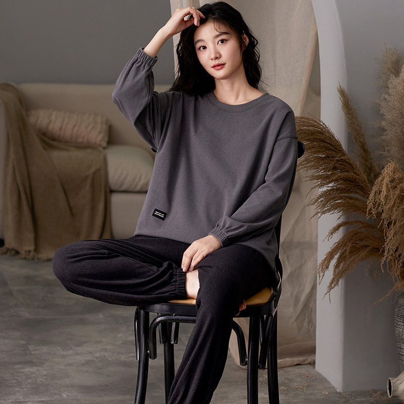 睡衣女款德绒发热长袖秋冬季保暖套装圆领套头简约休闲外穿家居服