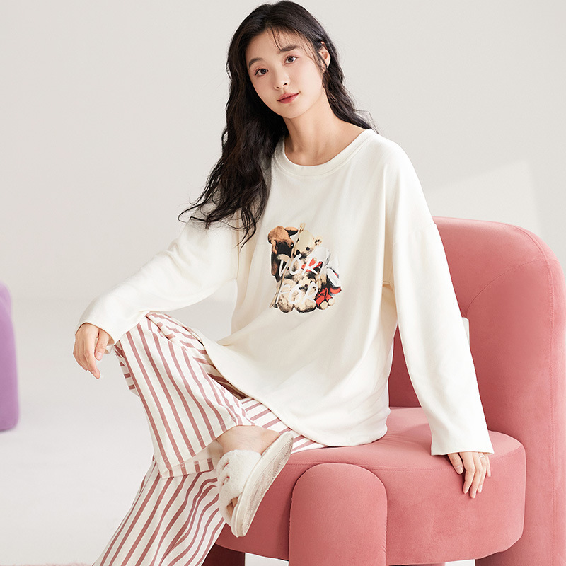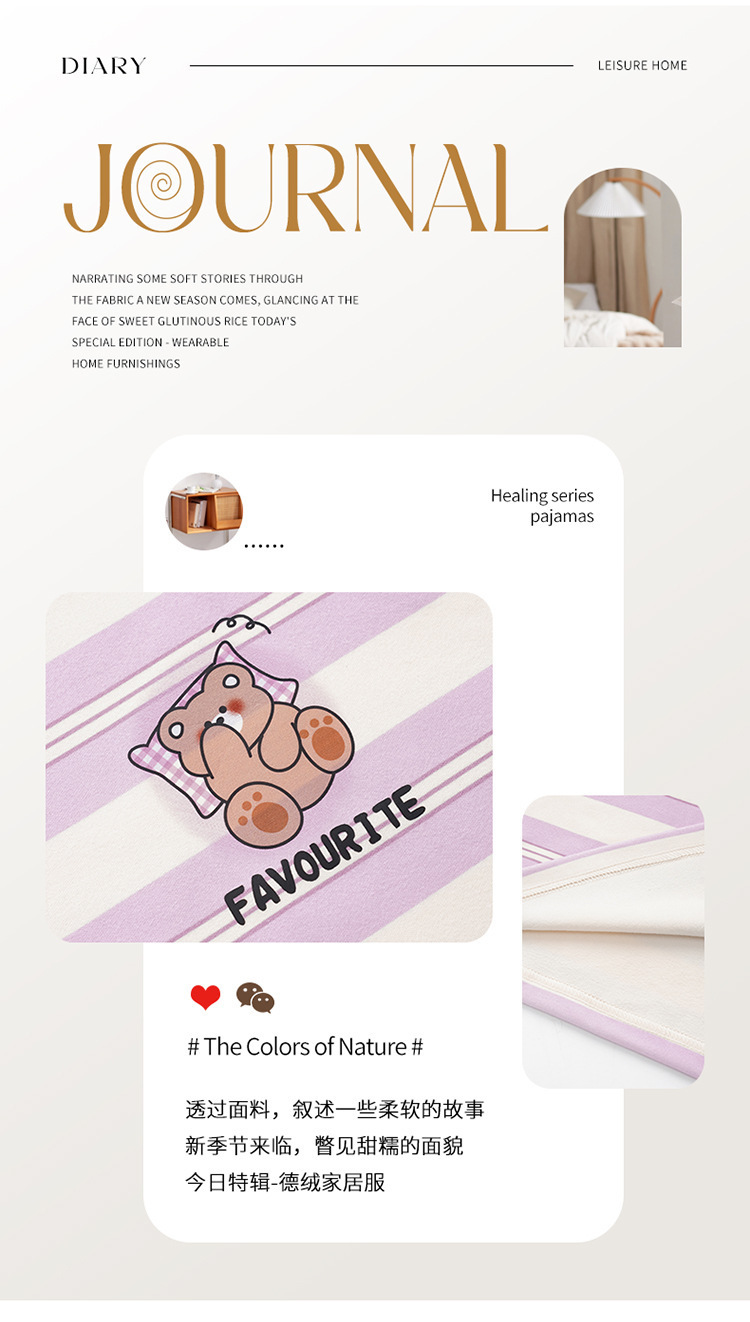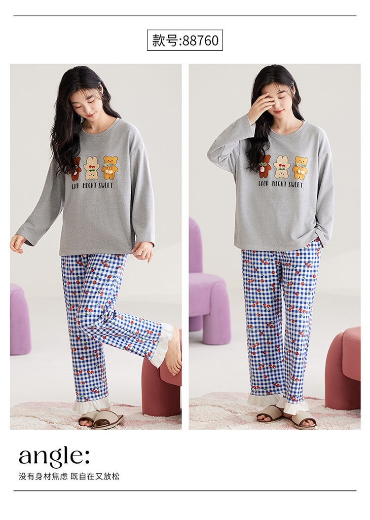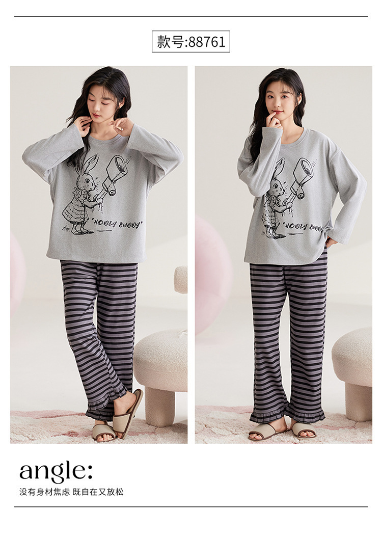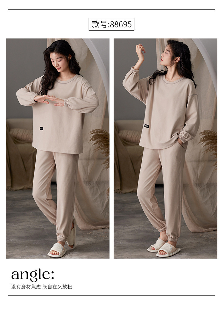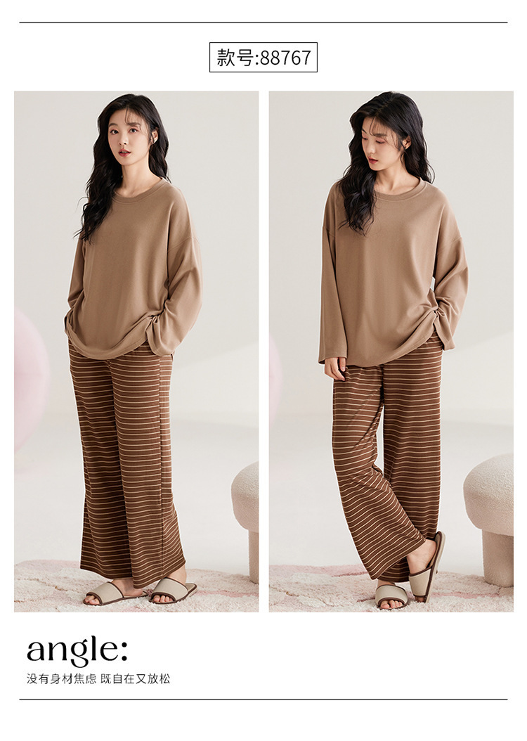 睡衣女款德绒发热长袖秋冬季保暖套装圆领套头简约休闲外穿家居服
