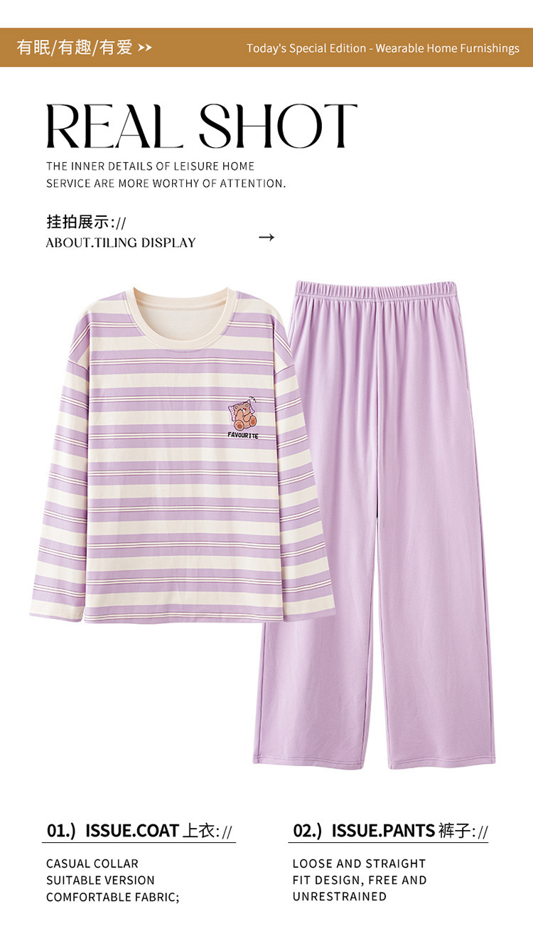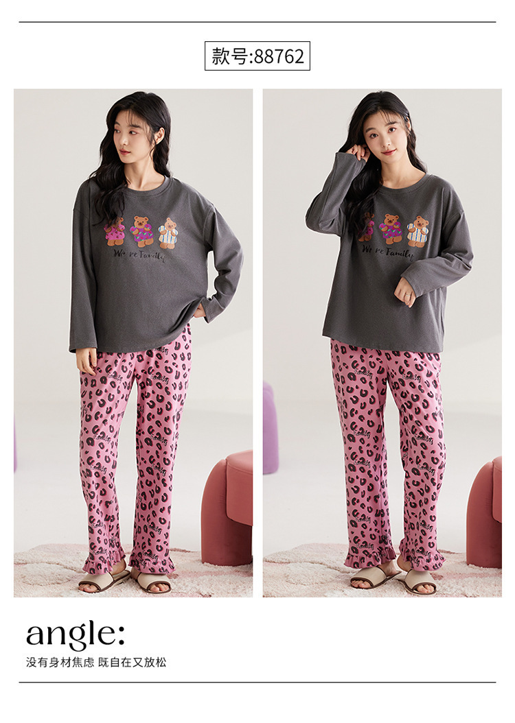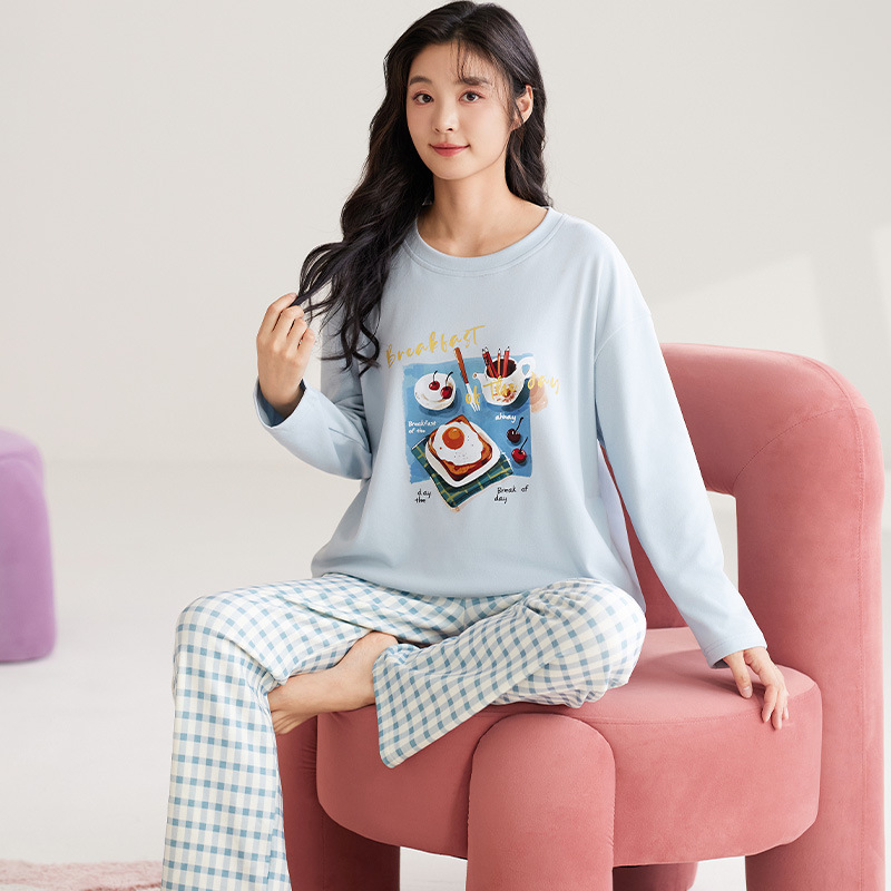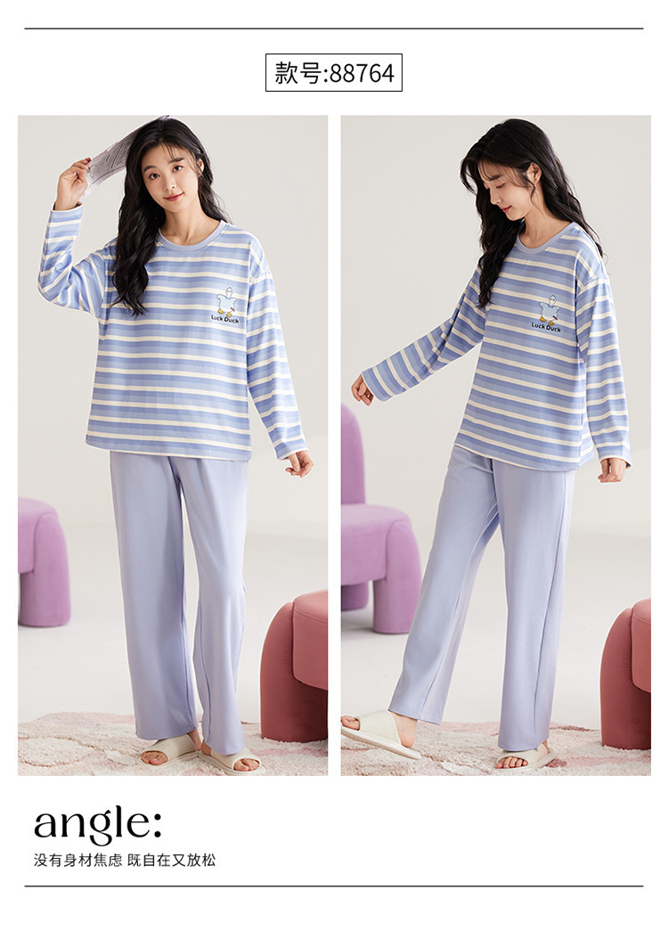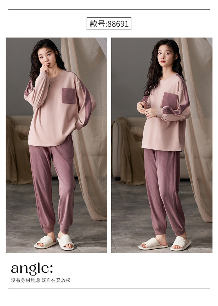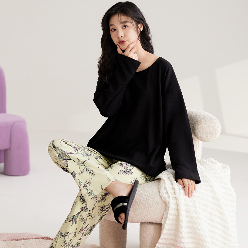 睡衣女款德绒发热长袖秋冬季保暖套装圆领套头简约休闲外穿家居服