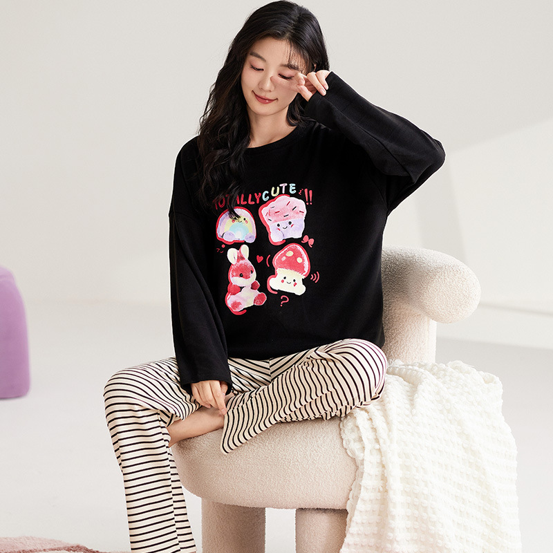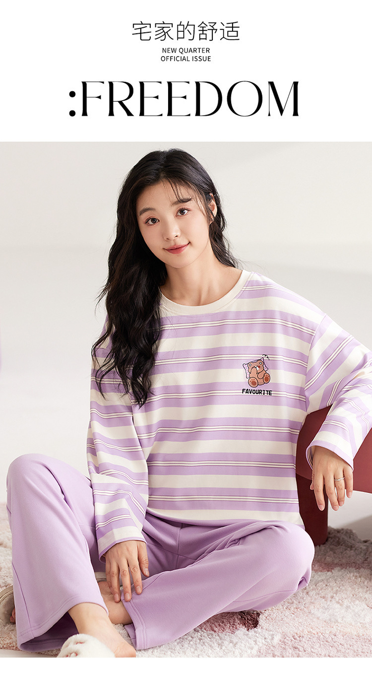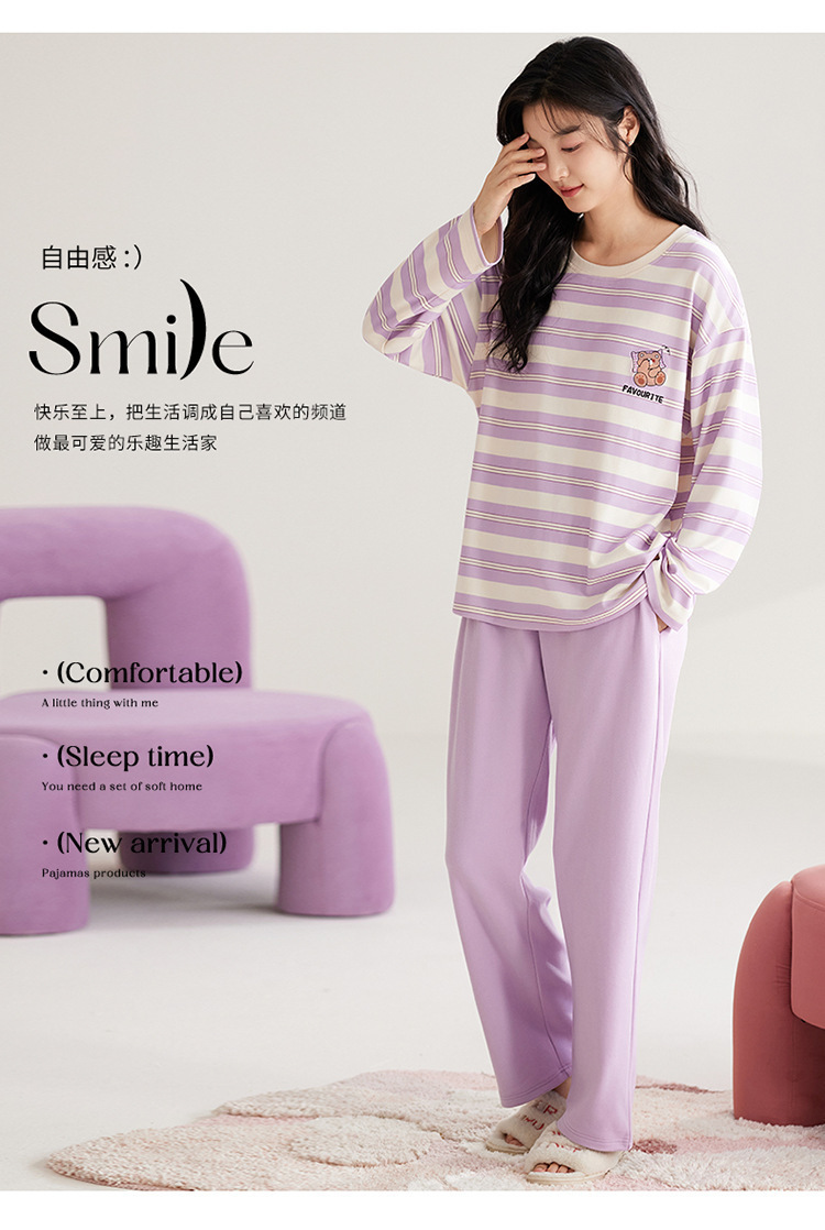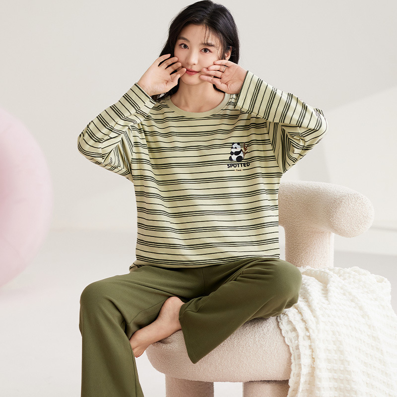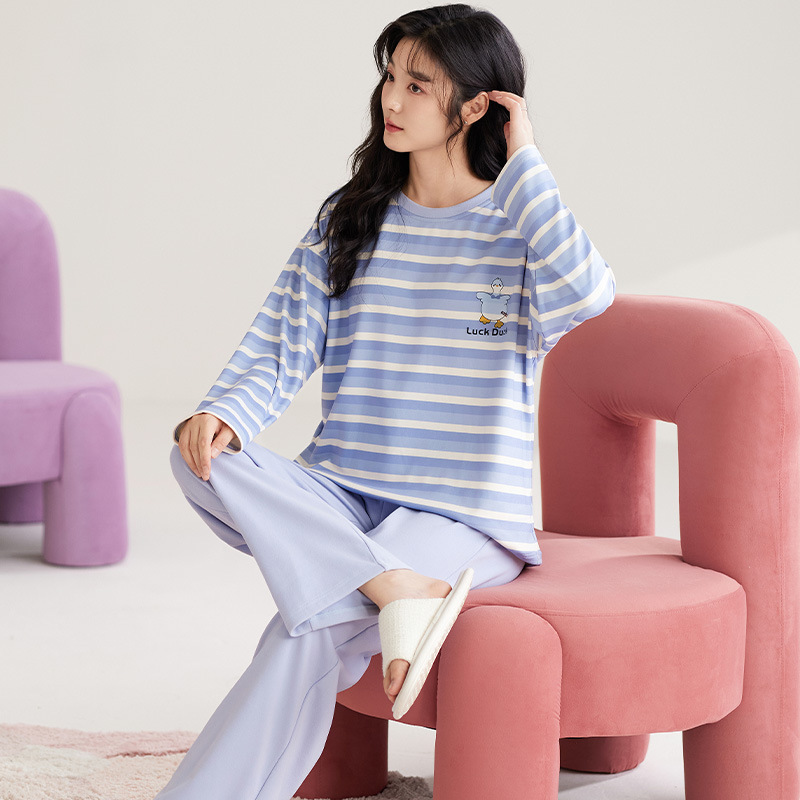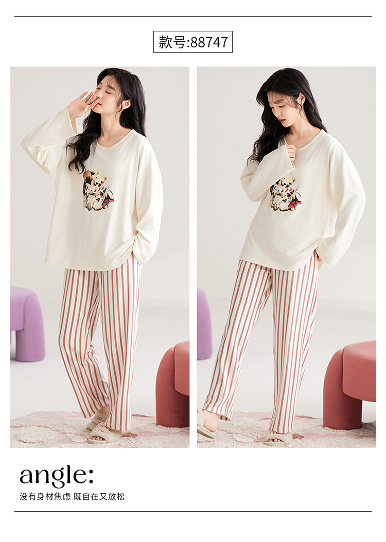 睡衣女款德绒发热长袖秋冬季保暖套装圆领套头简约休闲外穿家居服