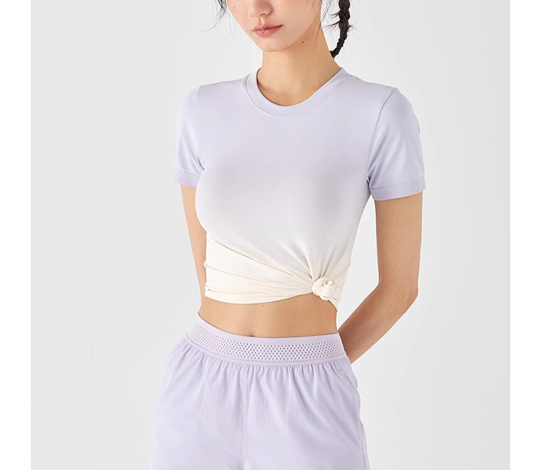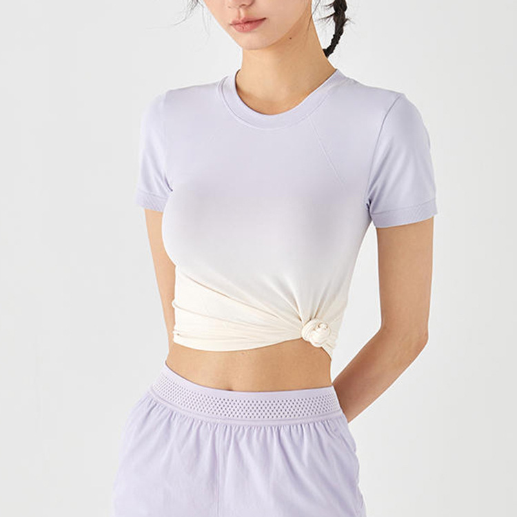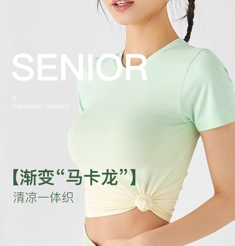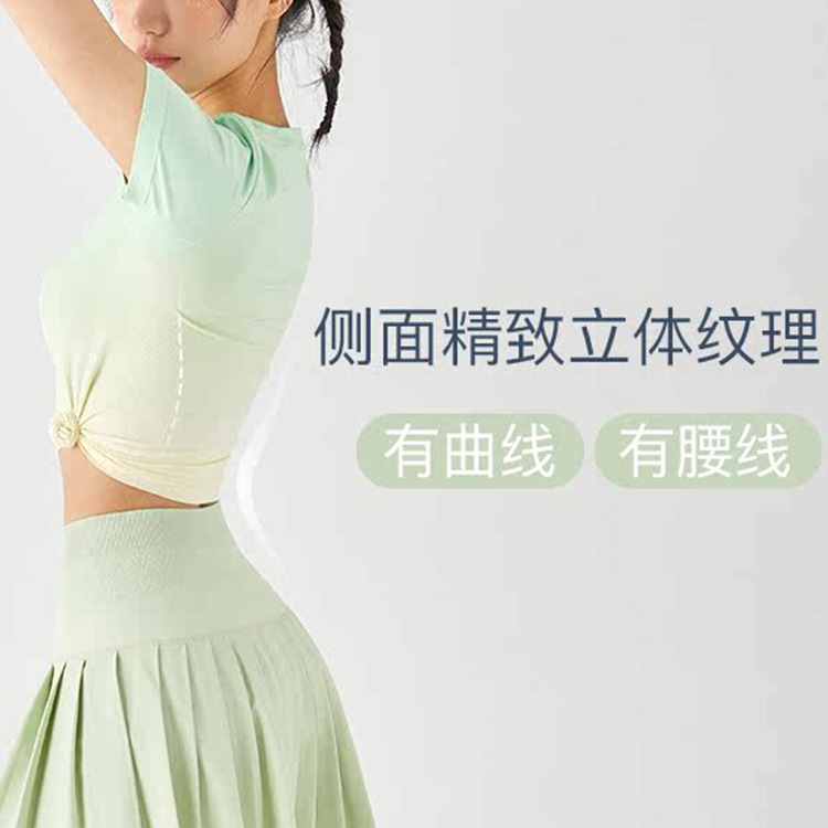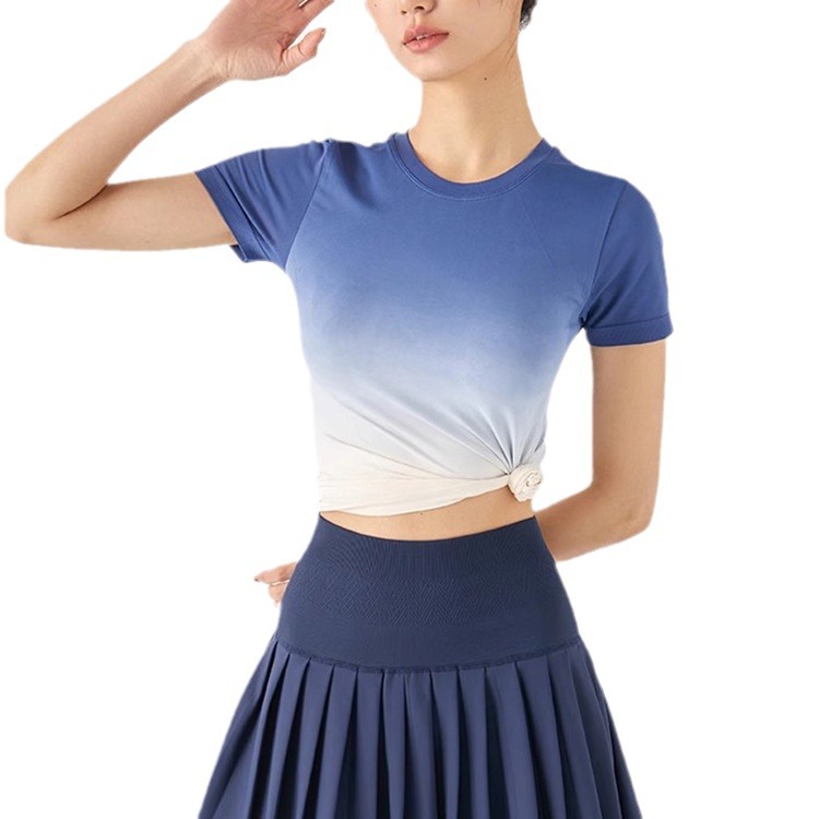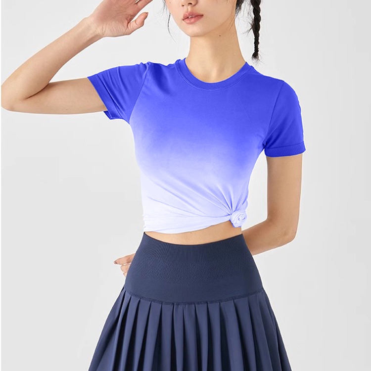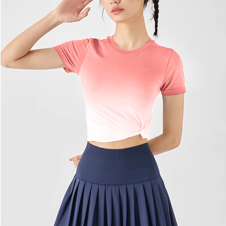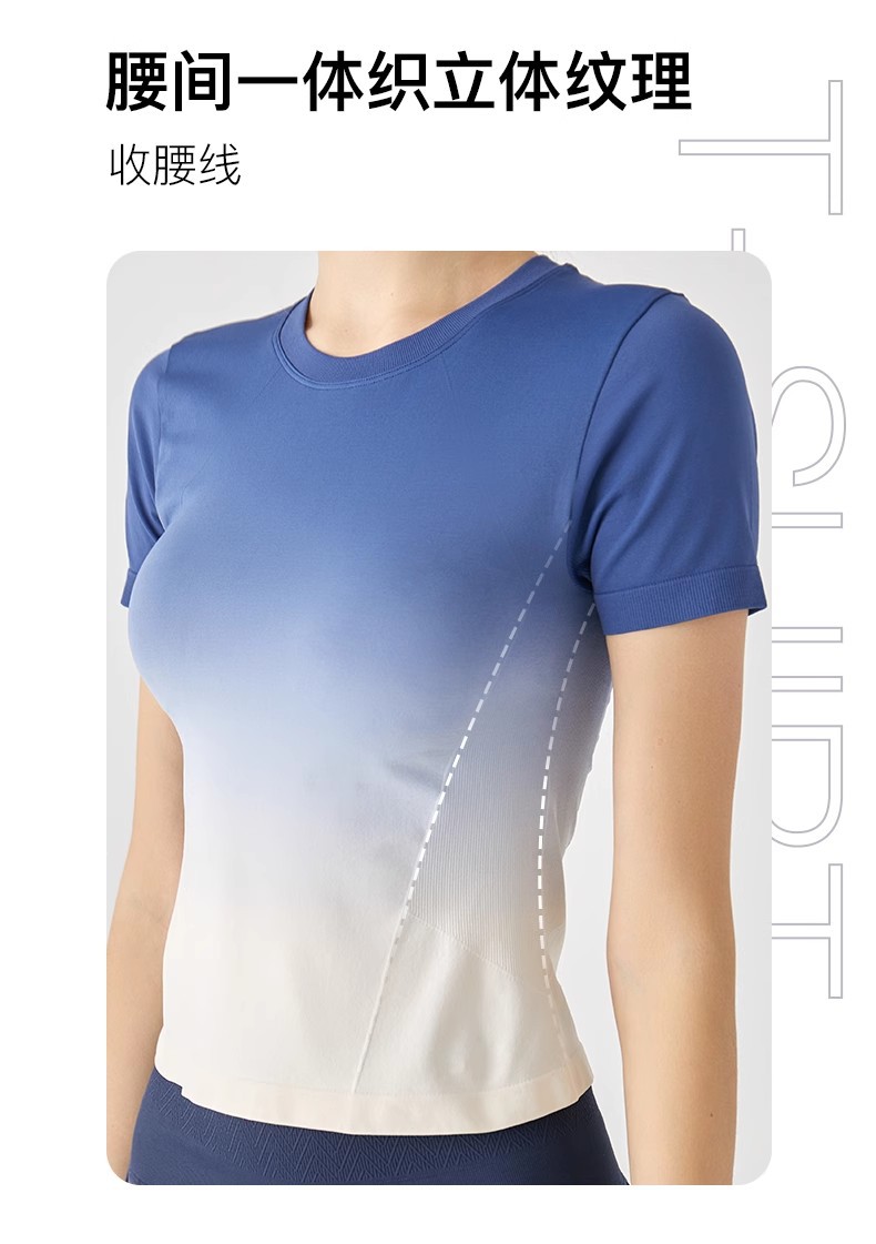 运动渐变上衣吸汗跑步T恤训练显瘦速干瑜伽健身服女