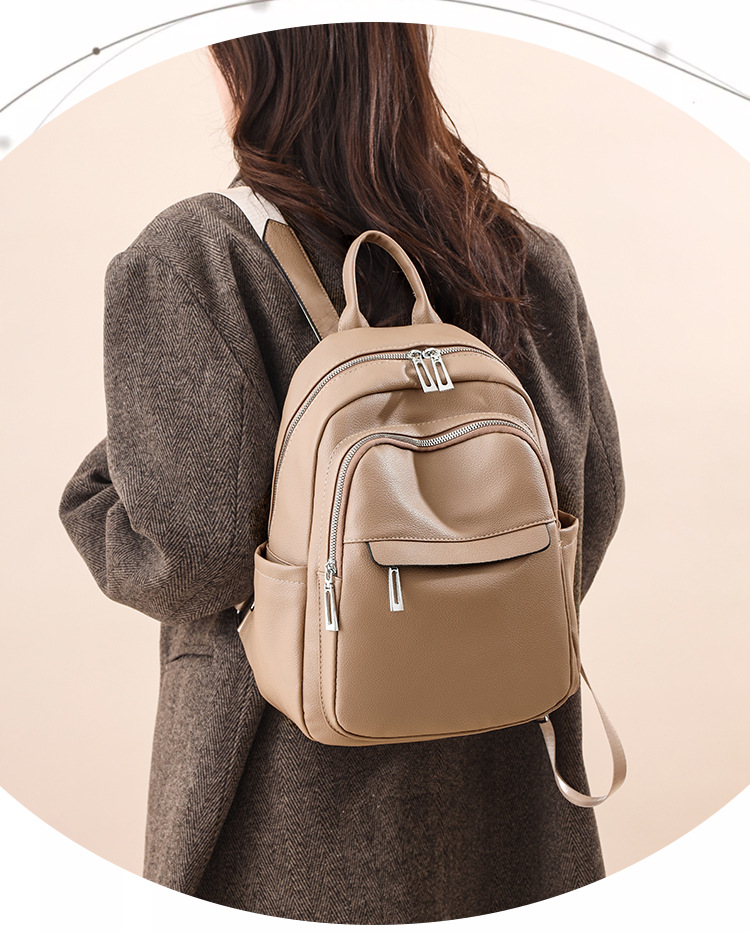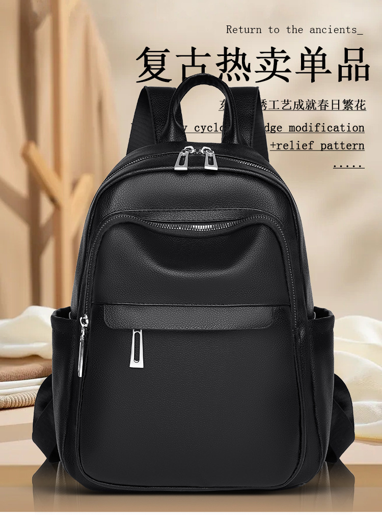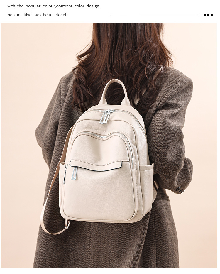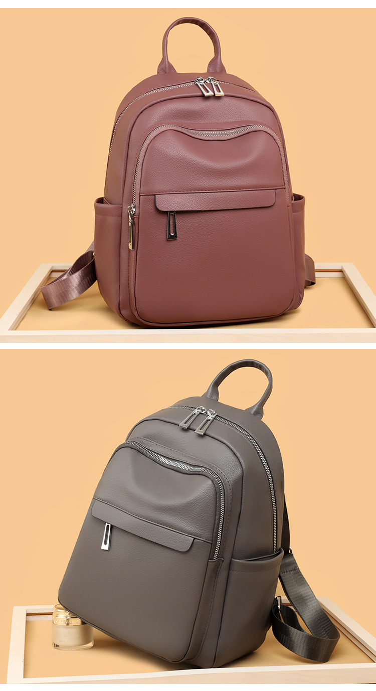 跨境PU软皮背包代发 女士防泼水简约双肩包 户外旅行小背包批发