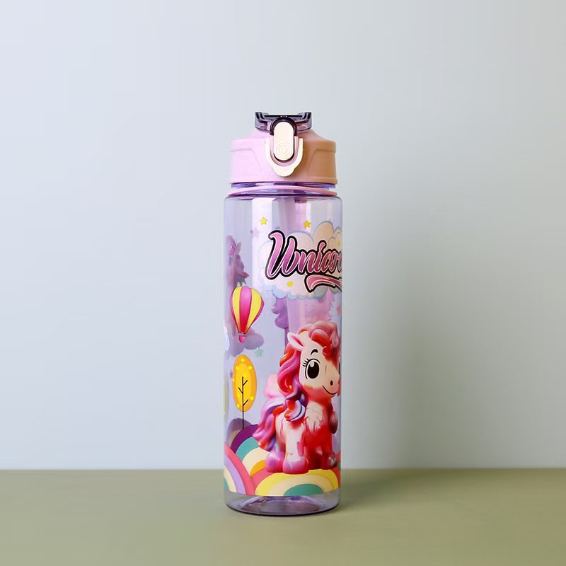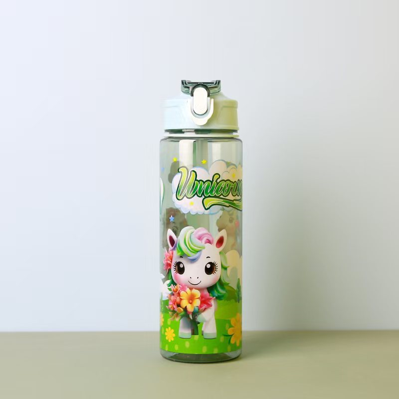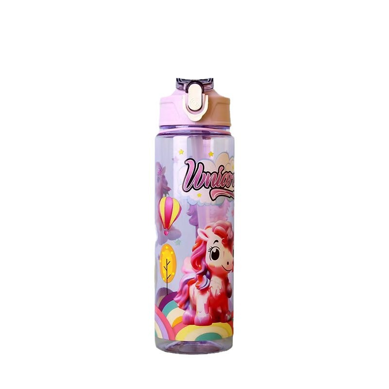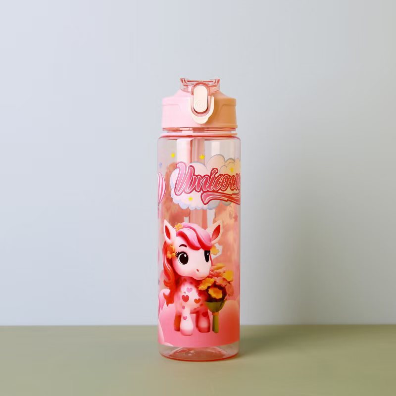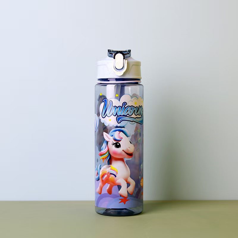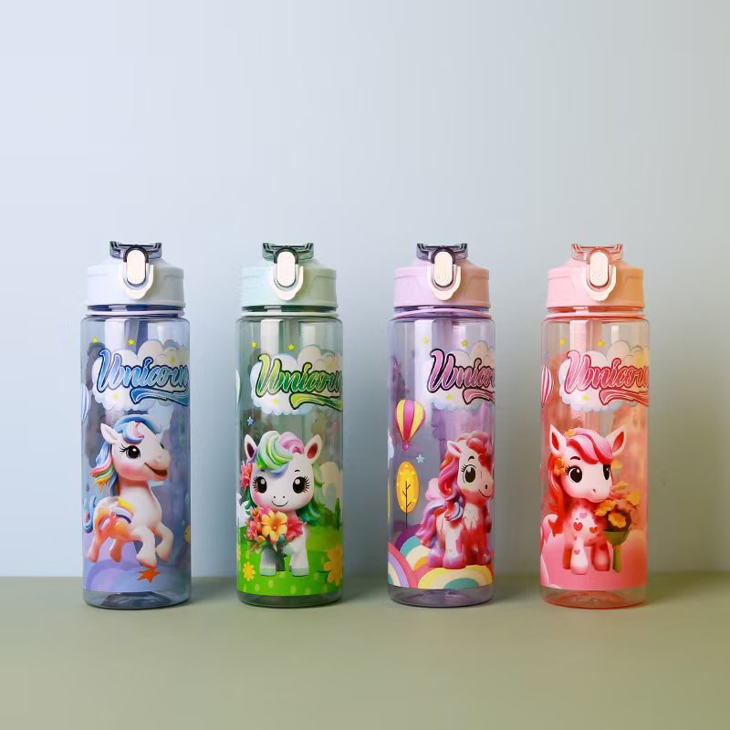 新款独角兽儿童卡通水杯 透明提绳便携太空杯跨境电商卡通塑料杯