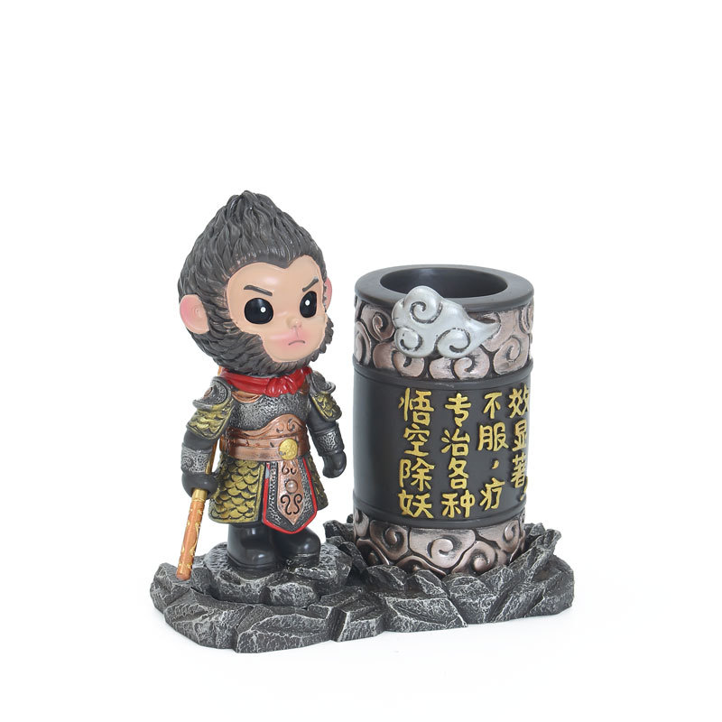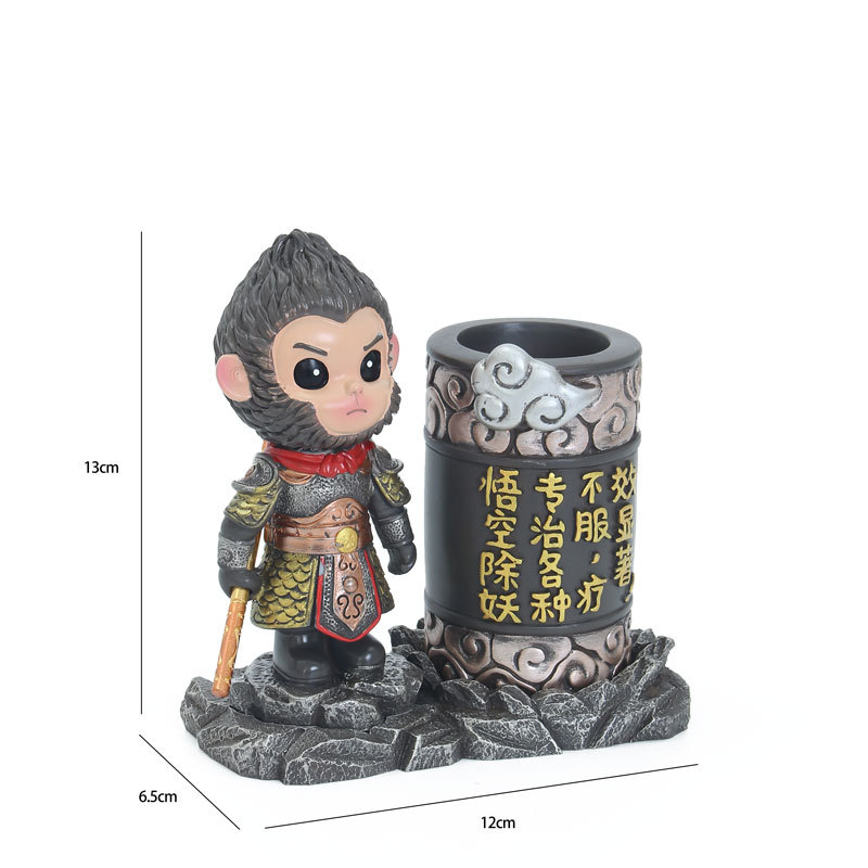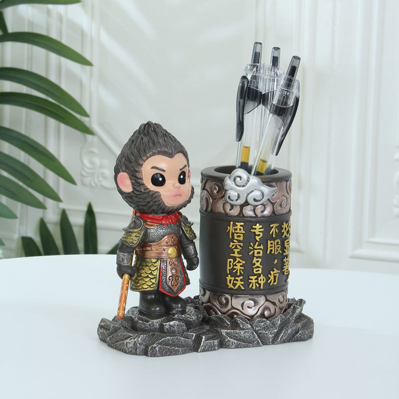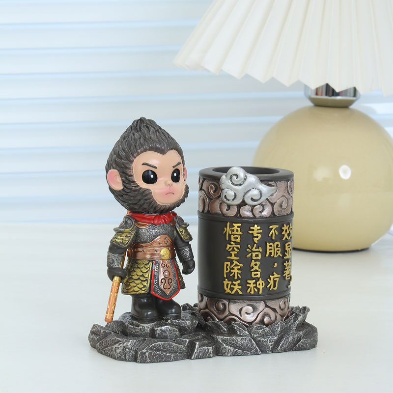 创意黑色神话悟空办公室桌面树脂笔筒收纳摆件卡通高颜值学生礼物
