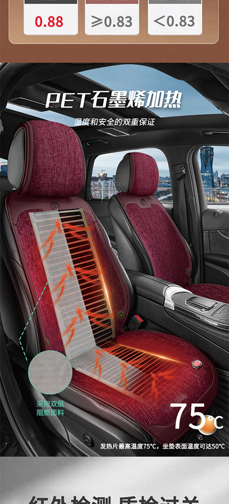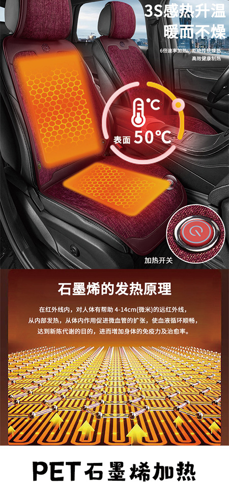 石墨烯汽车加热坐垫3s均匀发热无辐射孕婴可用四季通用车载坐垫