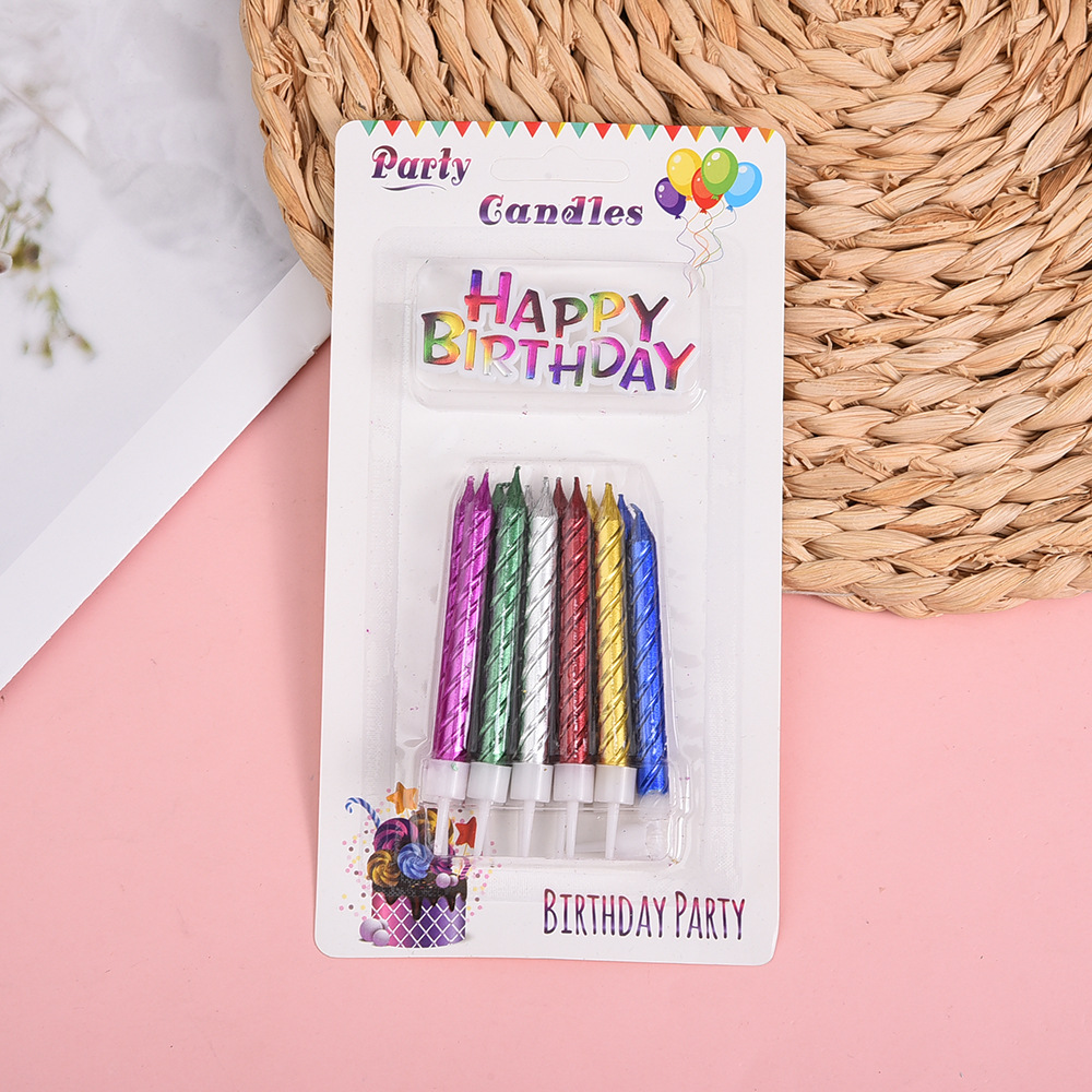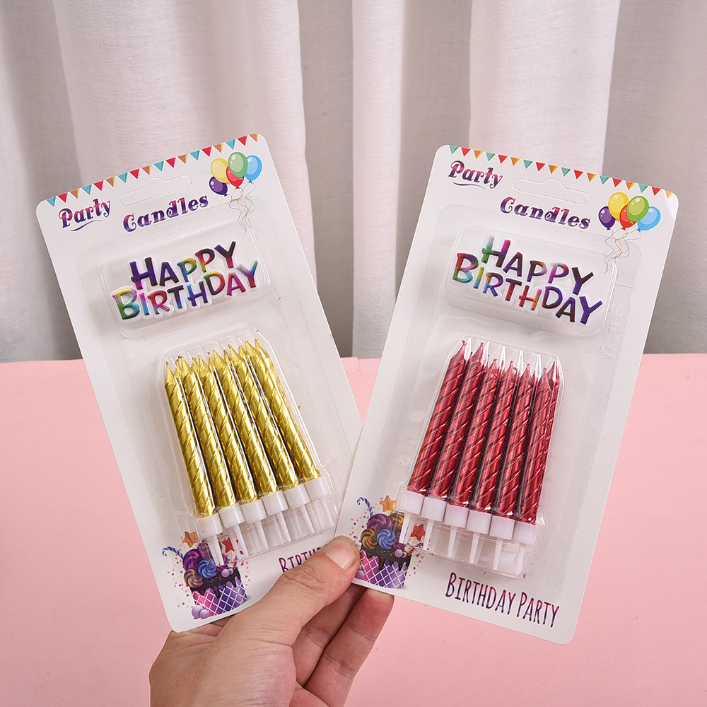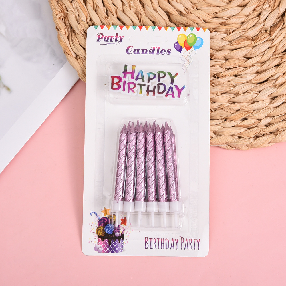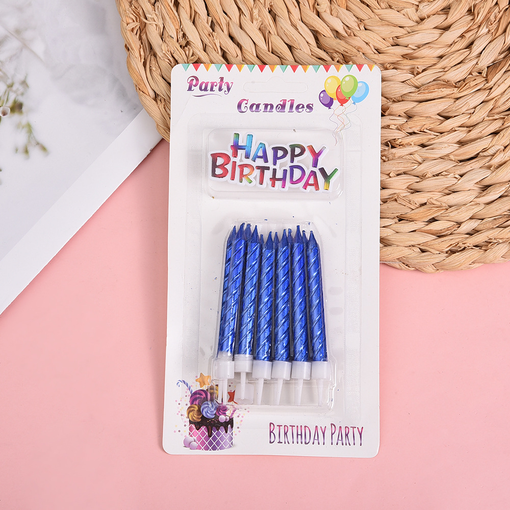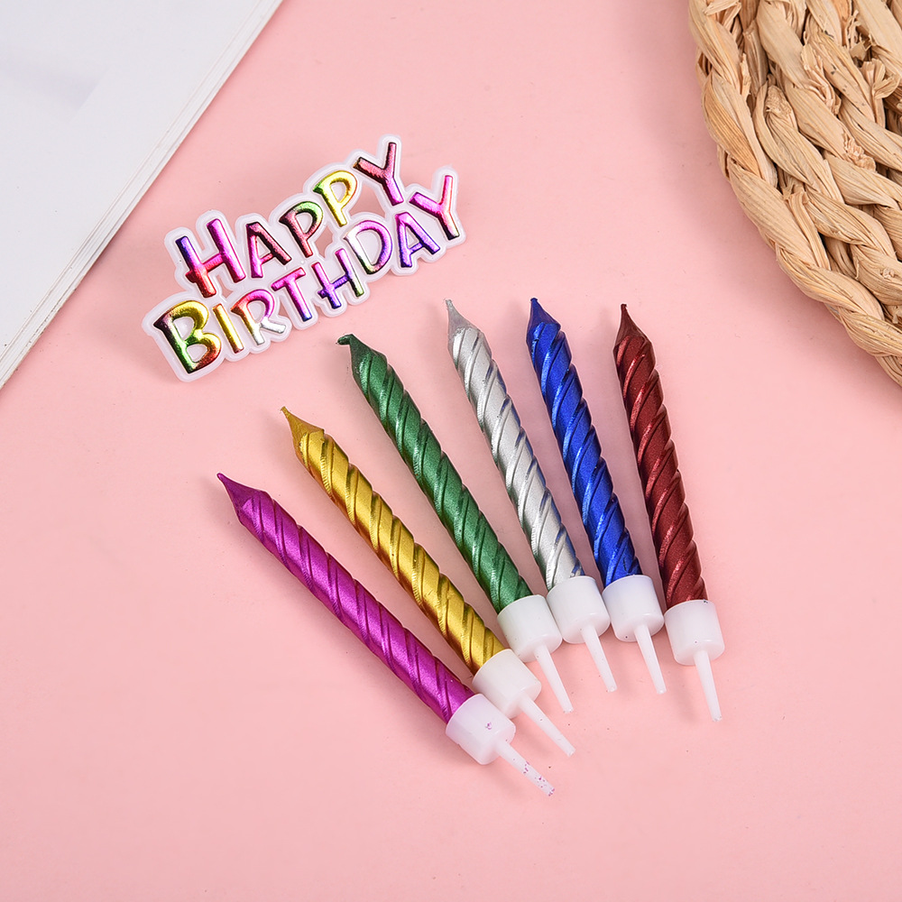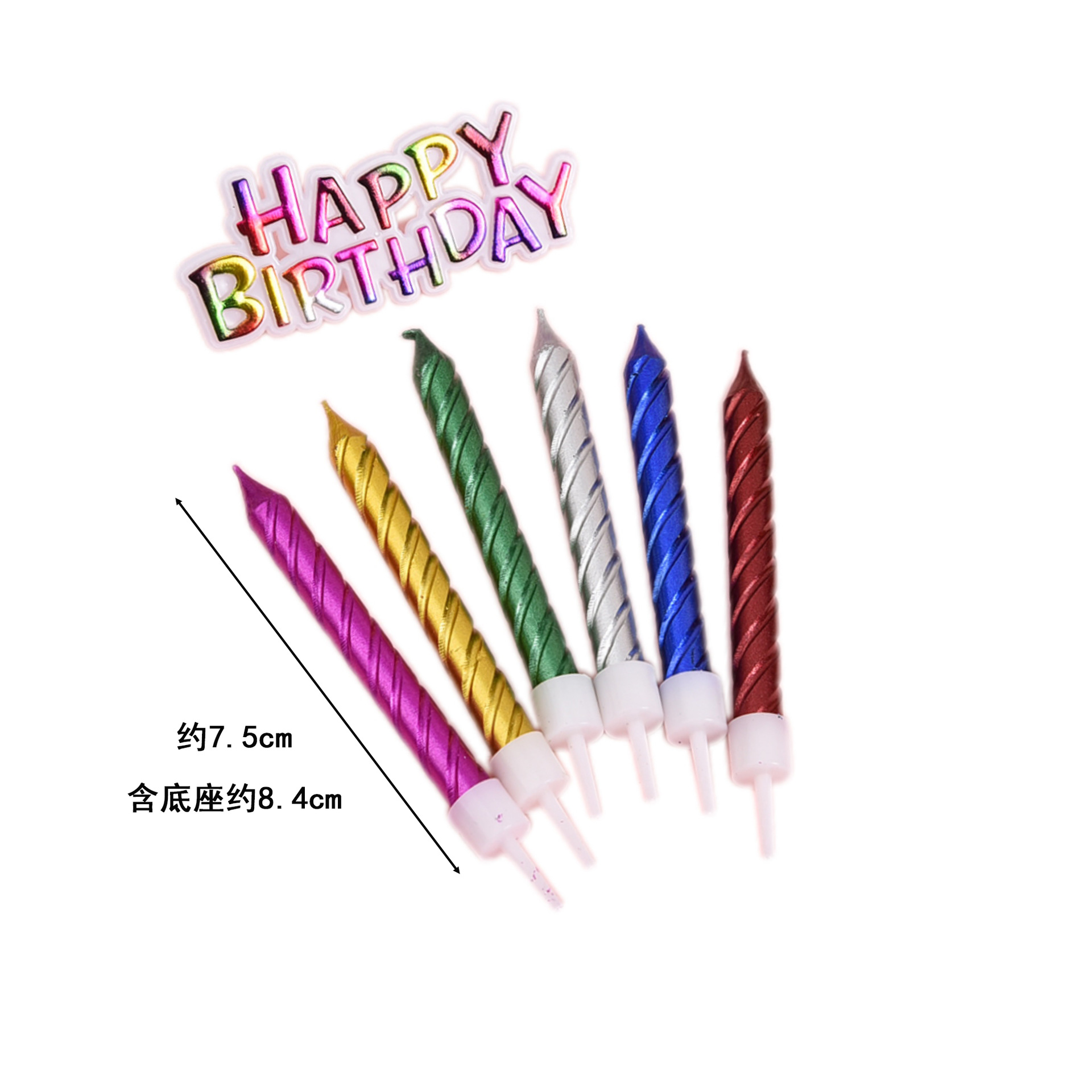 12支装浸漆螺纹带底座儿童生日蜡烛英文字牌浪漫派对蛋糕装饰用品