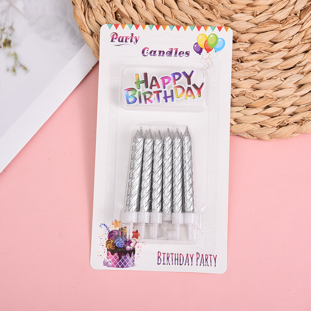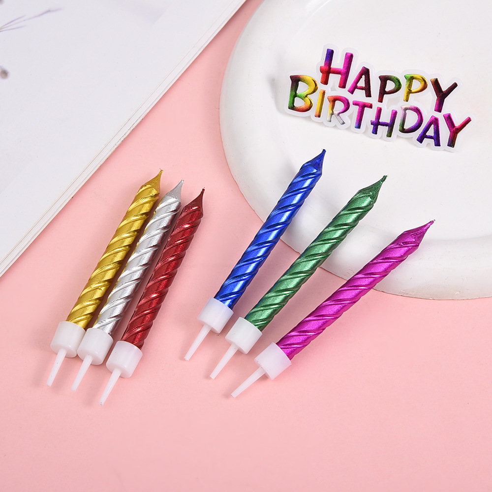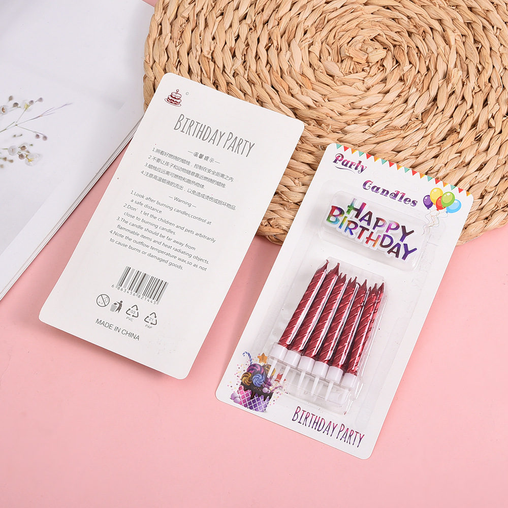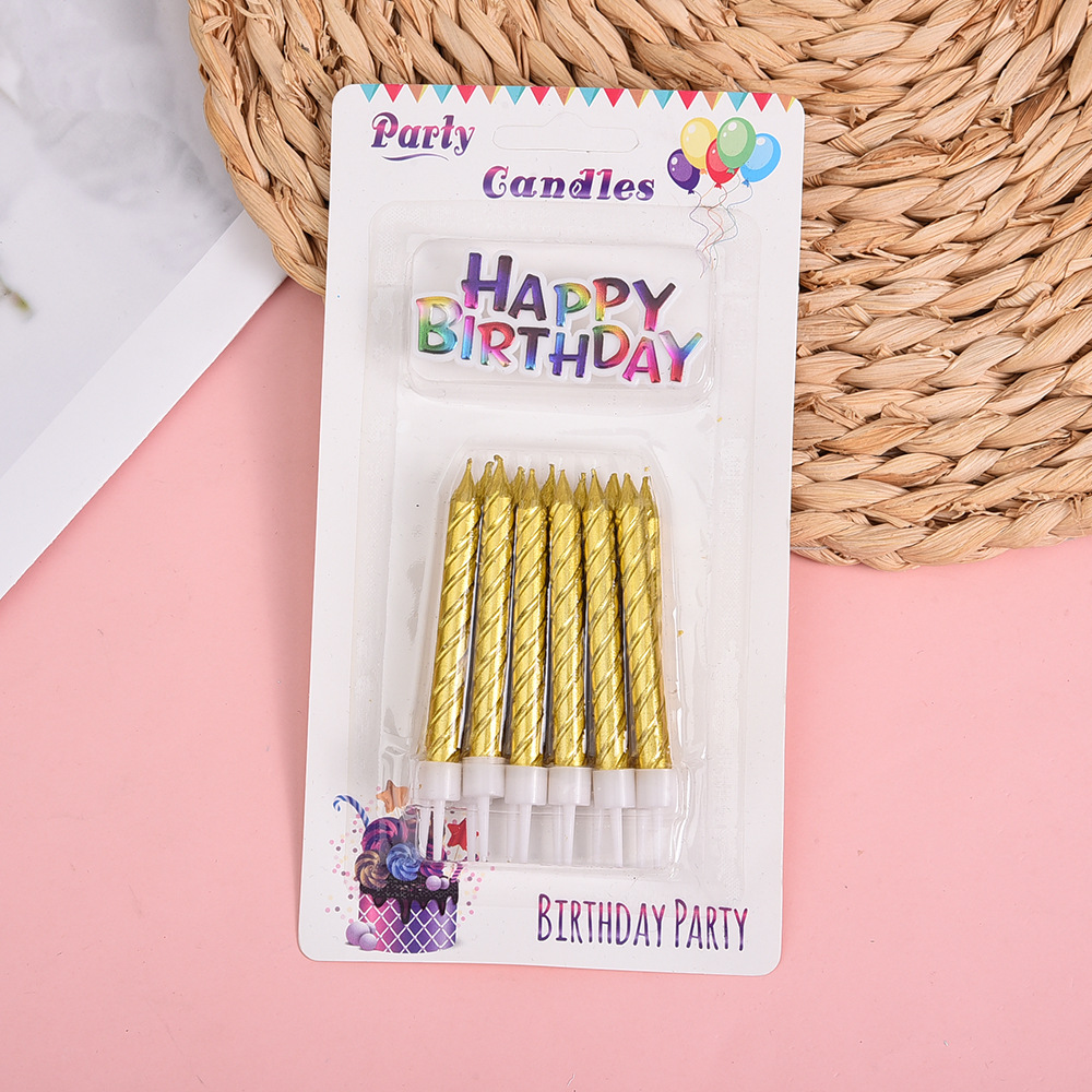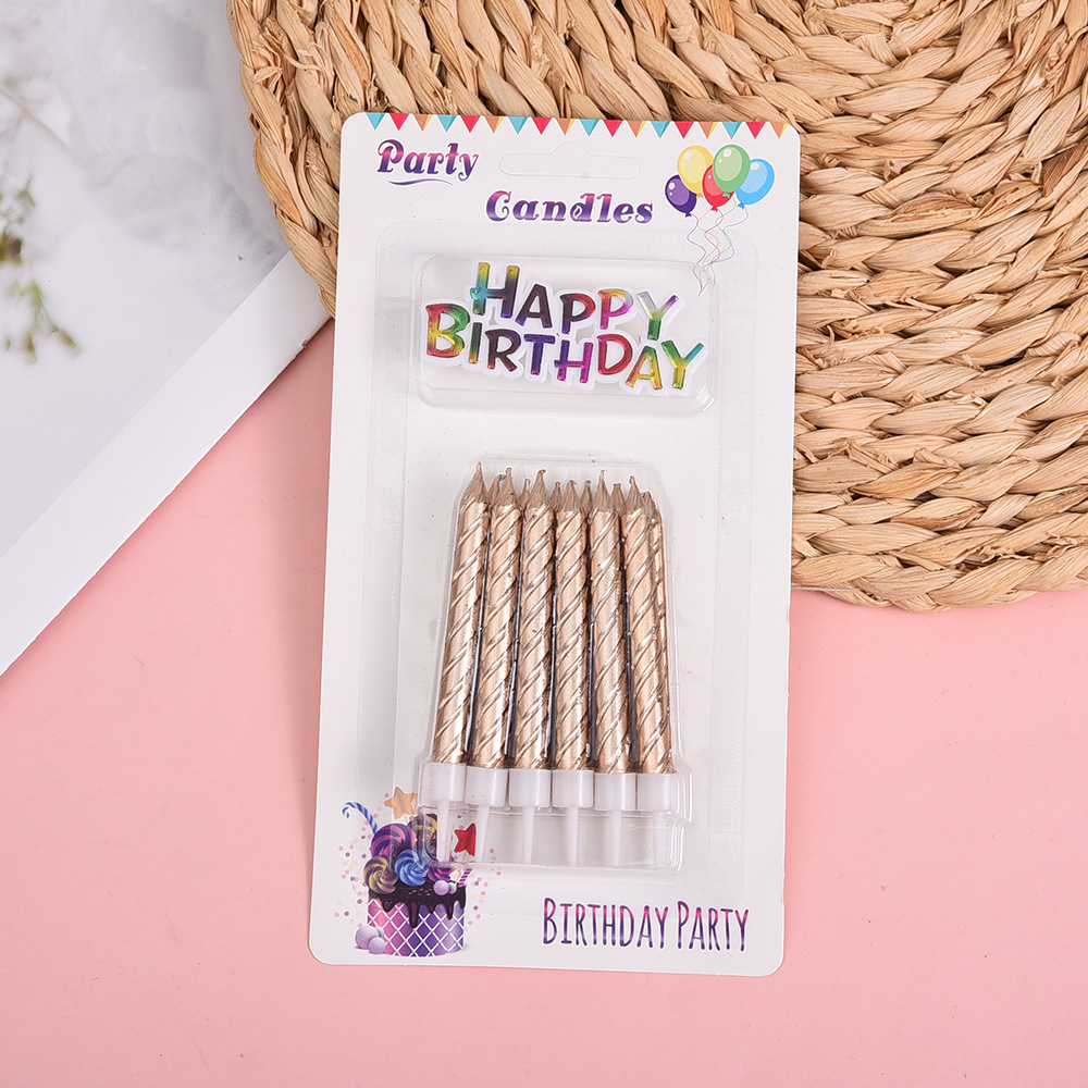 12支装浸漆螺纹带底座儿童生日蜡烛英文字牌浪漫派对蛋糕装饰用品