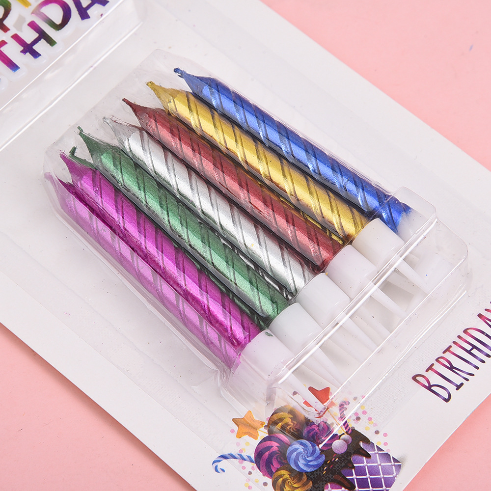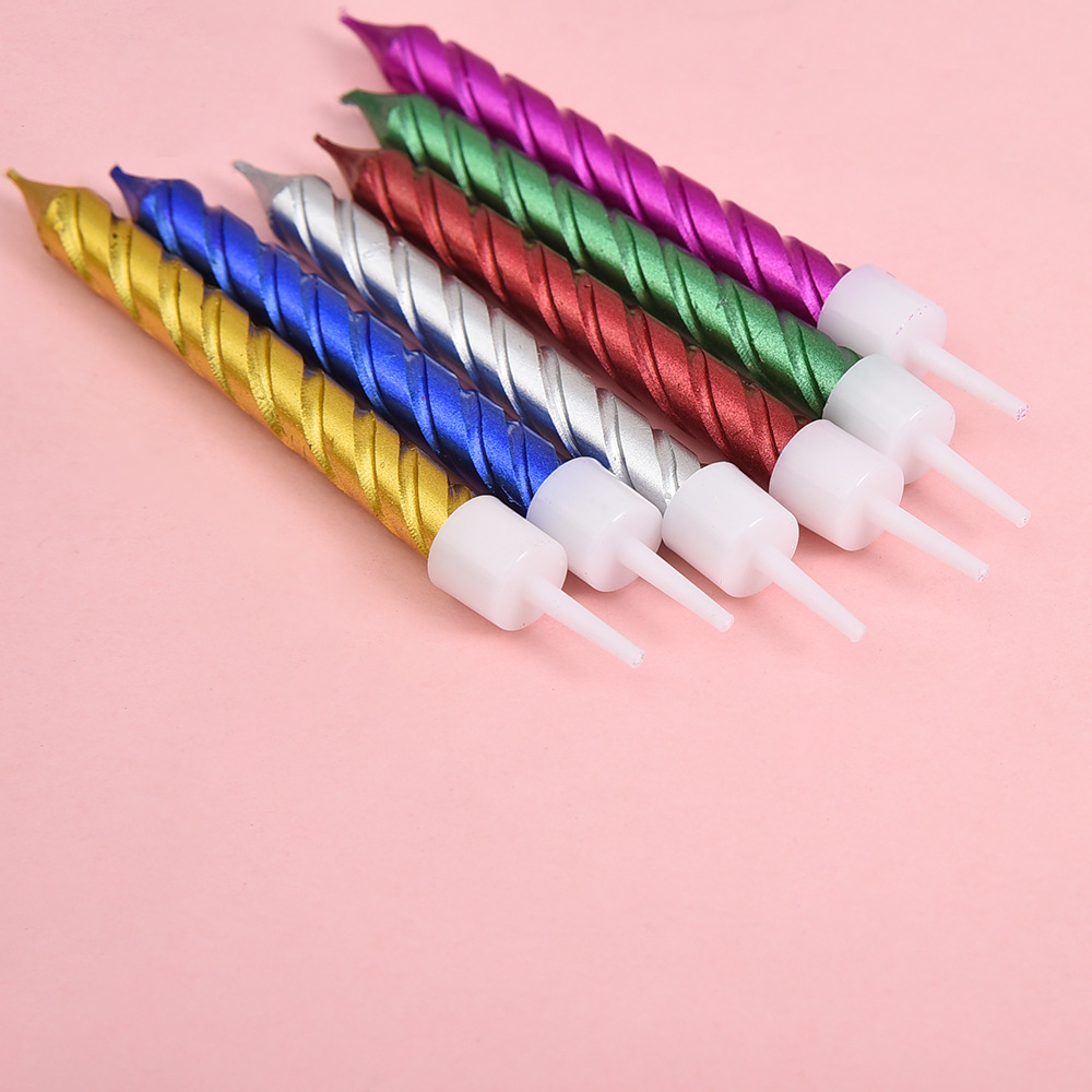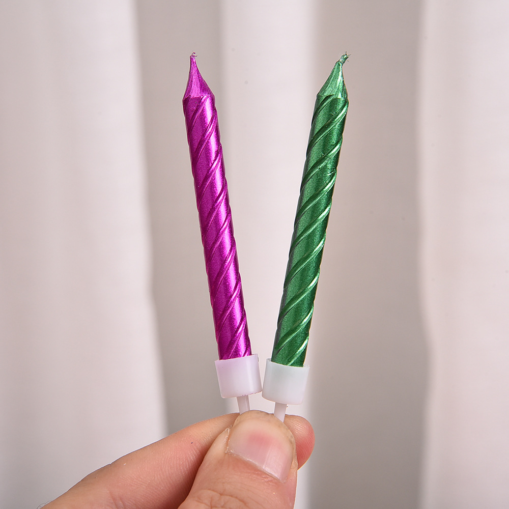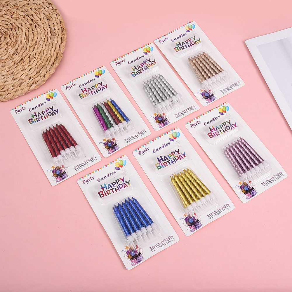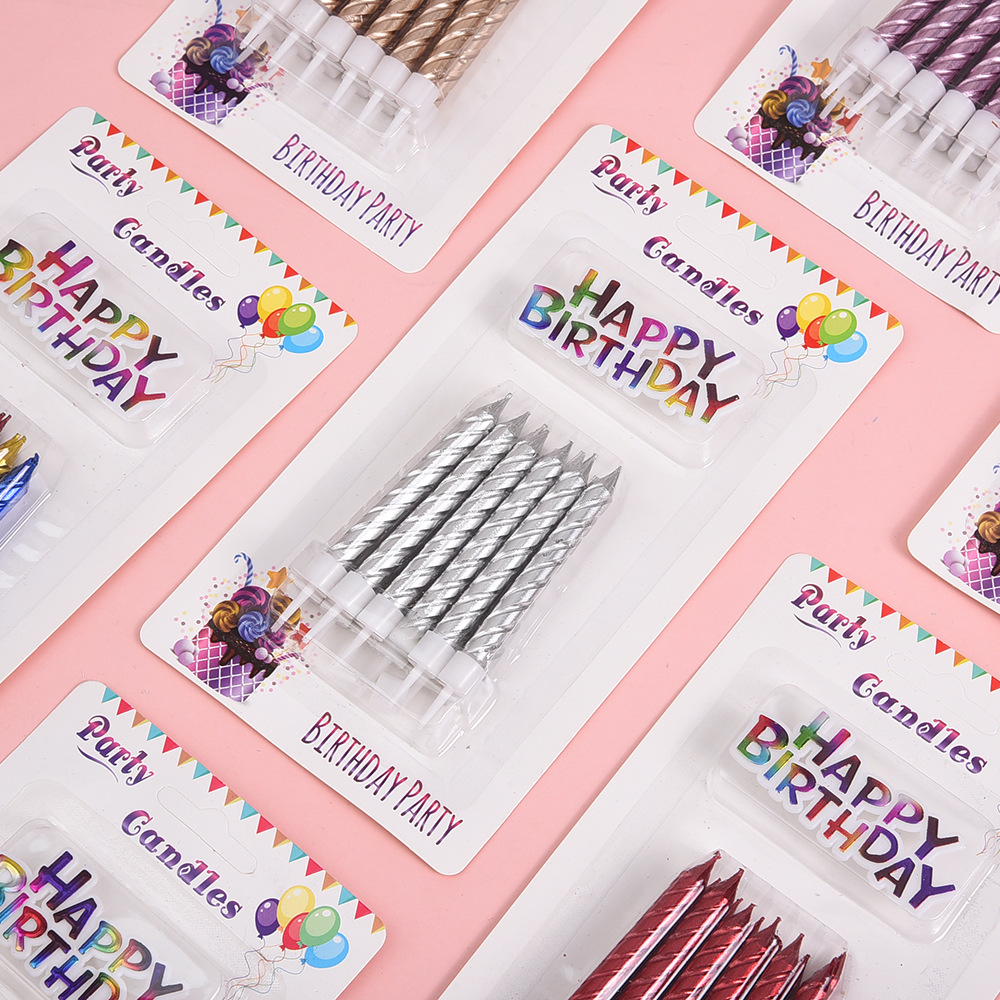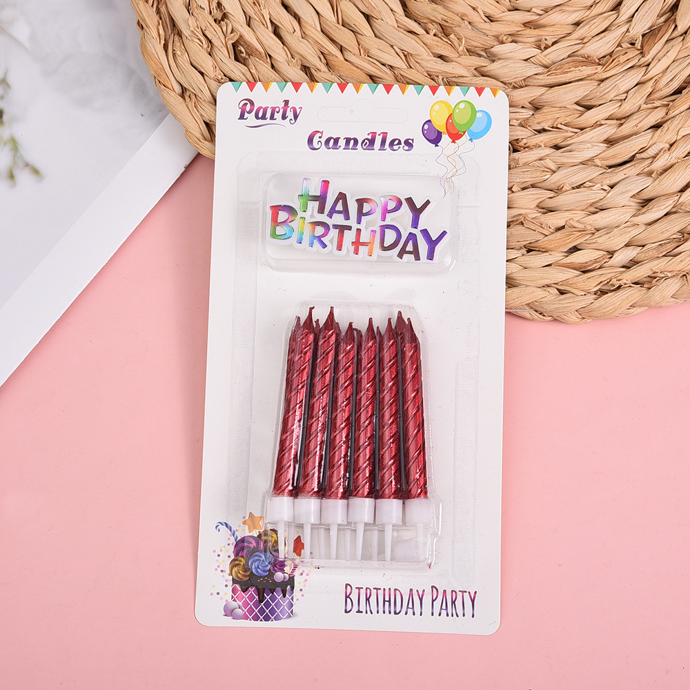 12支装浸漆螺纹带底座儿童生日蜡烛英文字牌浪漫派对蛋糕装饰用品